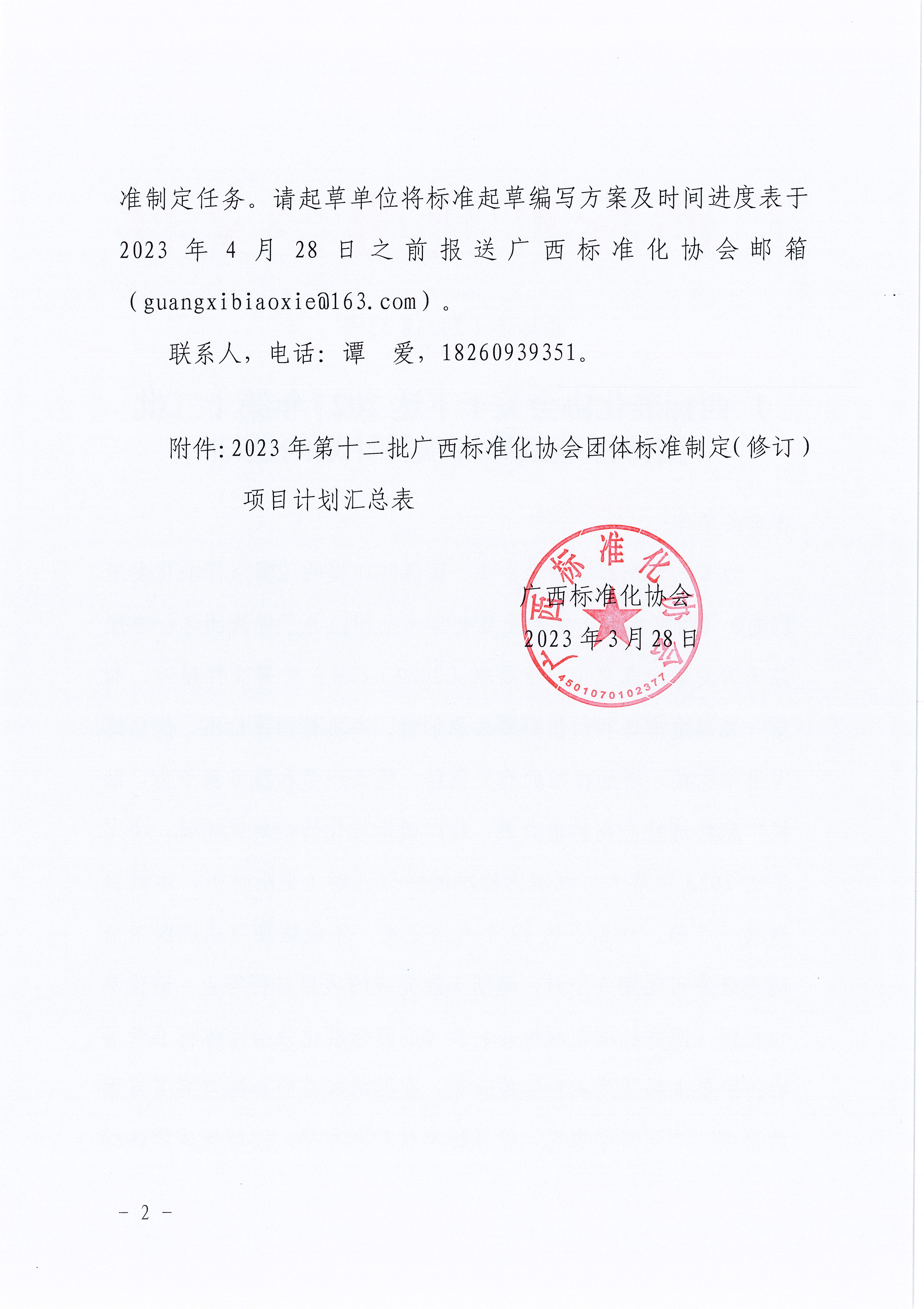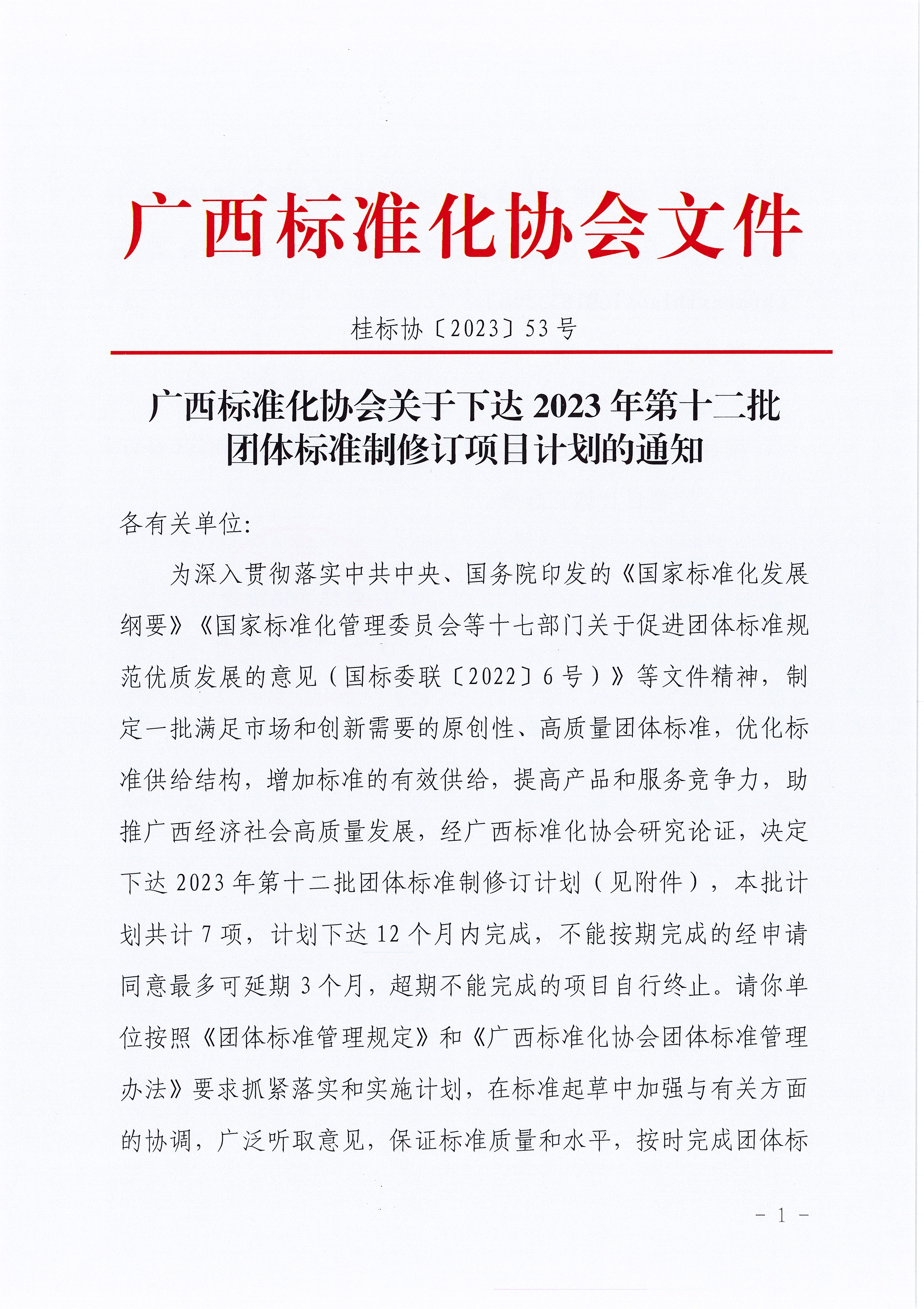广西标准化协会关于下达2023年第十二批团体标准制修订项目计划的通知