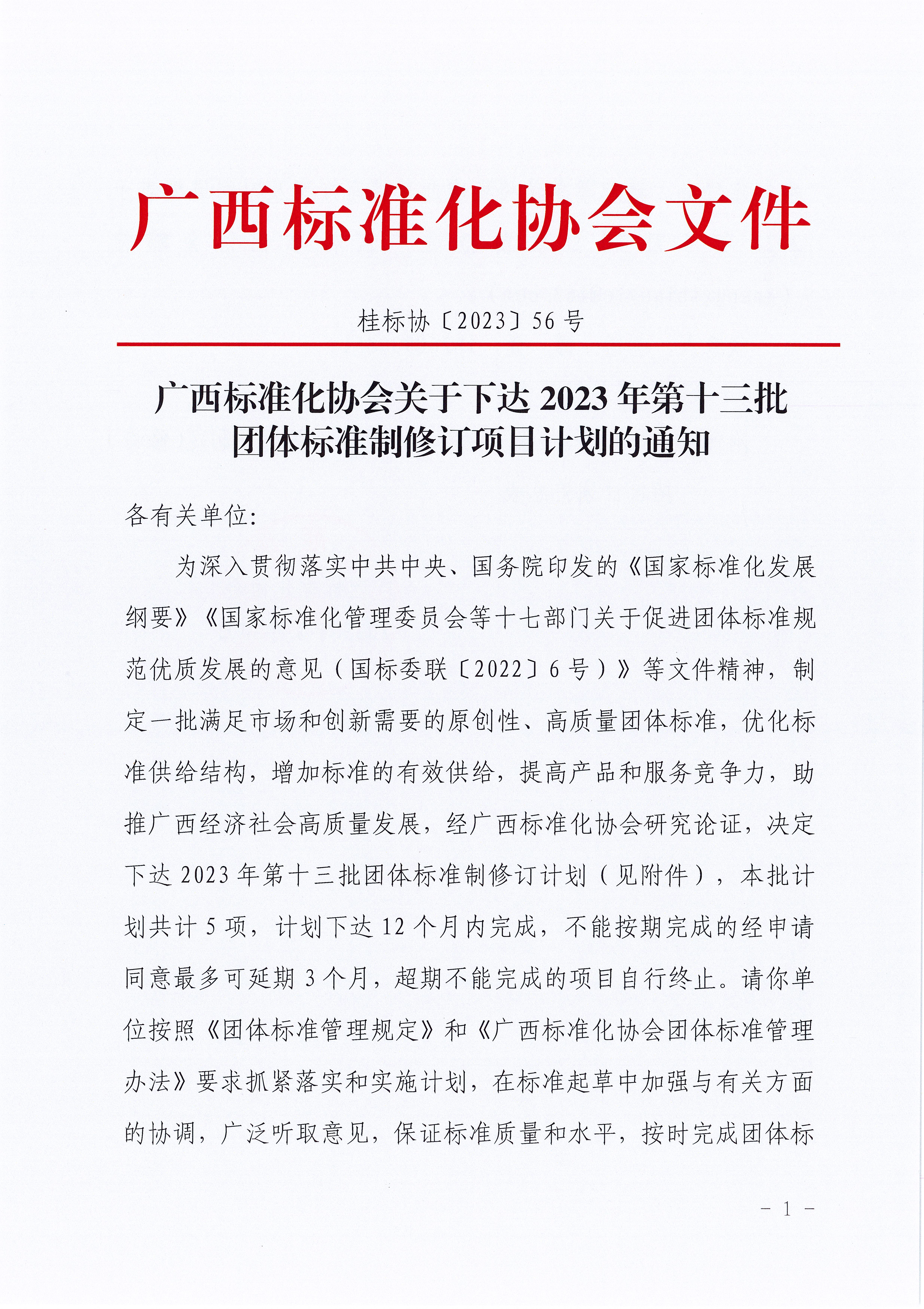 广西标准化协会关于下达2023年第十三批团体标准制修订项目计划的通知