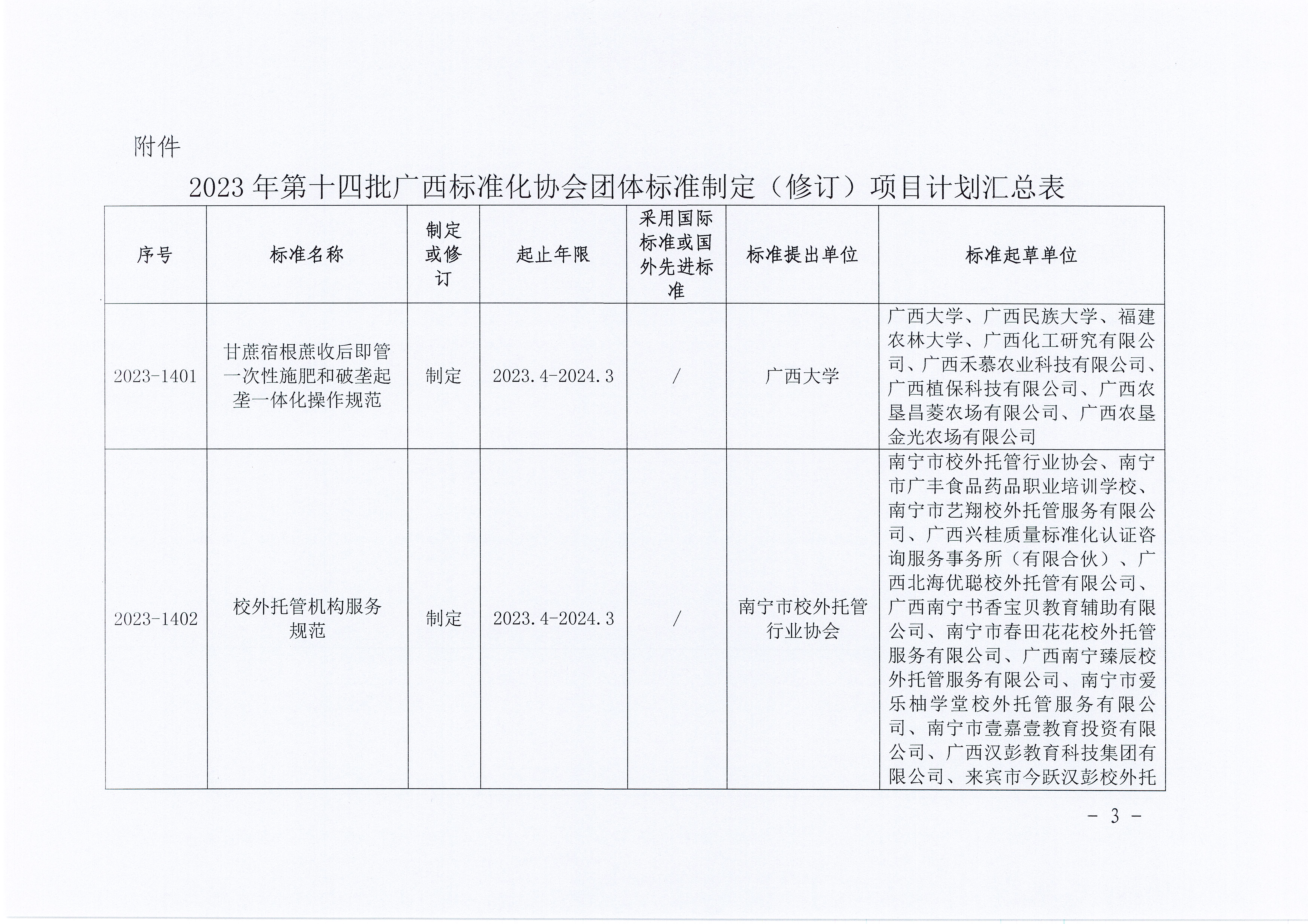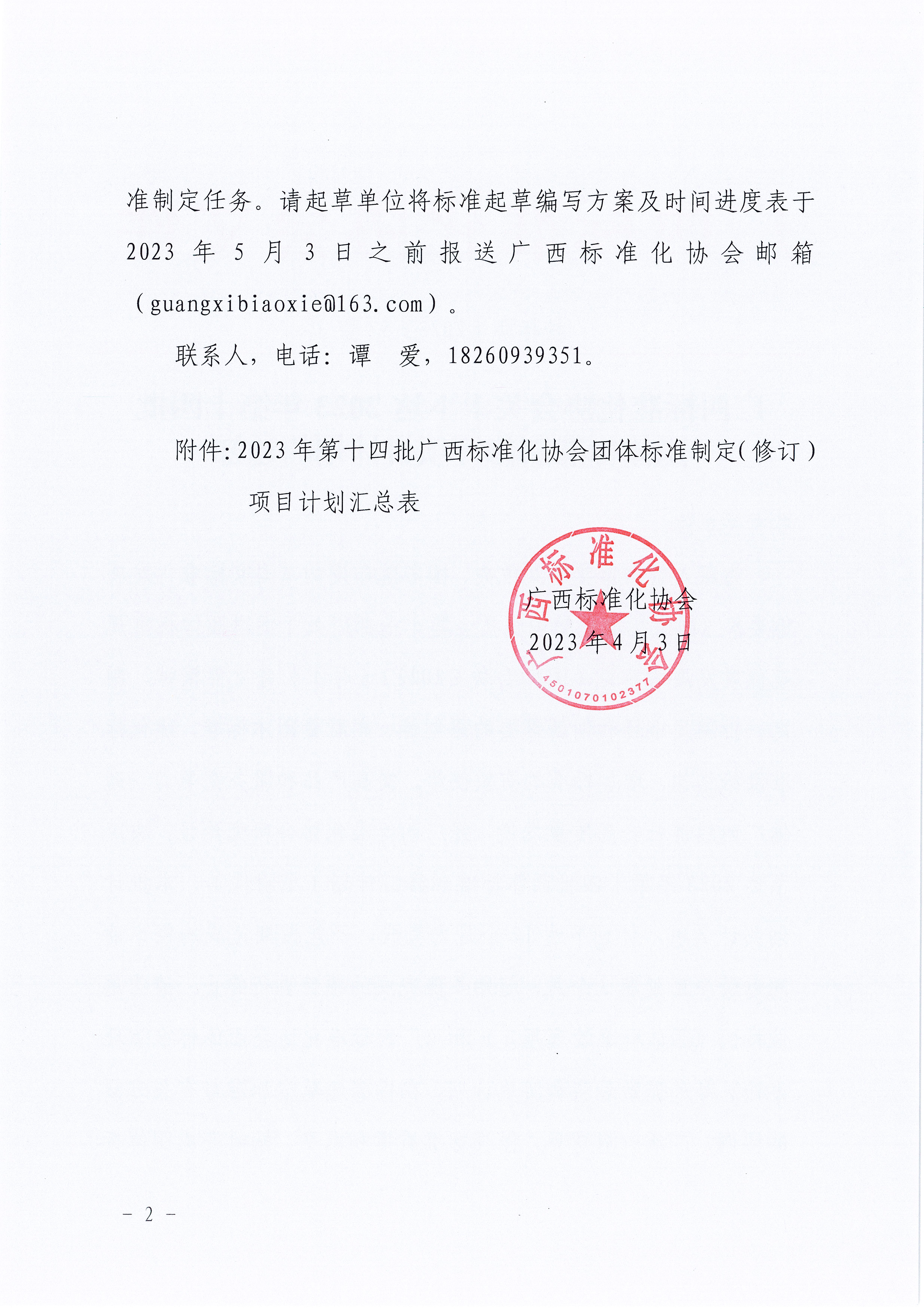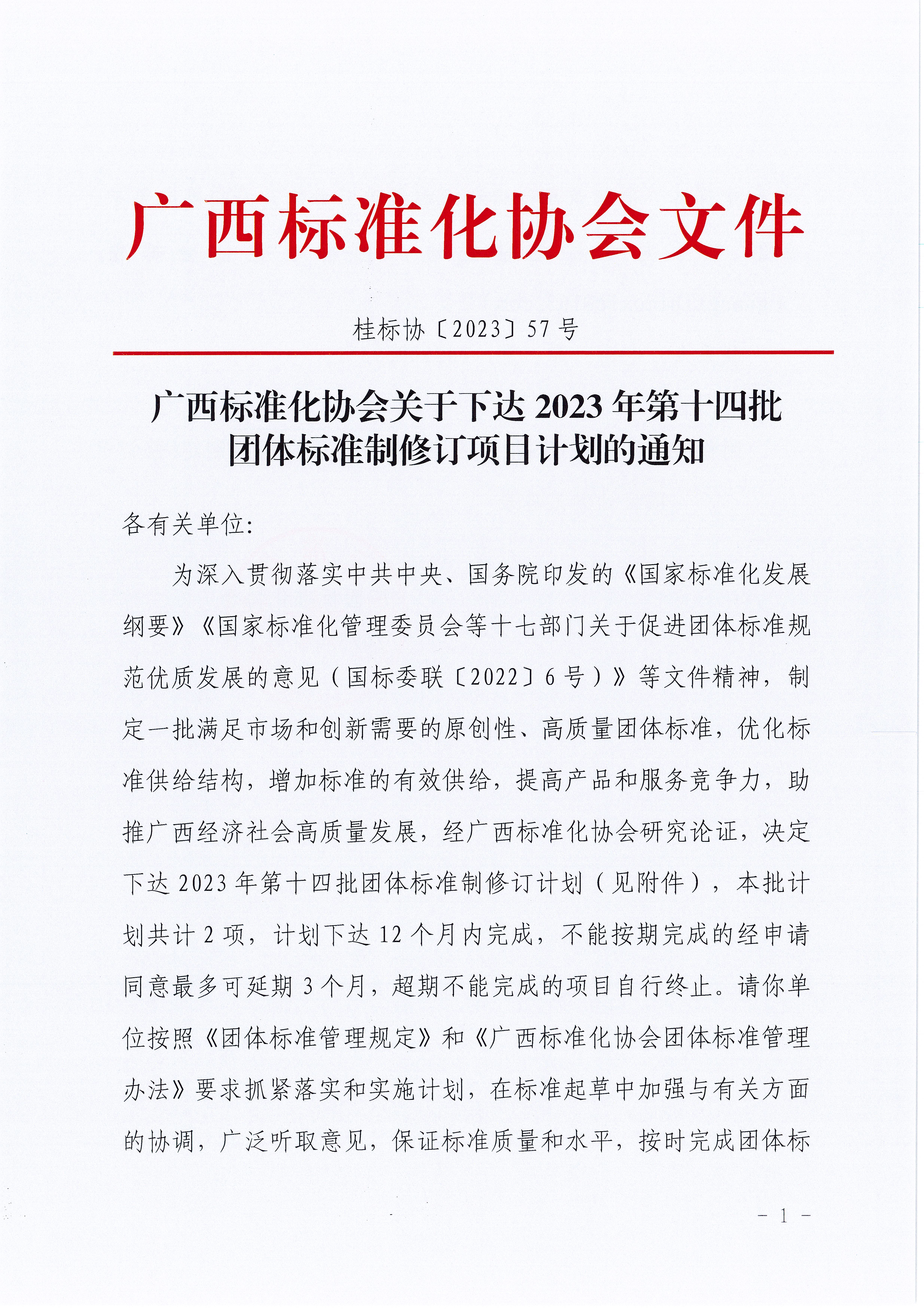 广西标准化协会关于下达2023年第十四批团体标准制修订项目计划的通知