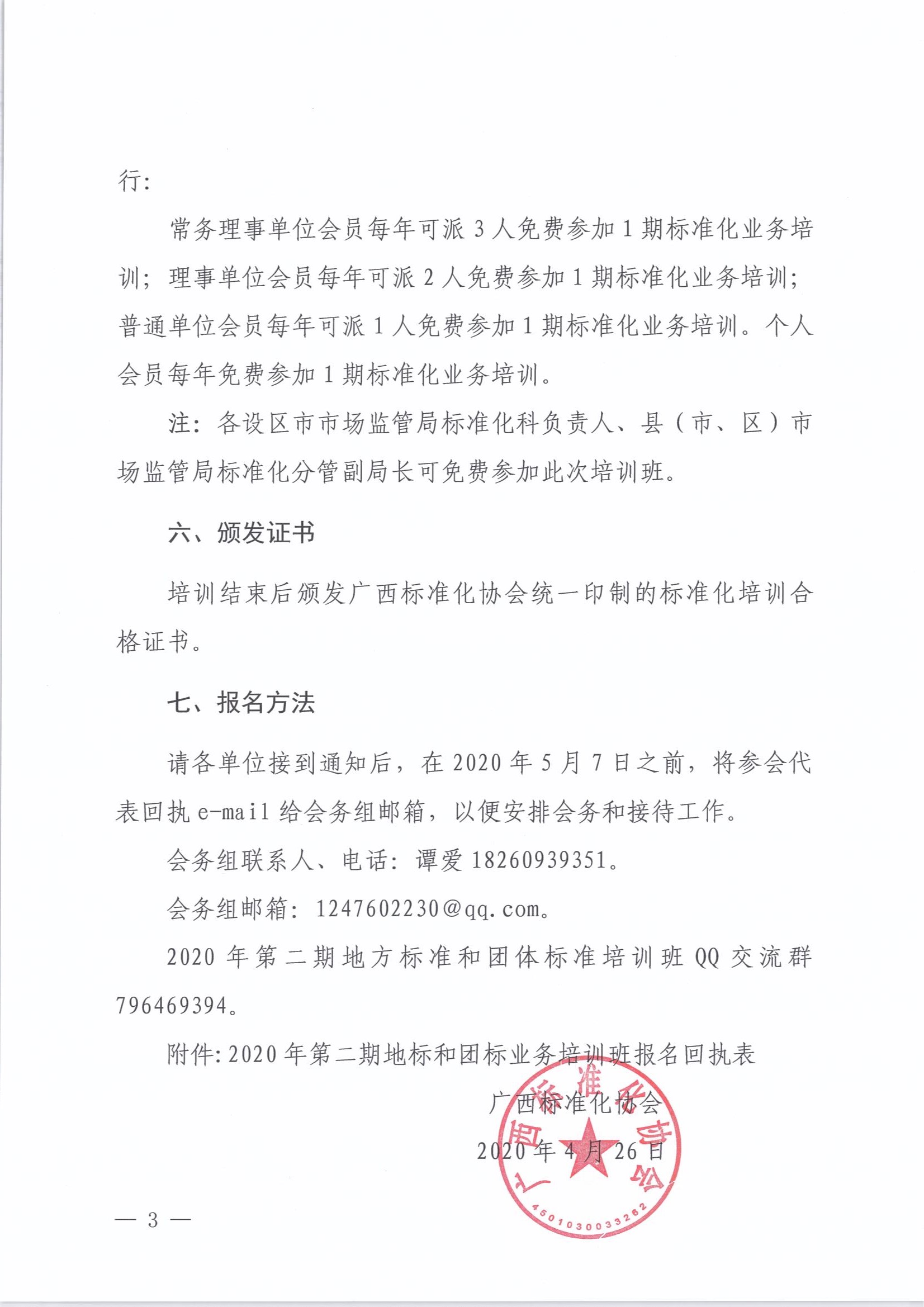 广西标准化协会关于全区2020年地方标准和团体标准业务培训班的补充通知