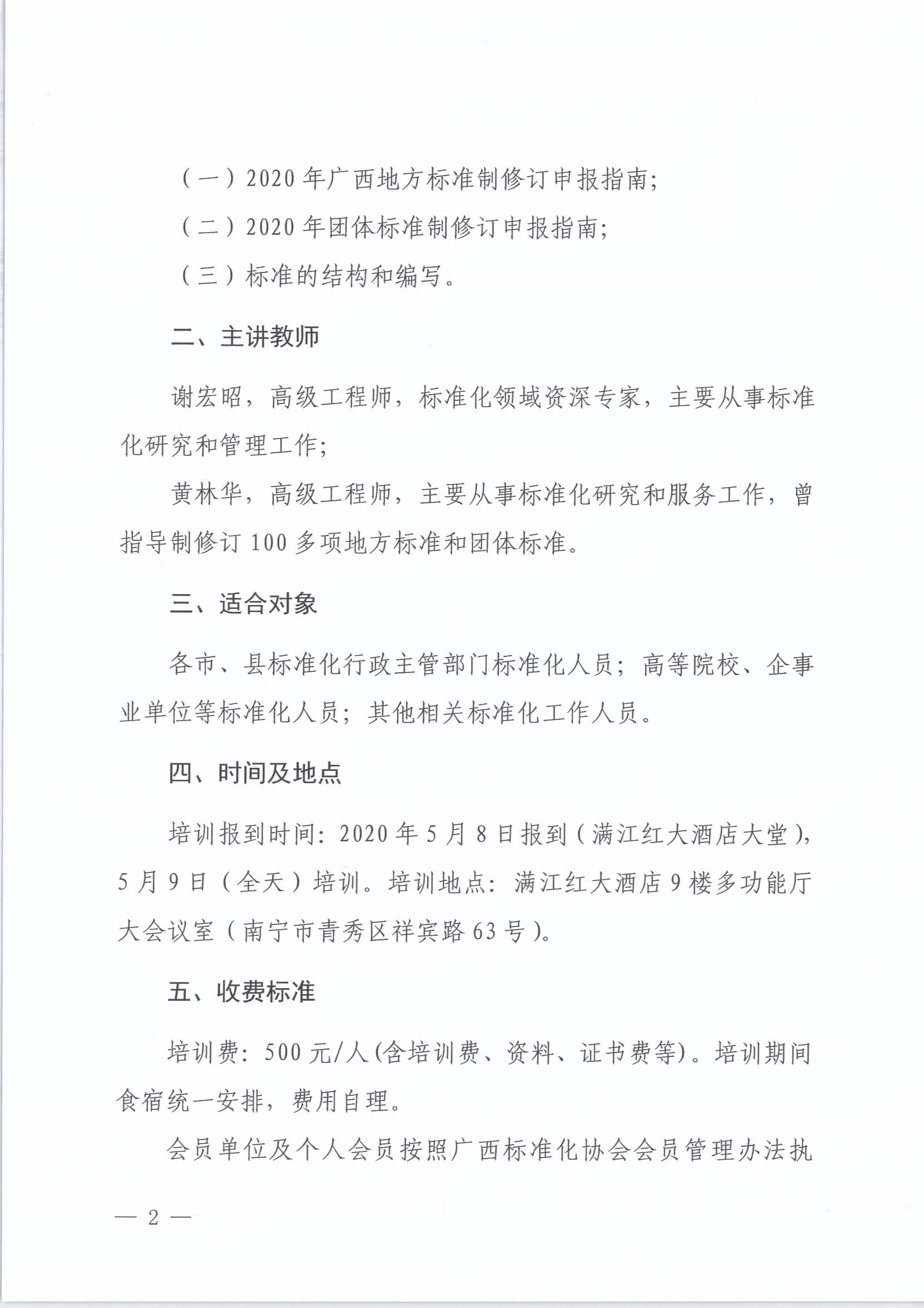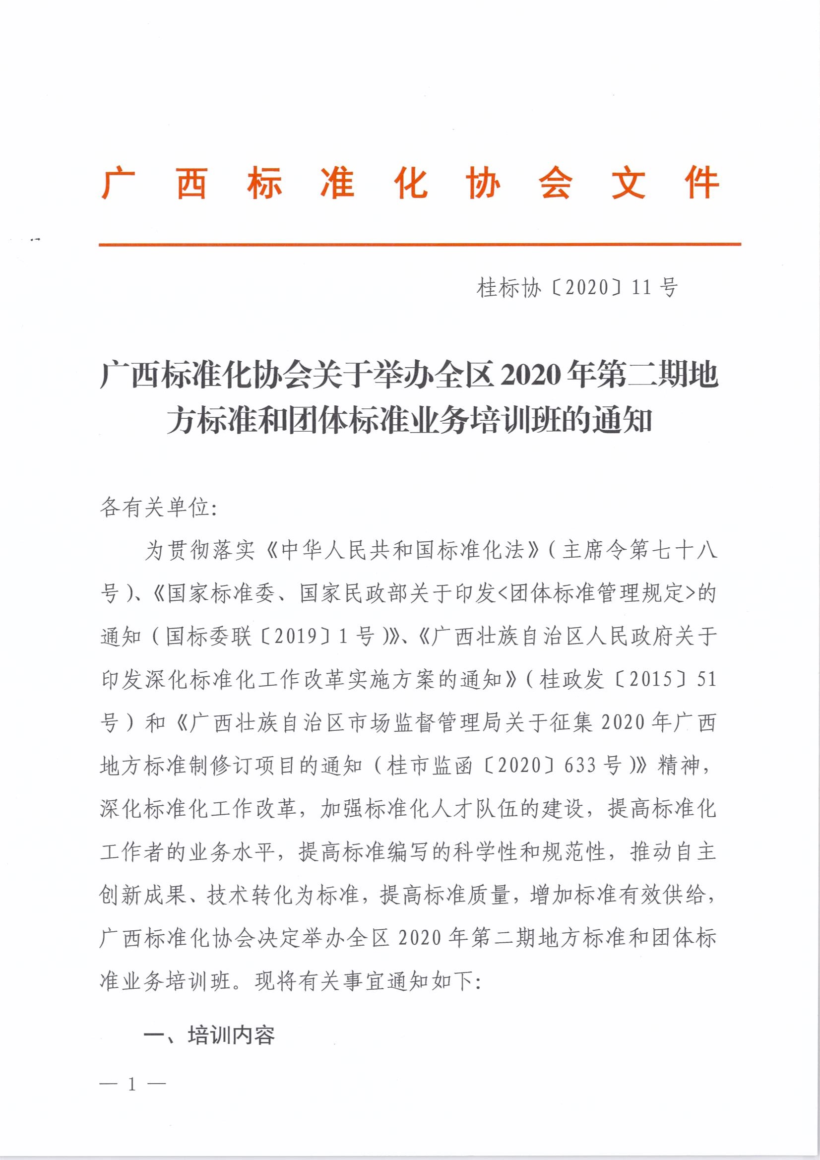 广西标准化协会关于举办全区2020年第二期地方标准和团体标准业务培训班的通知
