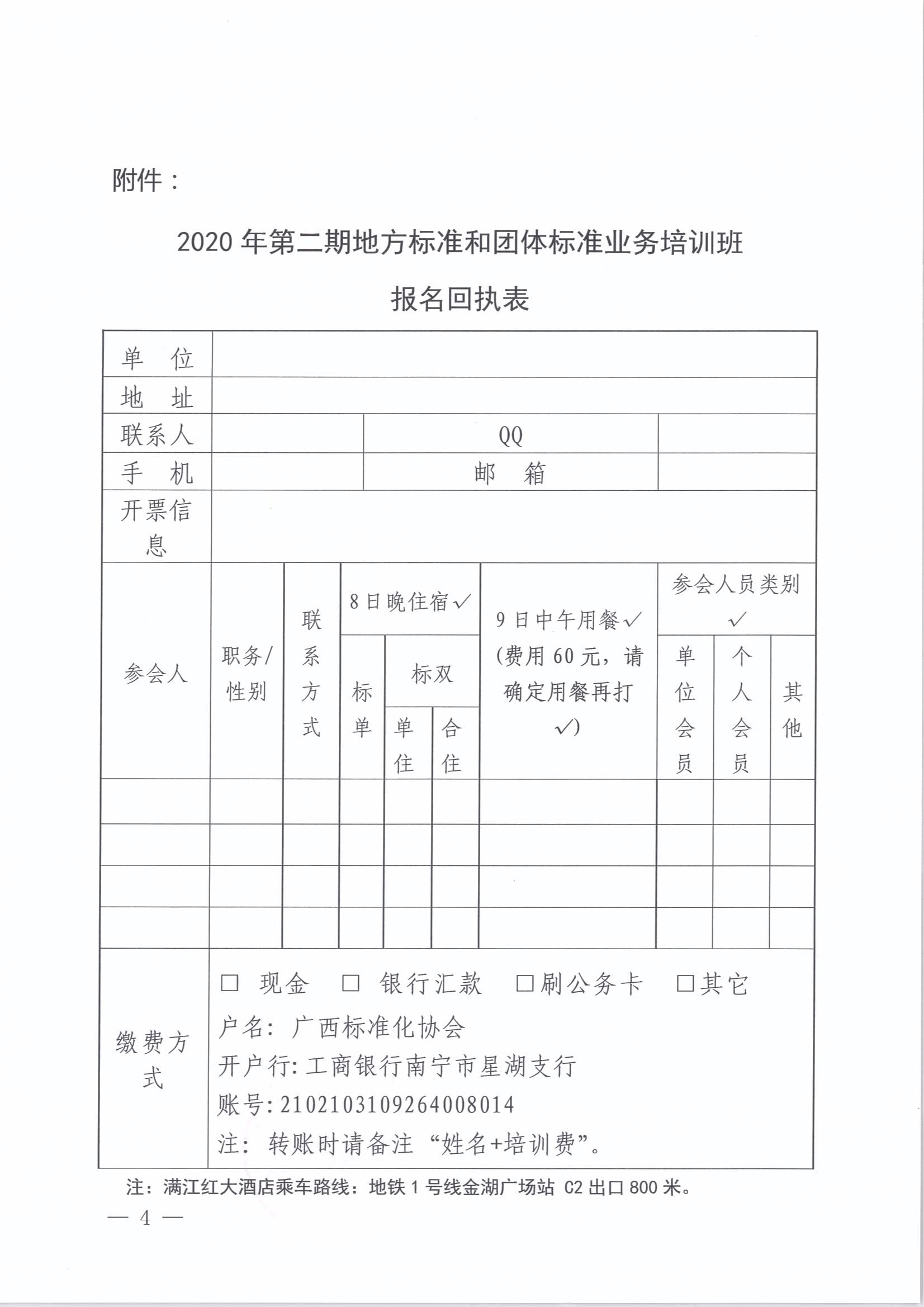附件:2020年第二期地方标准和团体标准业务培训班报名回执表