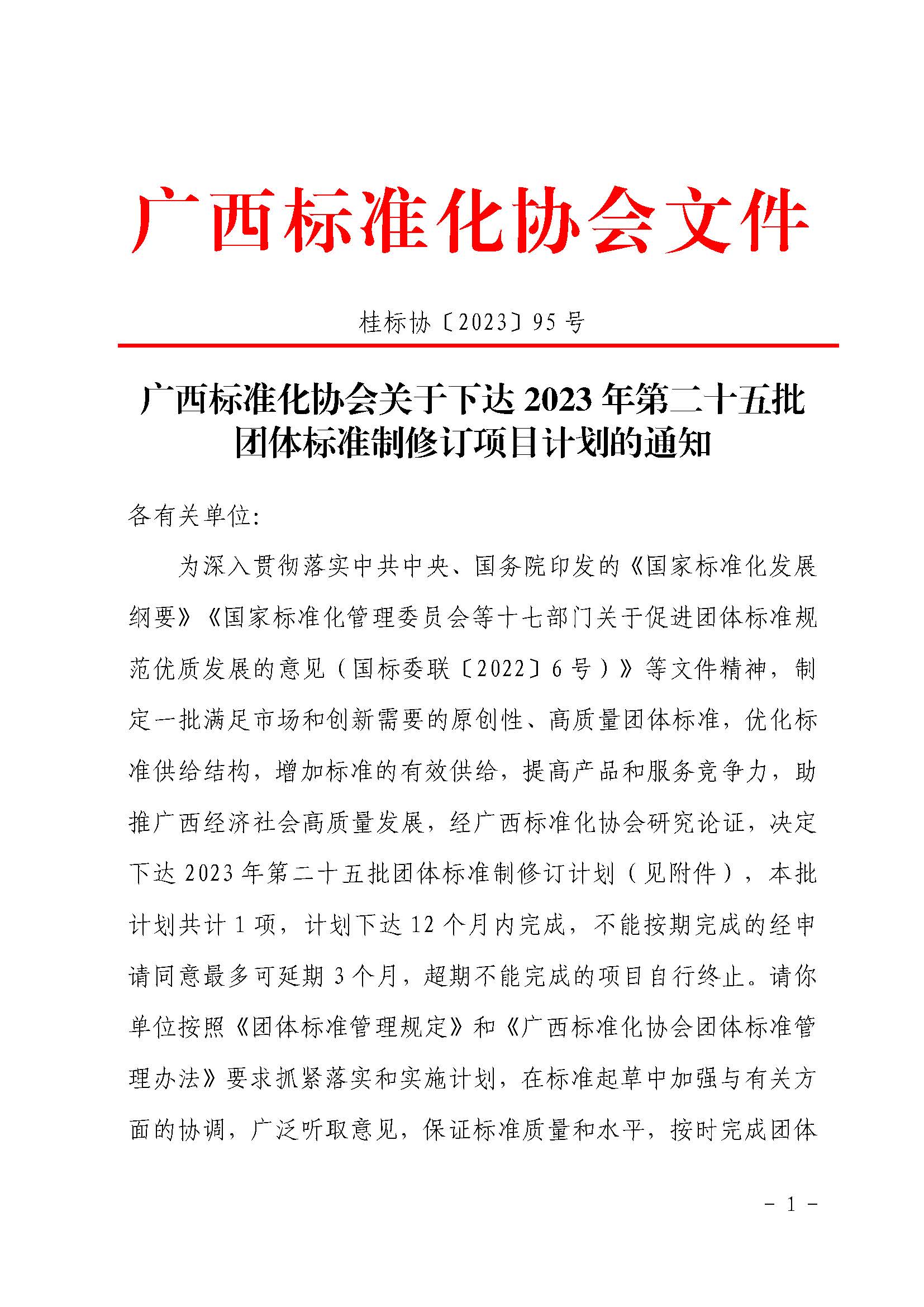 广西标准化协会关于下达2023年第二十五批团体标准制修订项目计划的通知