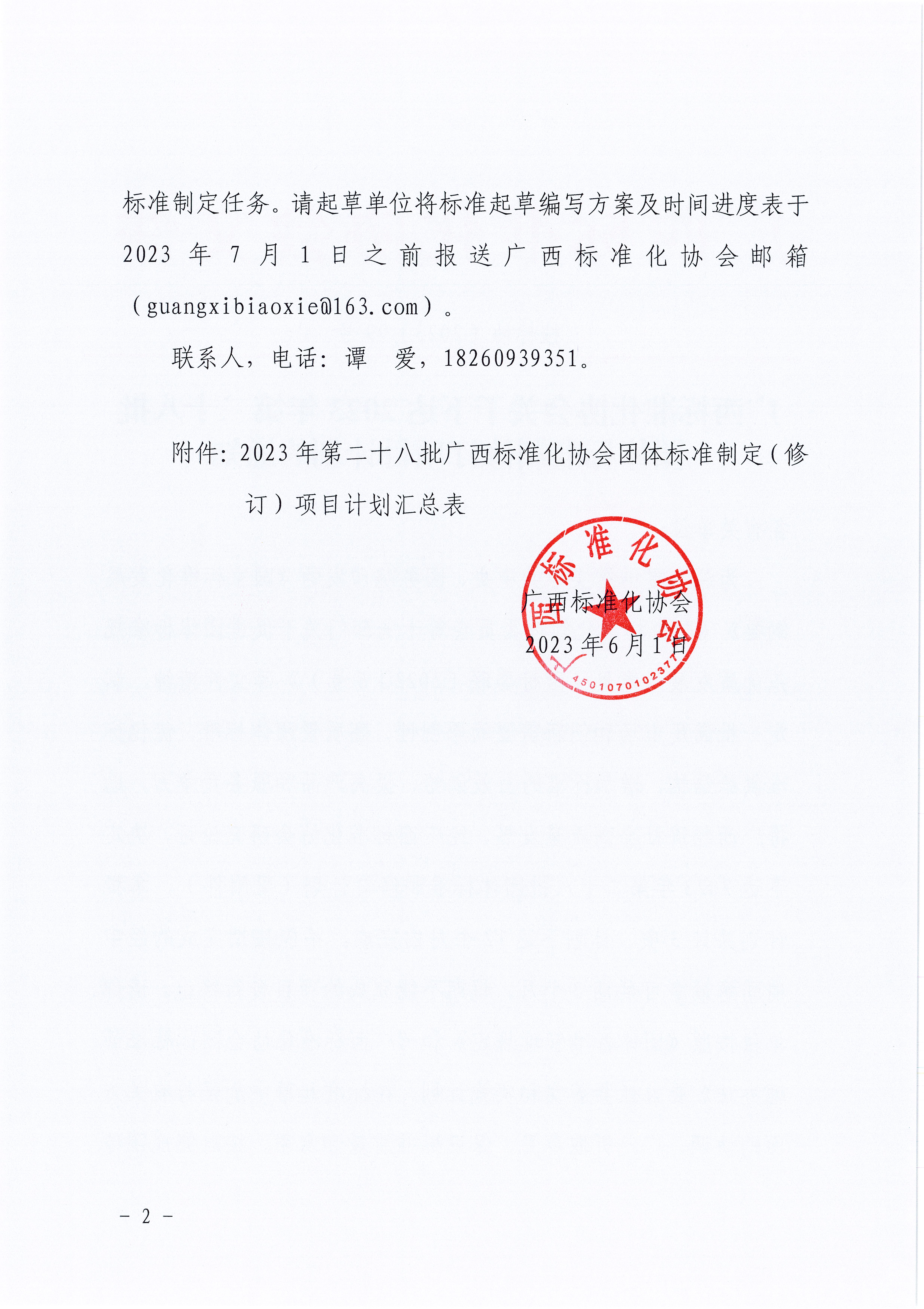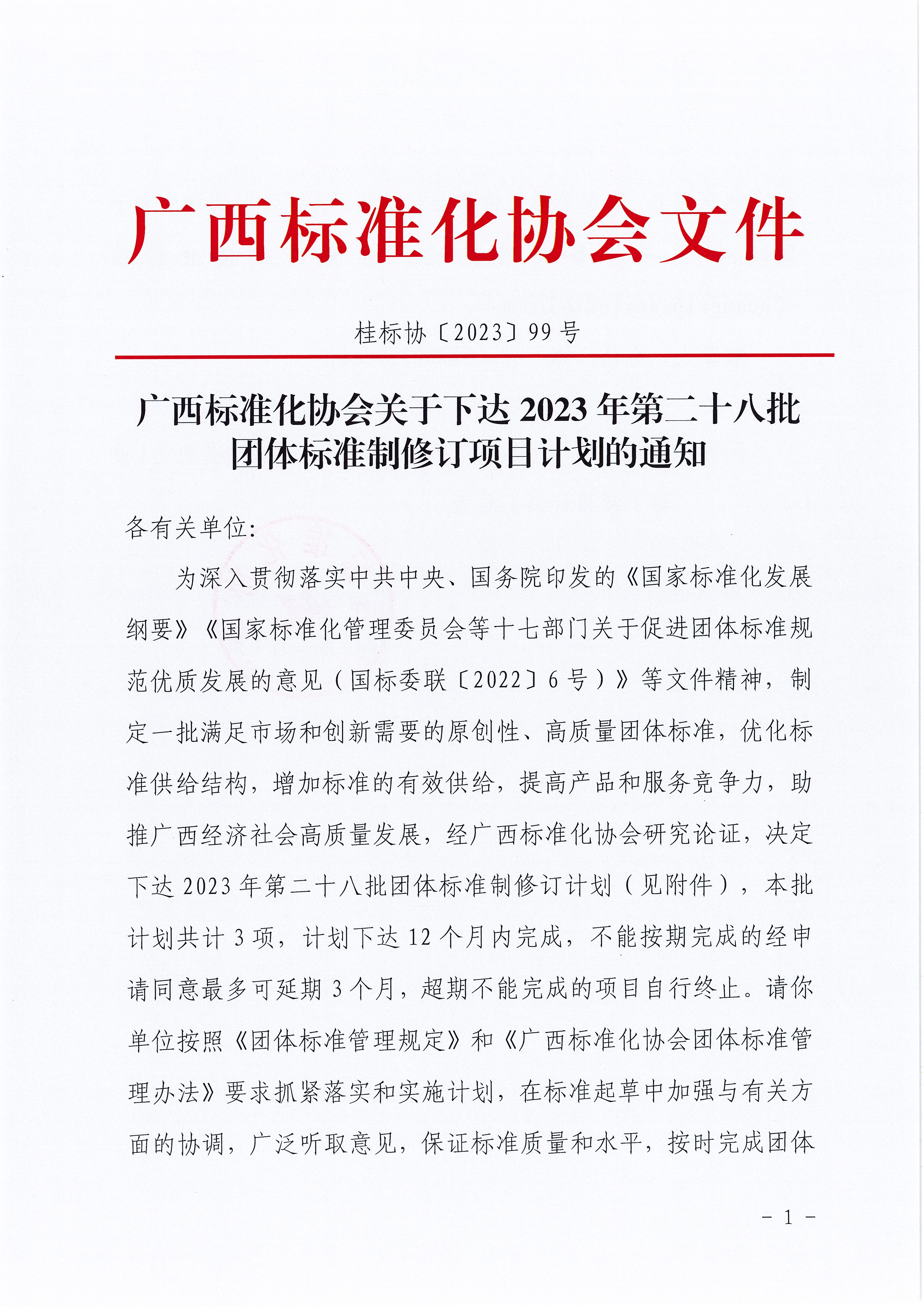 广西标准化协会关于下达2023年第二十八批团体标准制修订项目计划的通知