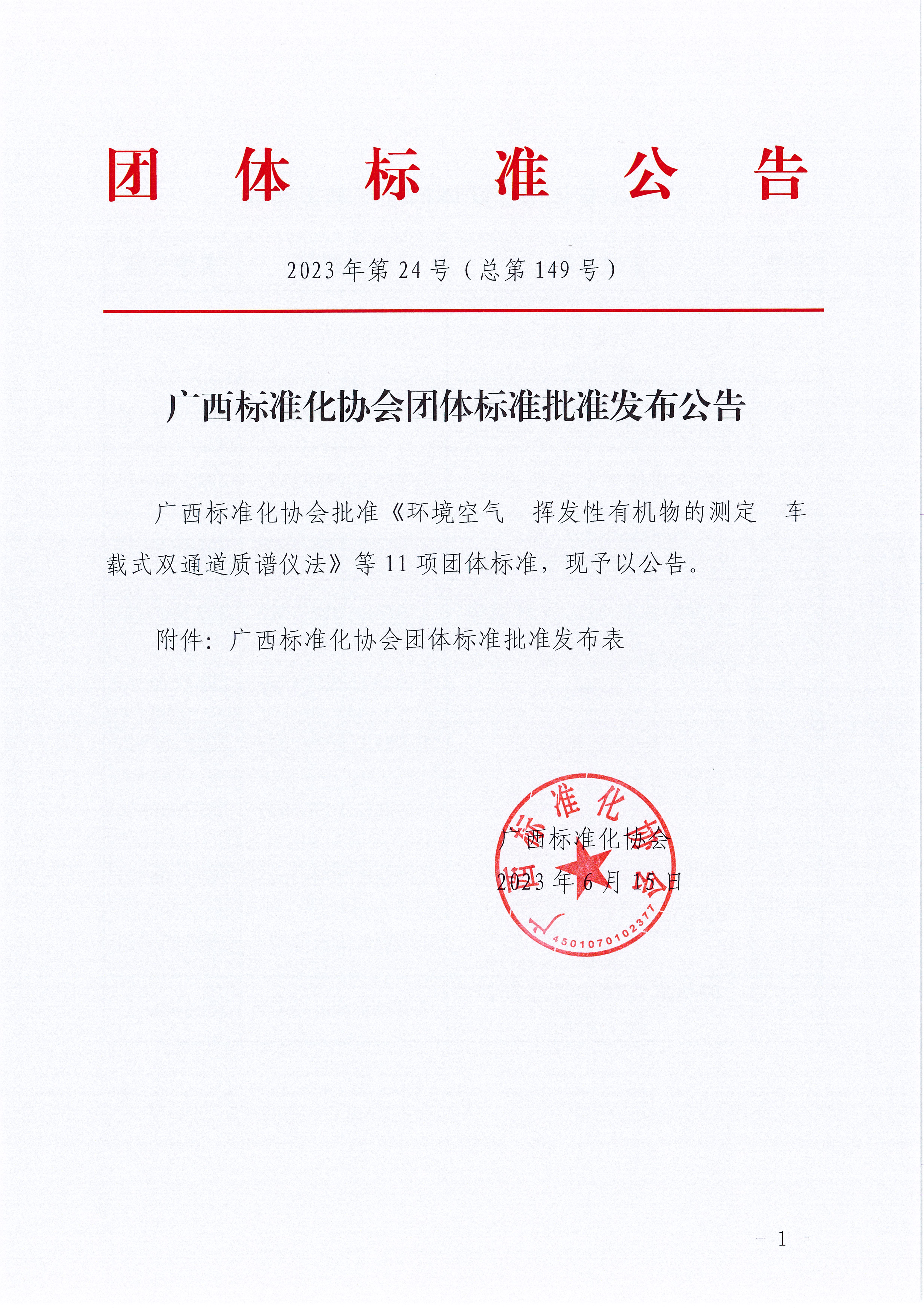 广西标准化协会团体标准批准发布公告《2023年第24号(总第149号)》