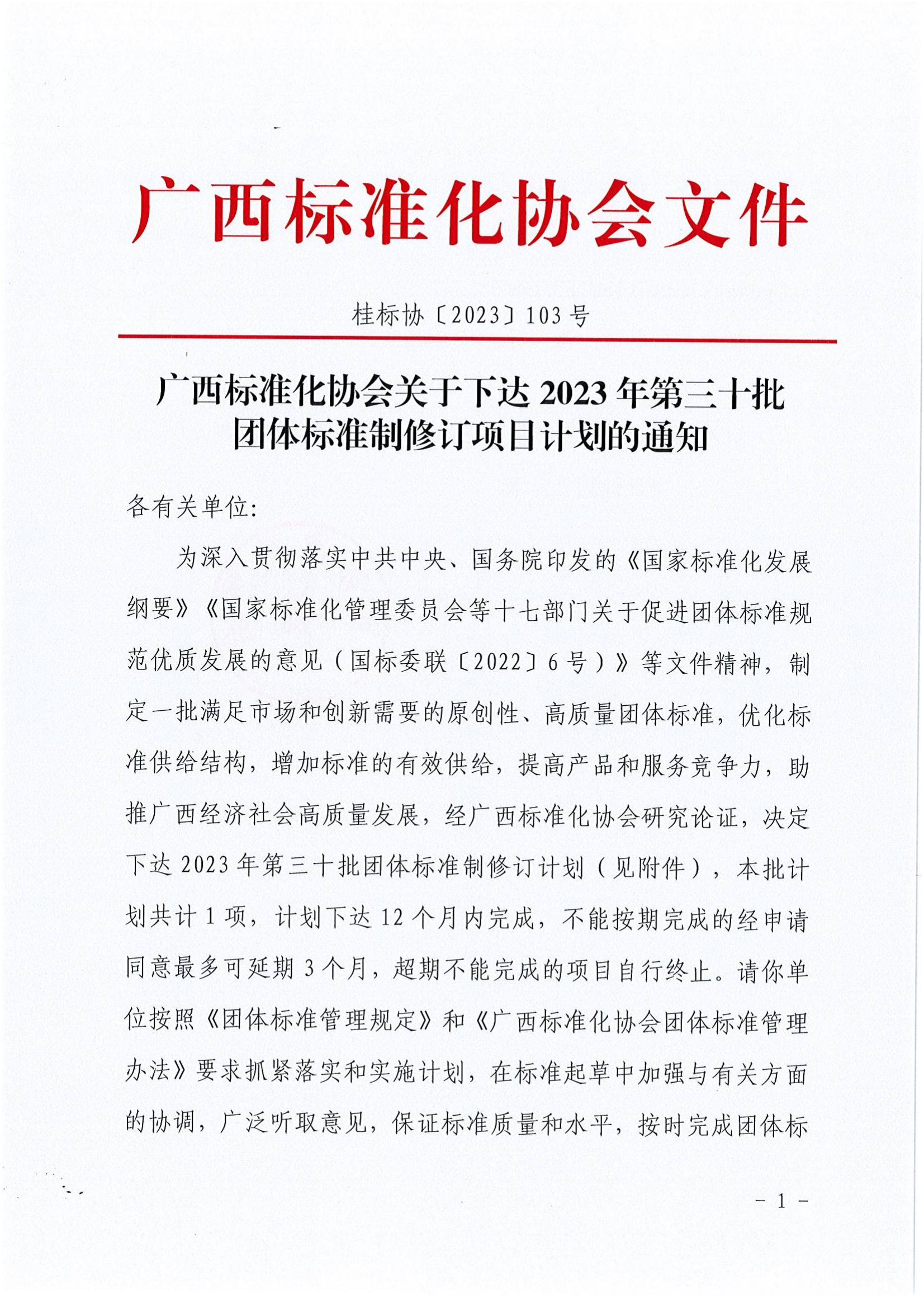 广西标准化协会关于下达2023年第三十批团体标准制修订项目计划的通知