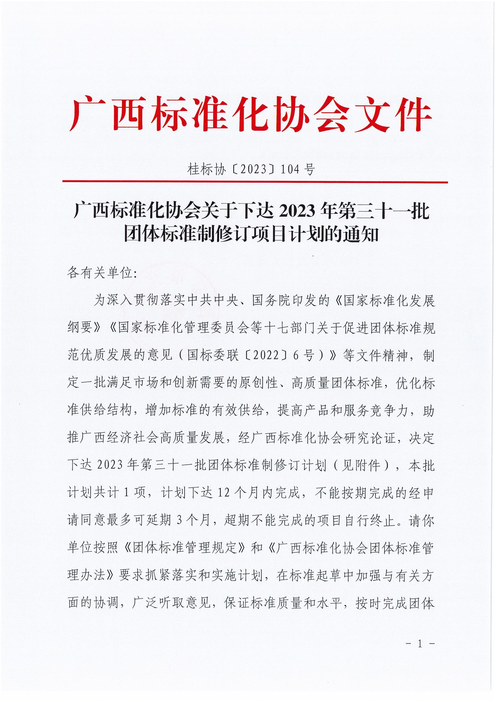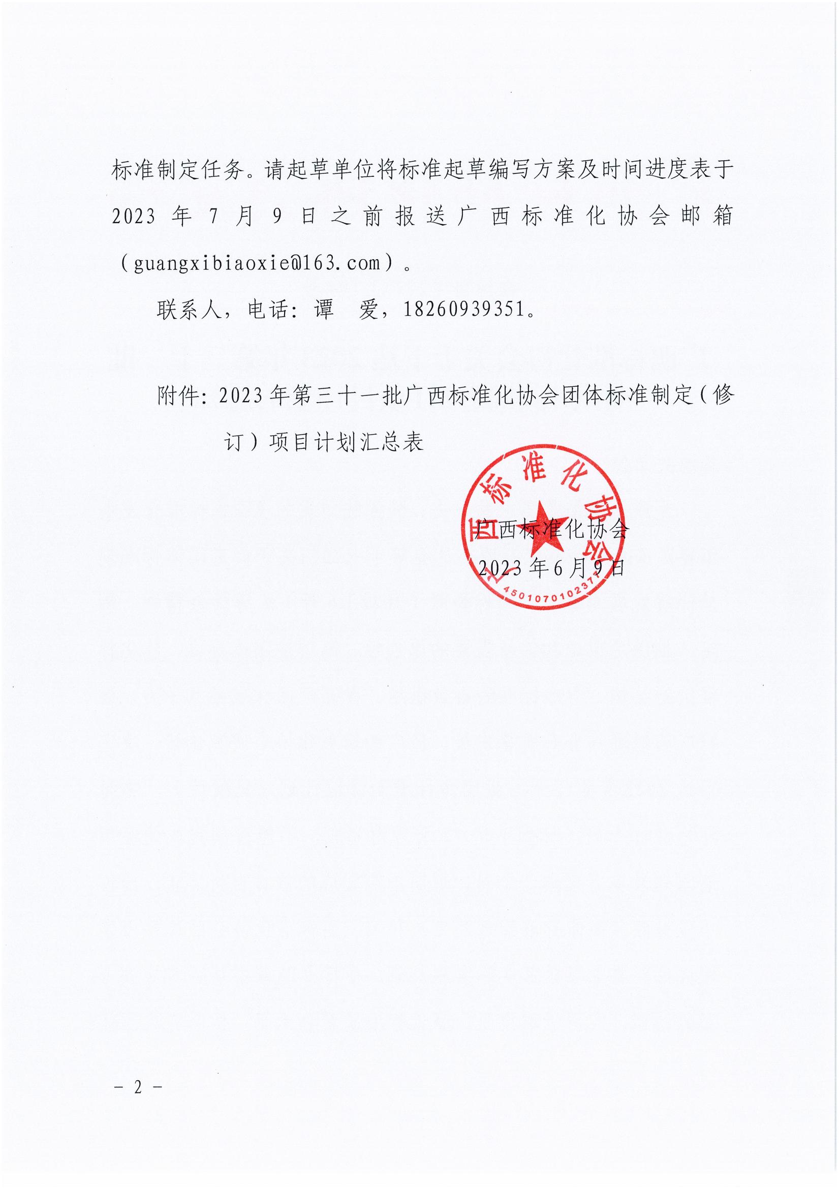 广西标准化协会关于下达2023年第三十一批团体标准制修订项目计划的通知
