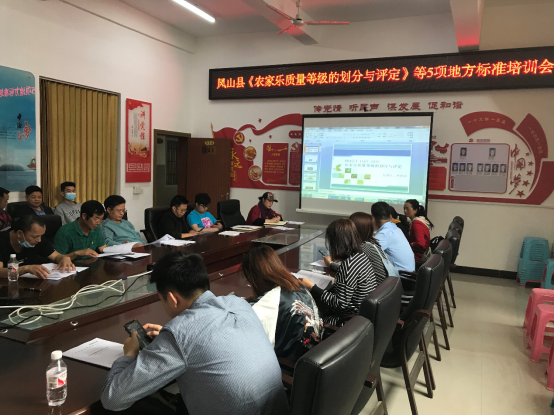 2020年4月29日,为高标准高质量做好凤山县创建自治区级旅游标准化示范县工作,加快农家乐标准化建设,深入实施农家乐相关标准,打造凤山县农家乐餐饮服务品牌。凤山县创建自治区级旅游标准化示范县工作领导小组办公室(简称“创标办”)在凤山县文广体旅局五楼会议室召开《DB45/T 1163-2015农家乐质量等级的划分与评定》宣贯培训会,凤山县创标领导小组相关成员单位、各农家乐负责人及相关工作人员共40余人参加培训。