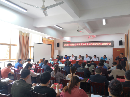 2020年4月30日,为高标准高质量完成凤山创建自治区级旅游标准化示范县工作,凤山县在县文广体旅局六楼会议室主持召开凤山县创建自治区级旅游标准化示范县迎检工作动员会,部署自治区级旅游标准化示范县迎检工作。县政协副主席韦蔚岚出席迎检动员会议并作重要讲话。广西标准化协会谢宏昭会长/高级工程师、河池市市场监管局标准化科王仕伦科长、凤山县创建自治区级旅游标准化示范县领导小组成员及创标试点企业等共计100多人参加会议。
