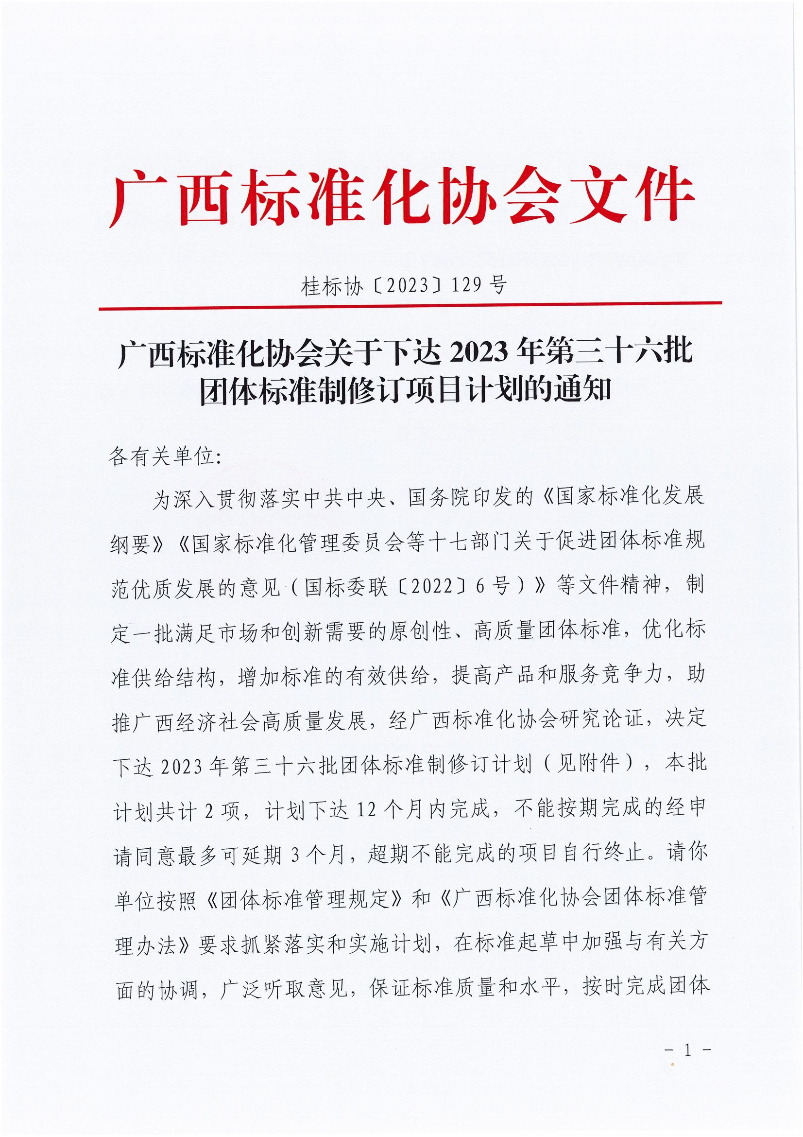 广西标准化协会关于下达2023年第三十六批团体标准制修订项目计划的通知