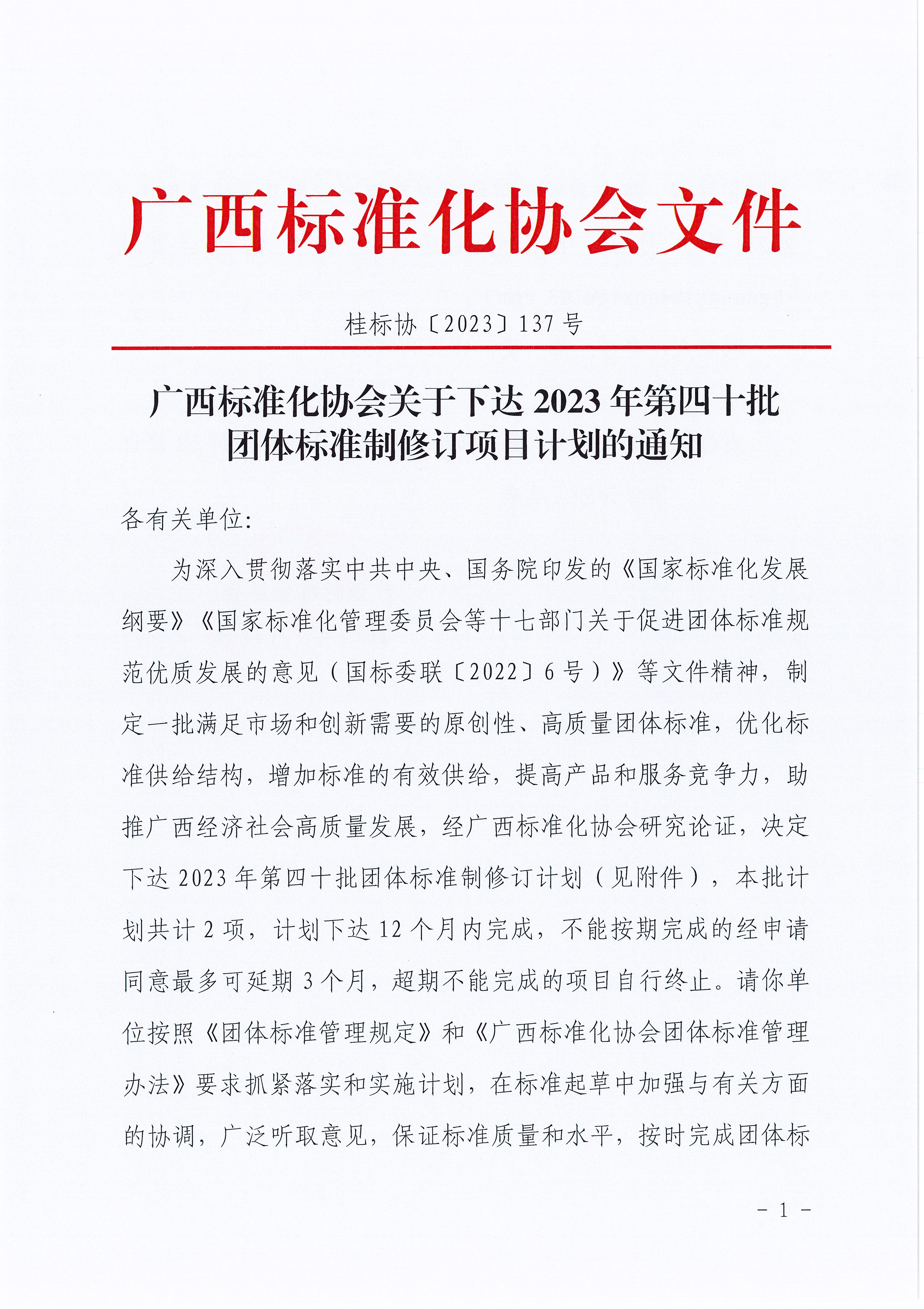 广西标准化协会关于下达2023年第四十批团体标准制修订项目计划的通知