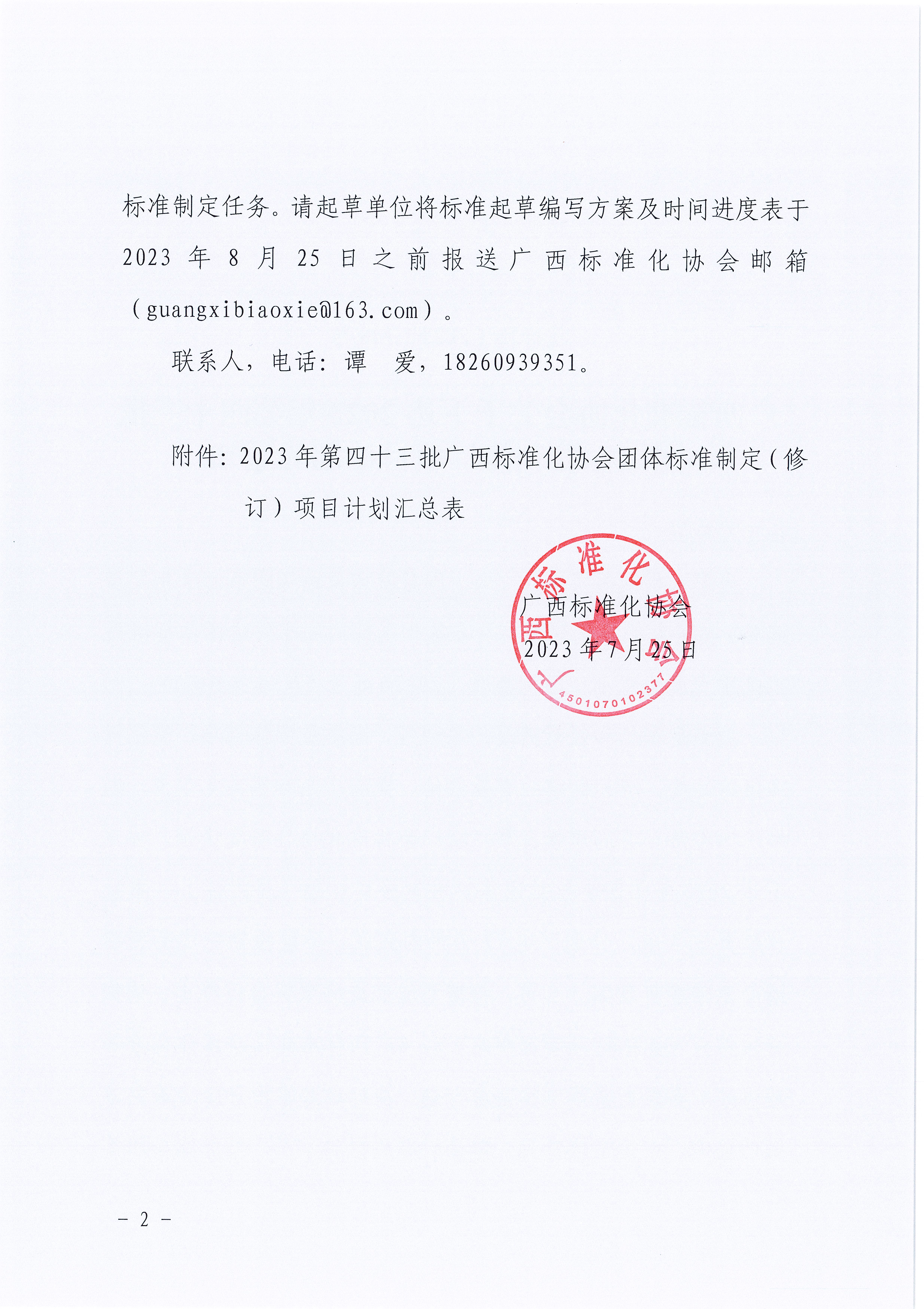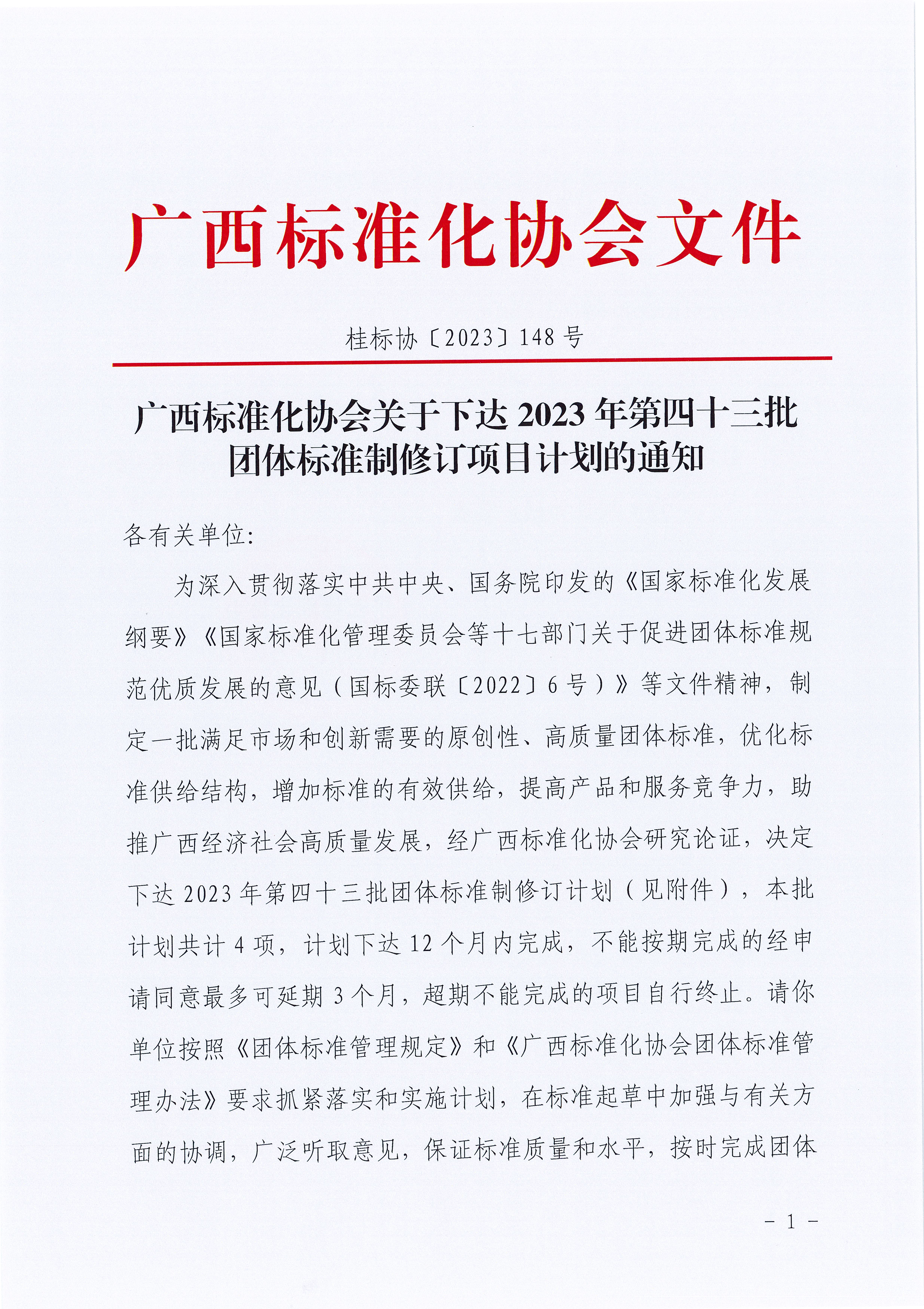 广西标准化协会关于下达2023年第四十三批团体标准制修订项目计划的通知