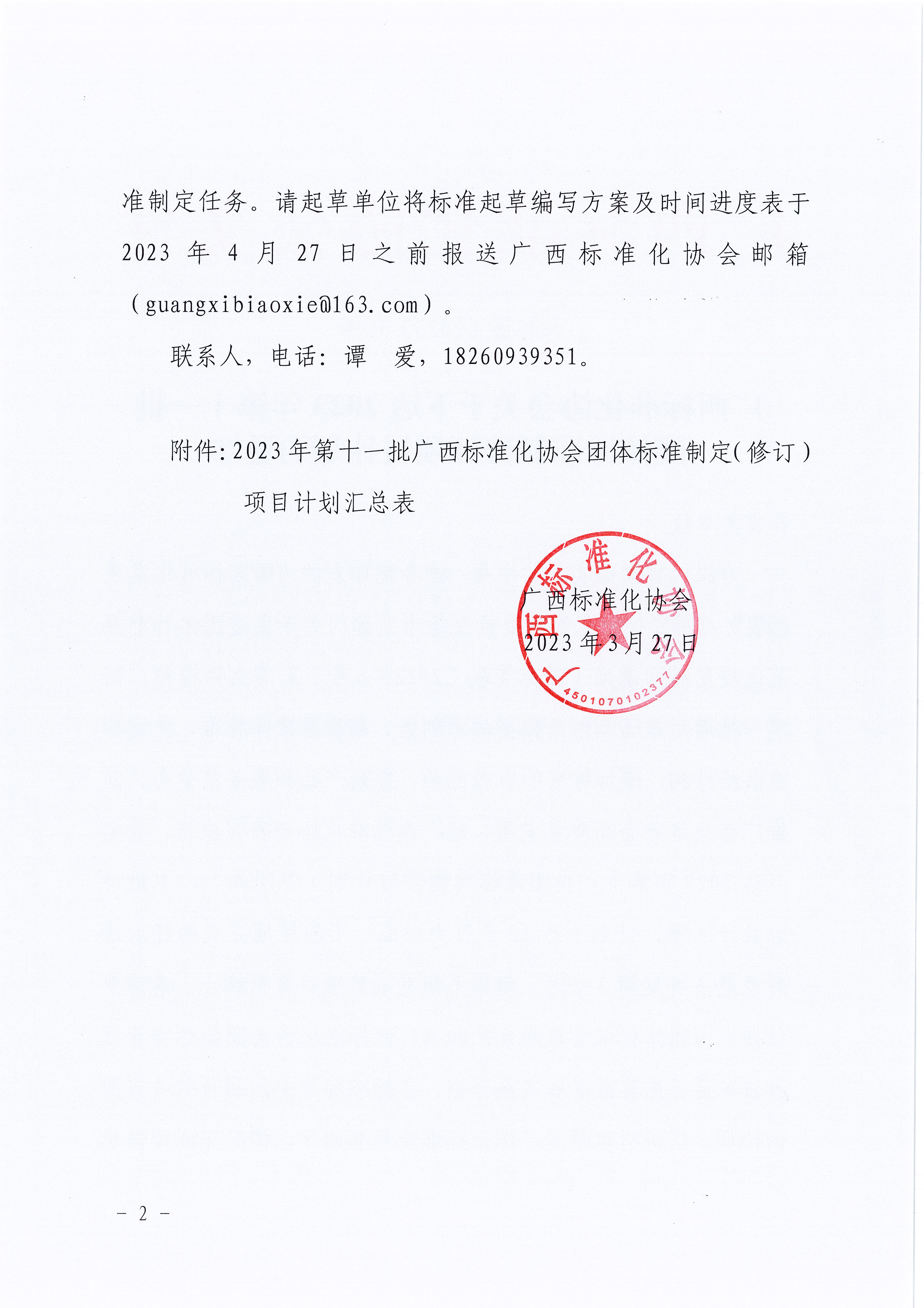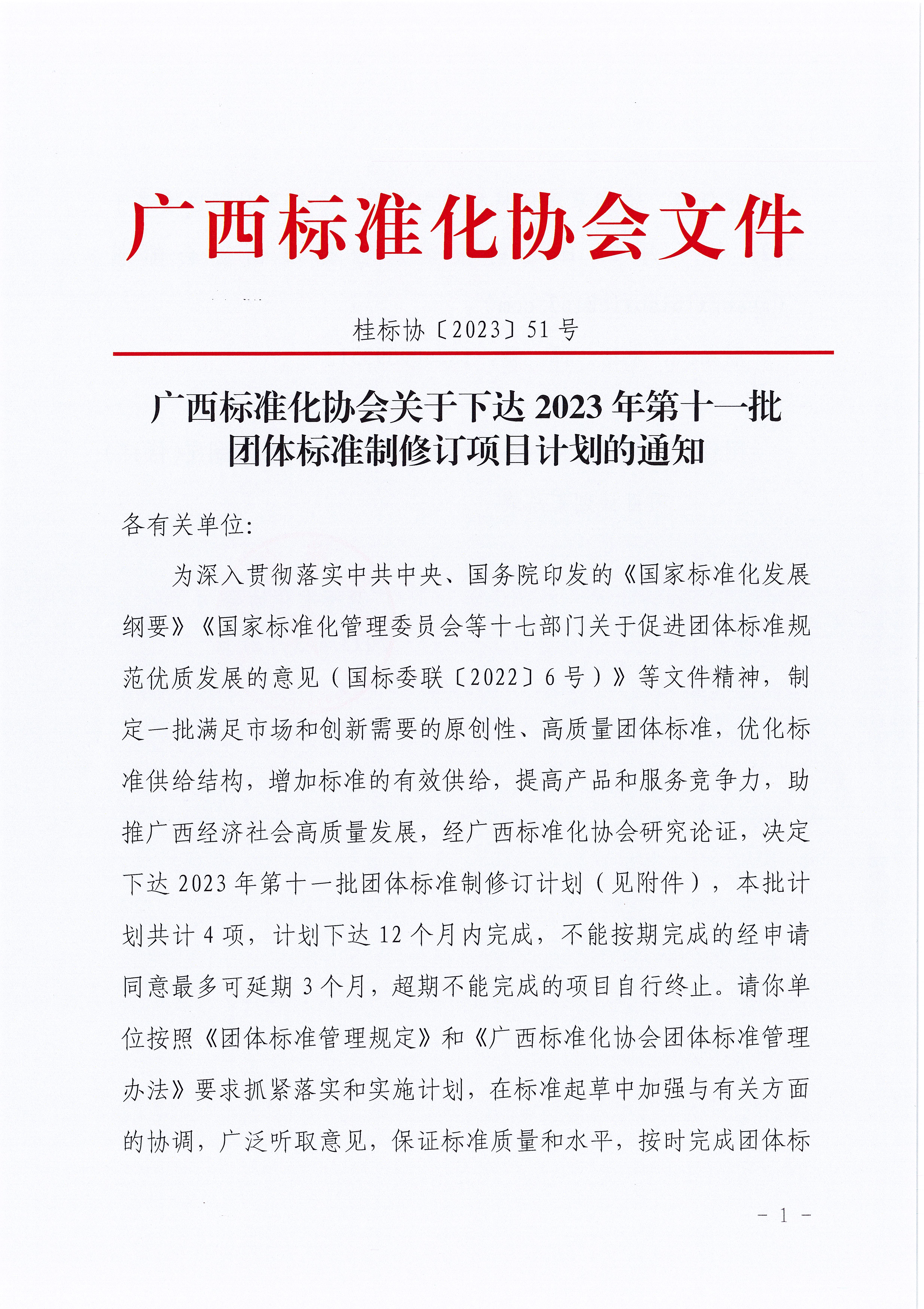 广西标准化协会关于下达2023年第十一批团体标准制修订项目计划的通知