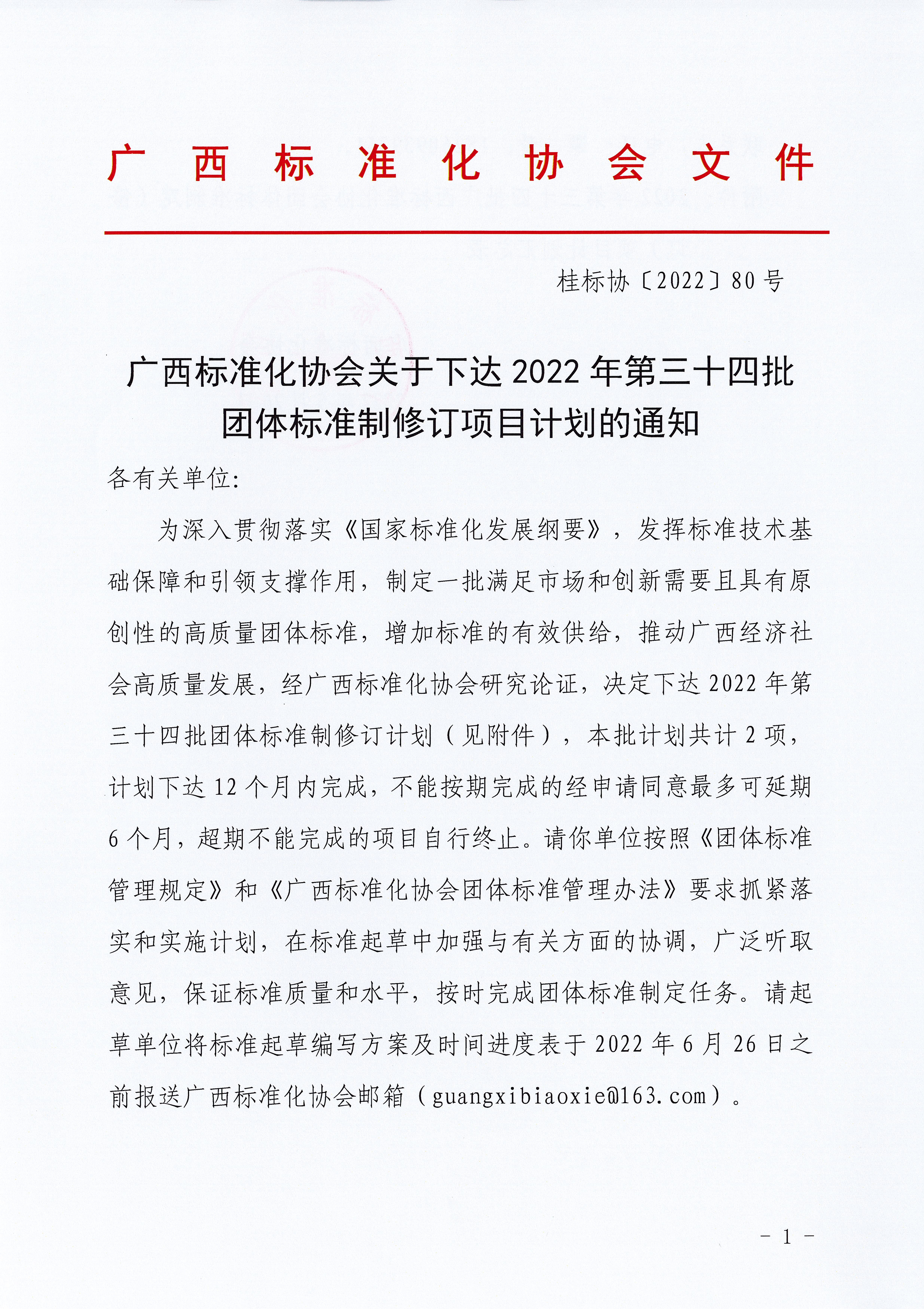 广西标准化协会关于下达2022年第三十四批团体标准制修订项目计划的通知