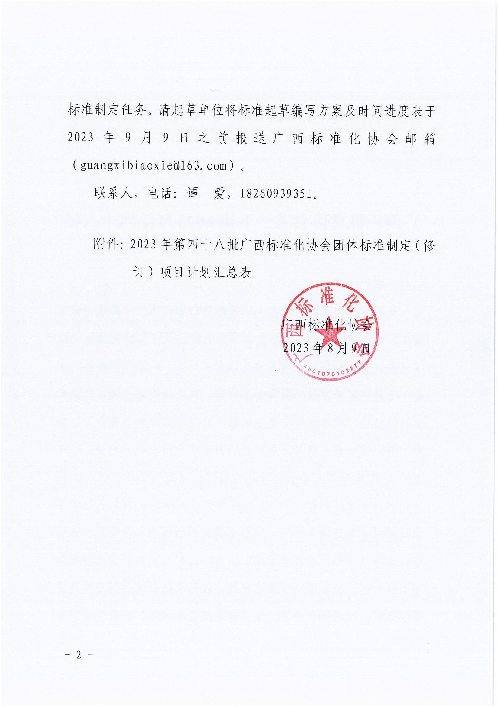 广西标准化协会关于下达2023年第四十八批团体标准制修订项目计划的通知