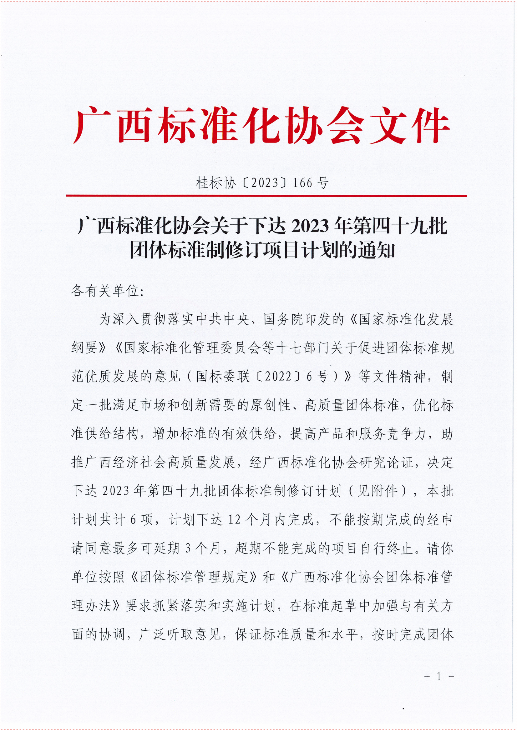 广西标准化协会关于下达2023年第四十八批团体标准制修订项目计划的通知