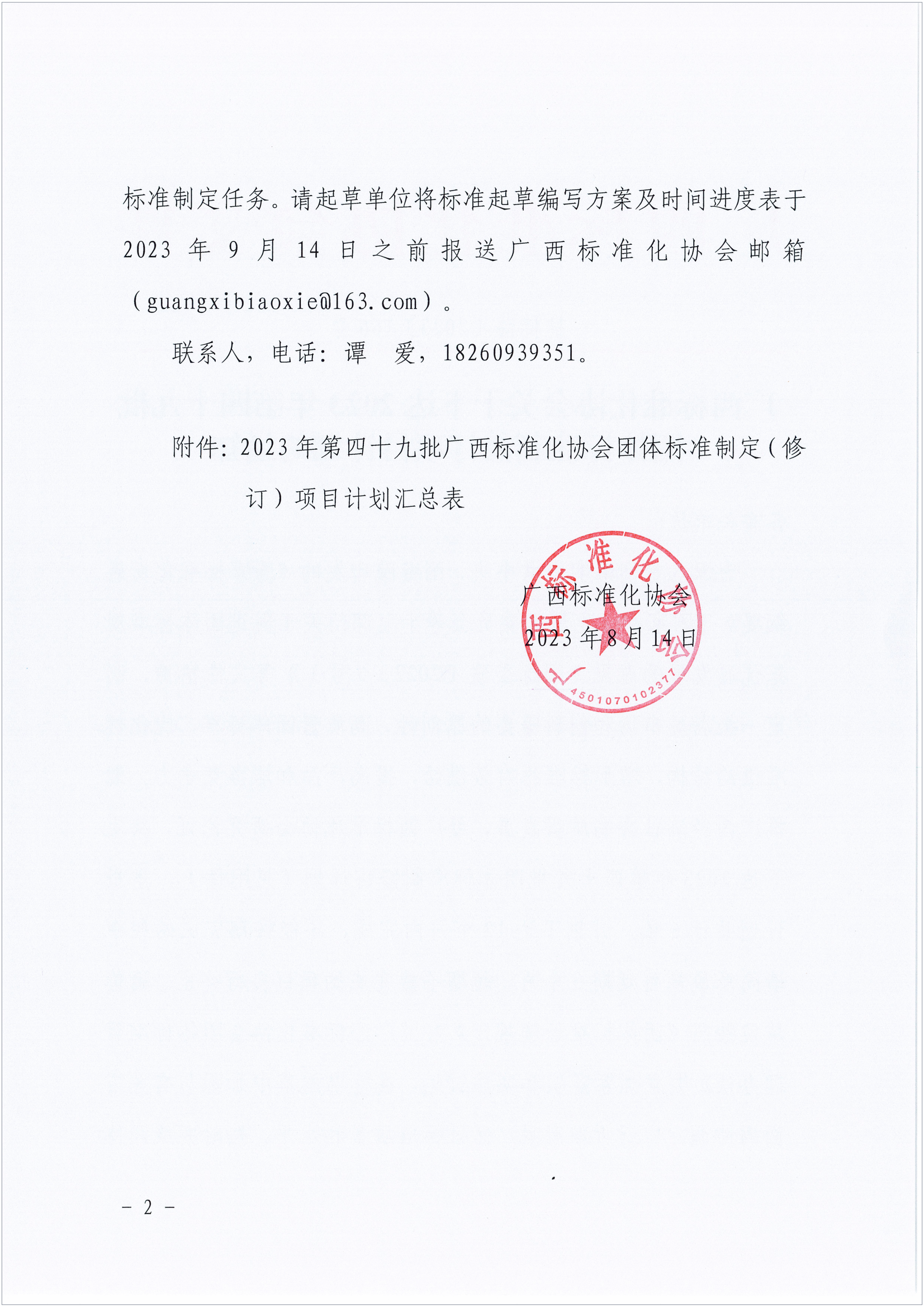 广西标准化协会关于下达2023年第五十批团体标准制修订项目计划的通知