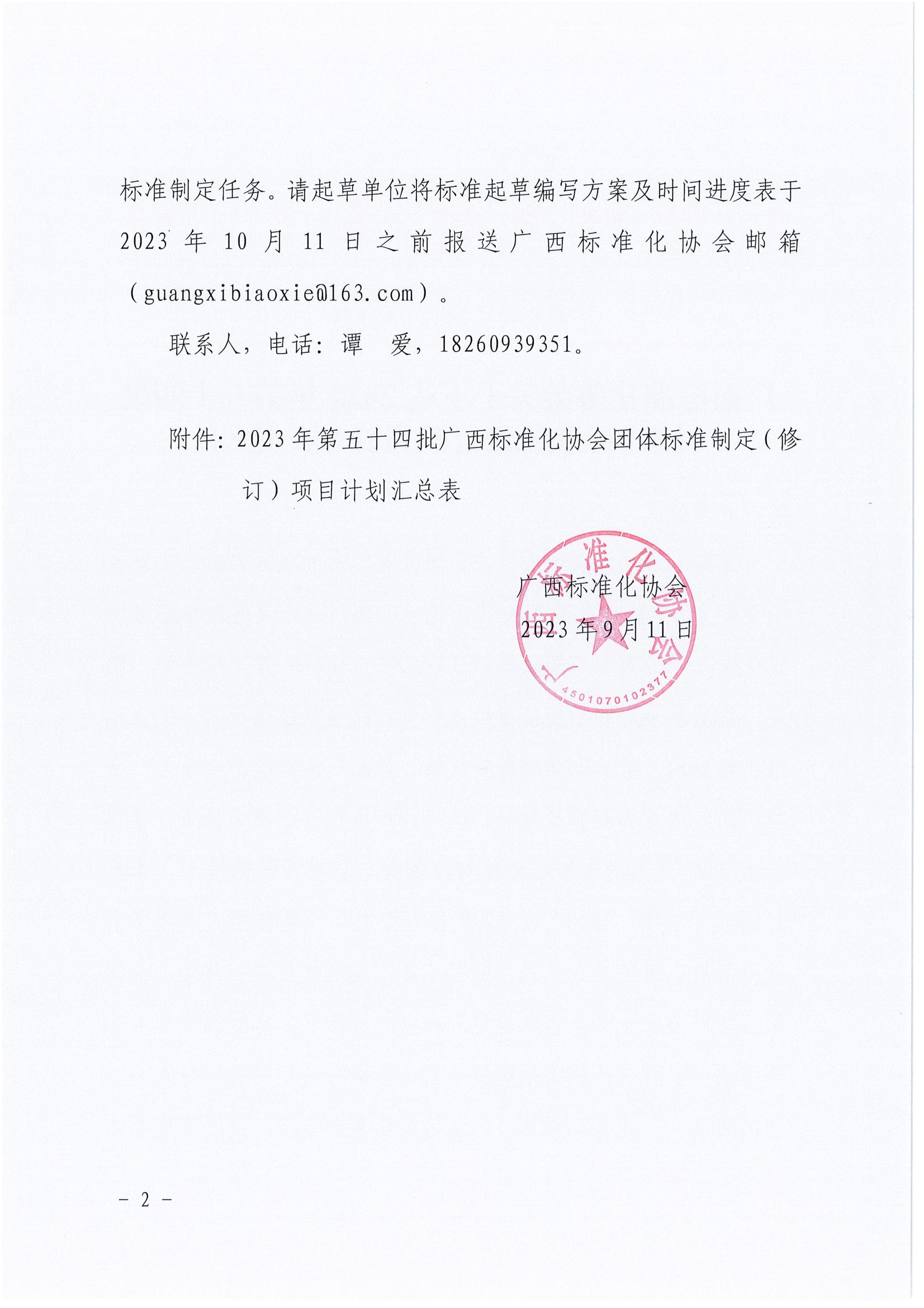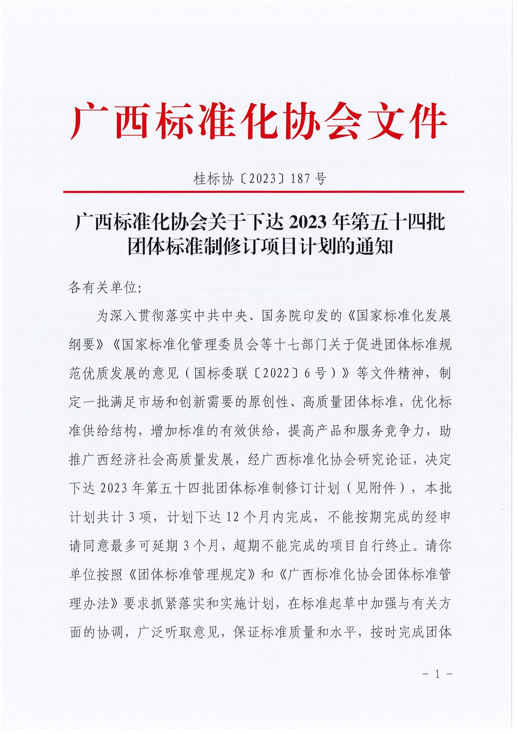 广西标准化协会关于下达2023年第五十四批团体标准制修订项目计划的通知