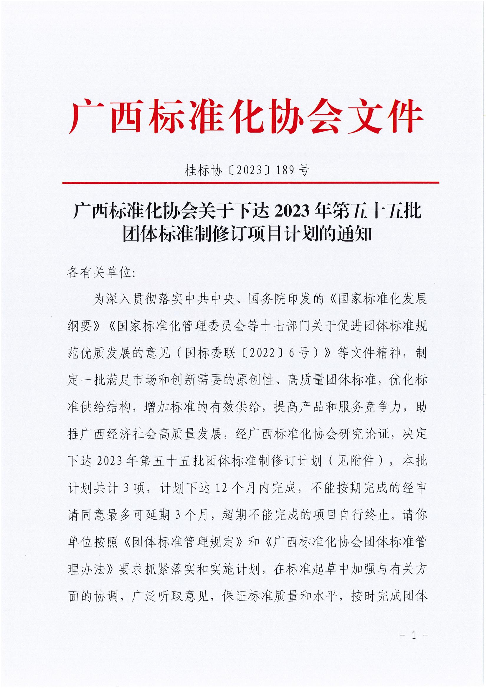 广西标准化协会关于下达2023年第五十五批团体标准制修订项目计划的通知