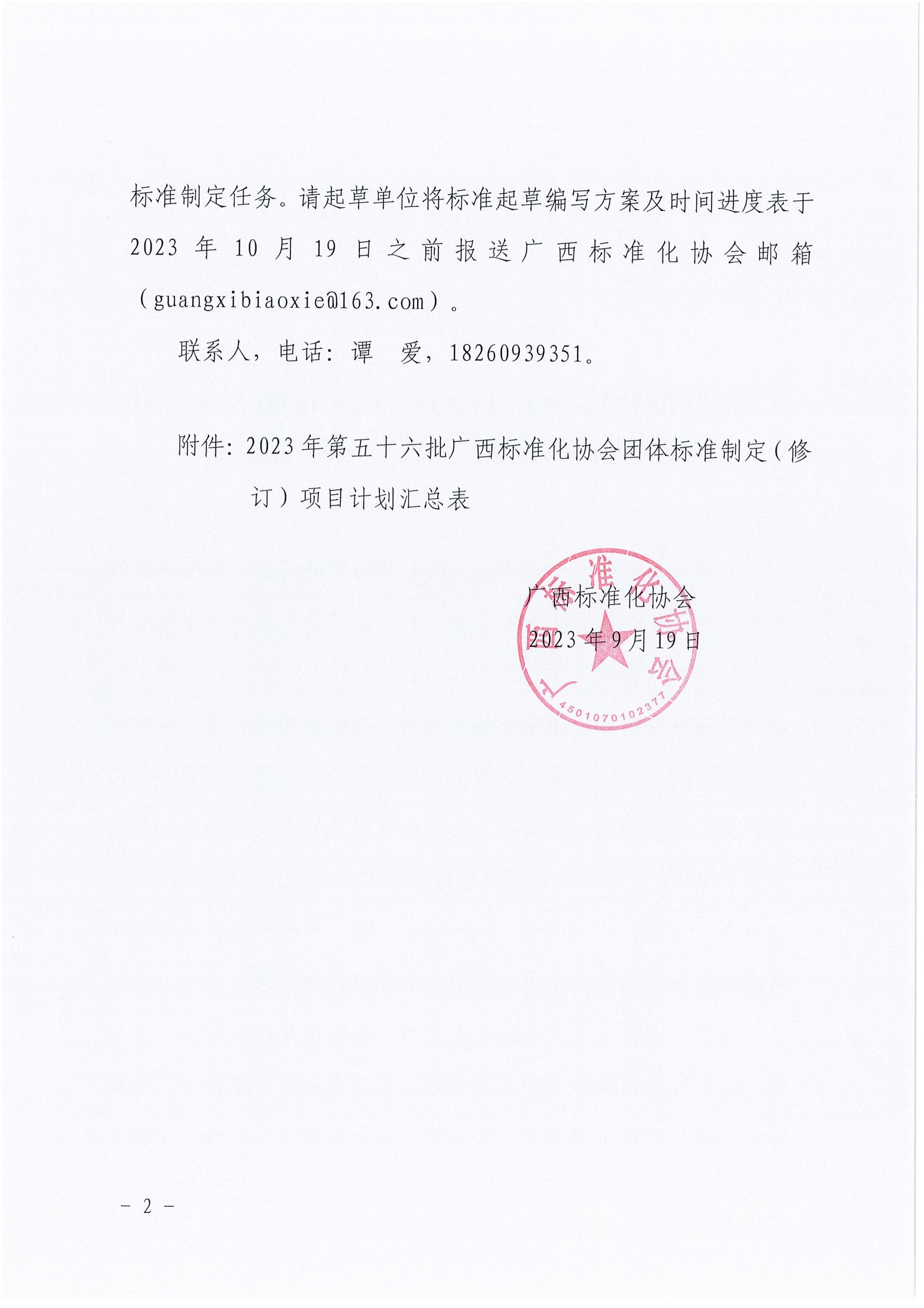 广西标准化协会关于下达2023年第五十六批团体标准制修订项目计划的通知
