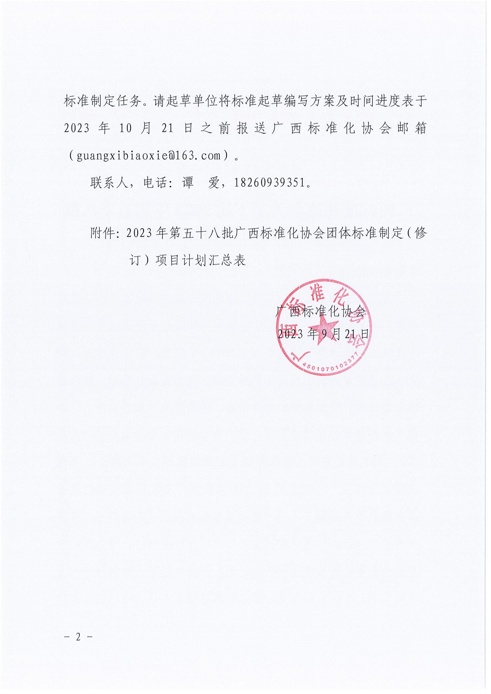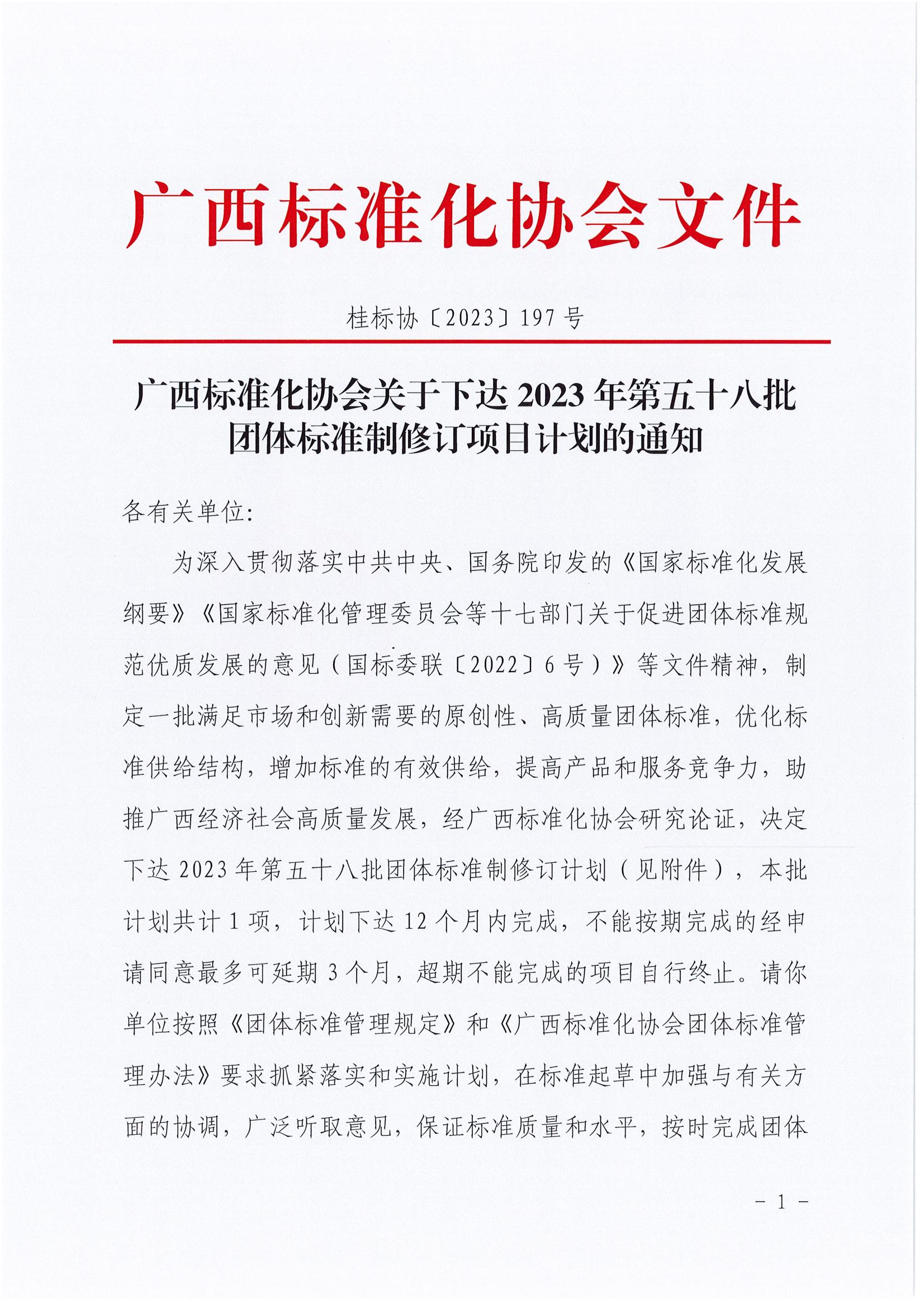 广西标准化协会关于下达2023年第五十八批团体标准制修订项目计划的通知