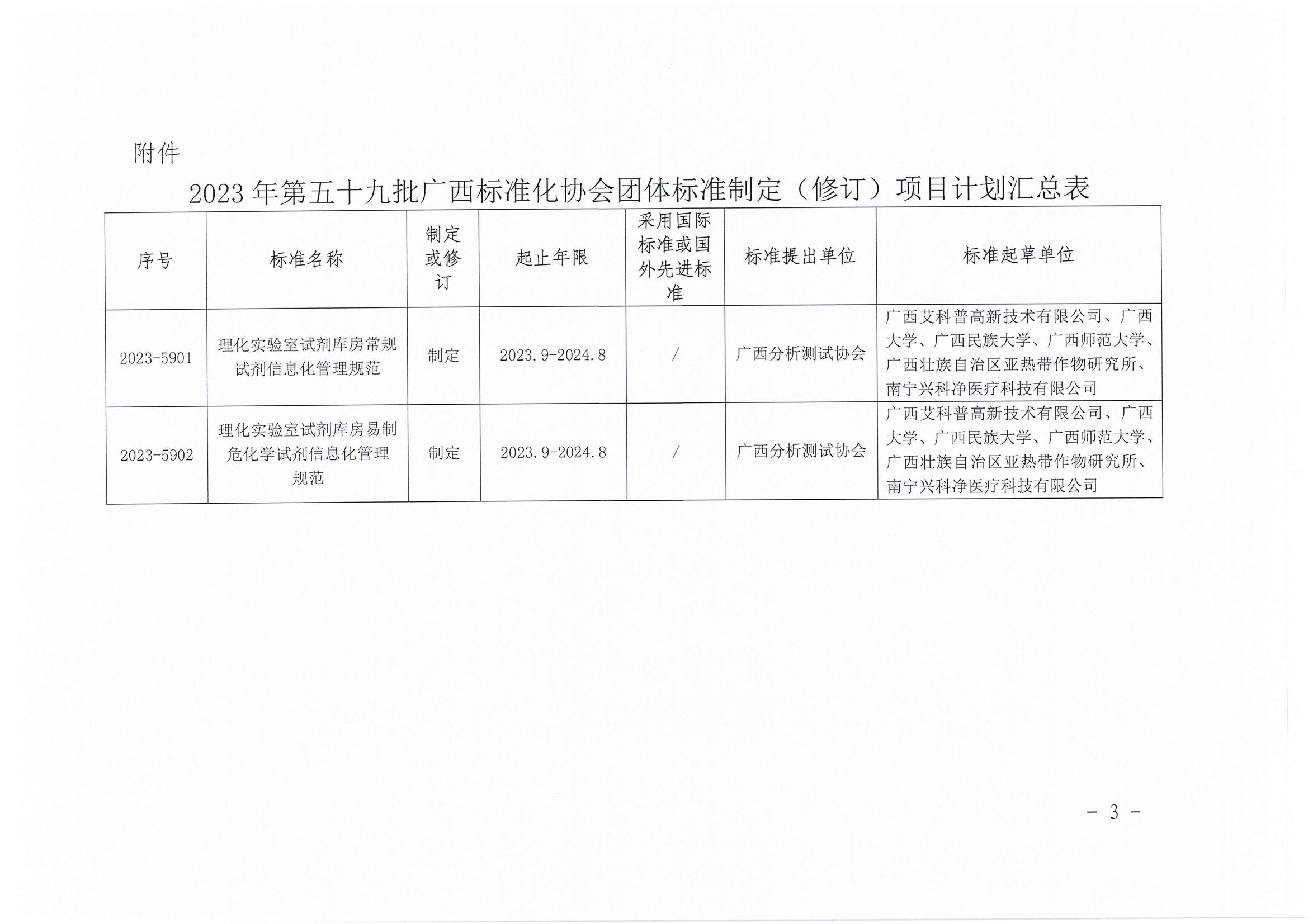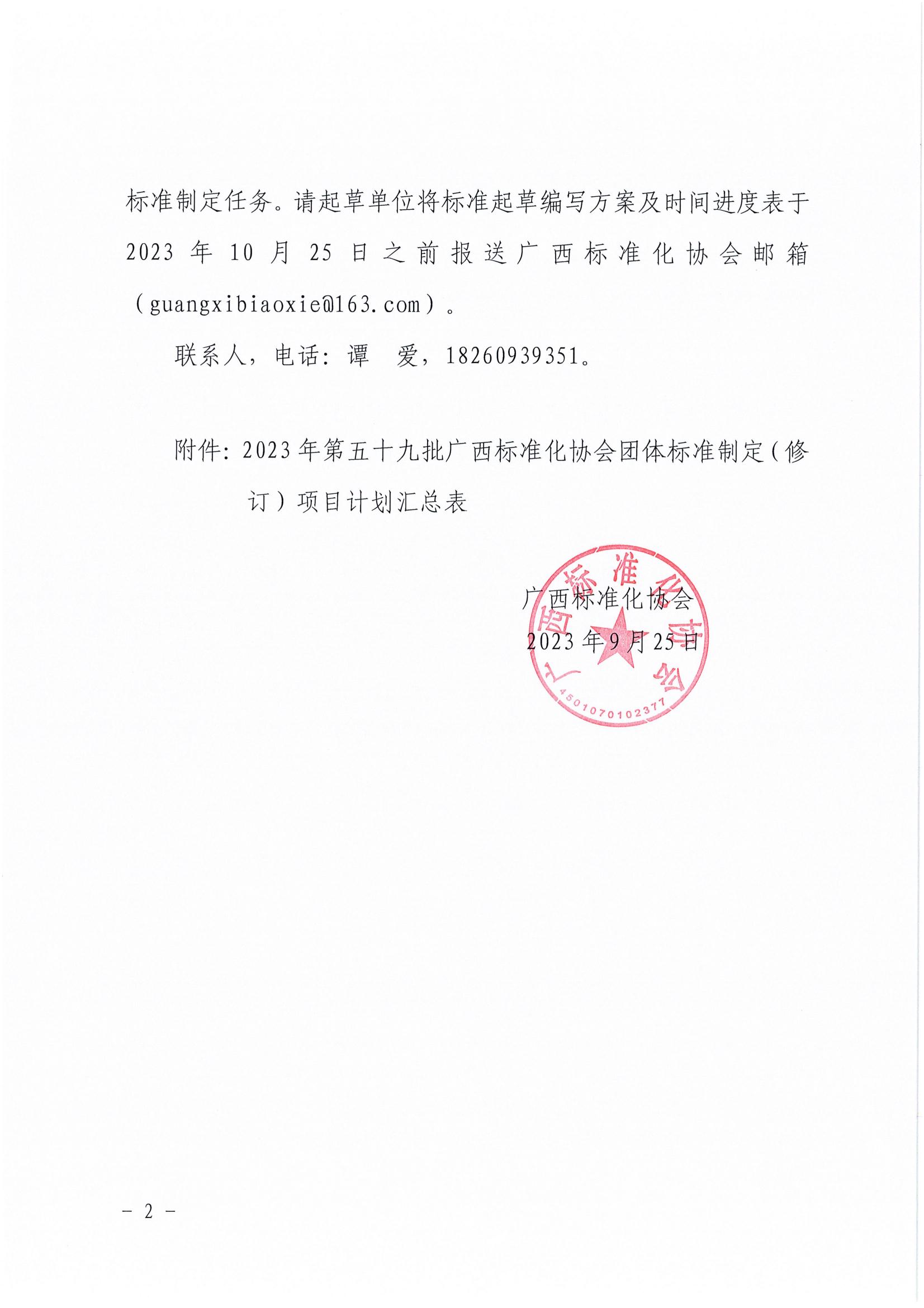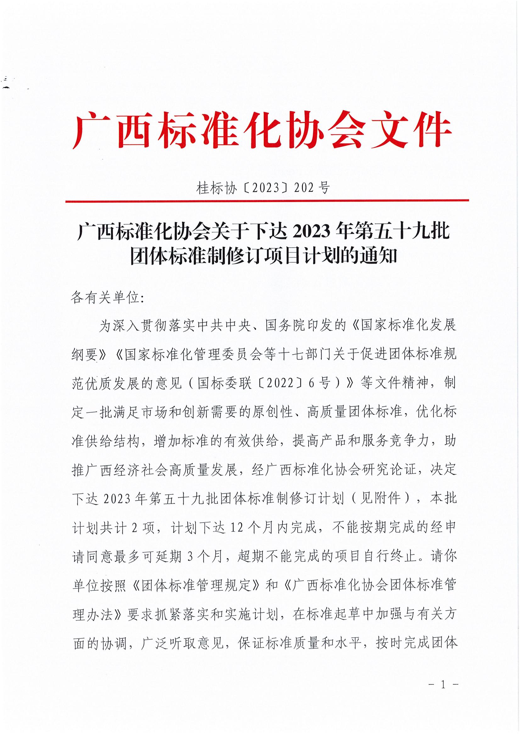 广西标准化协会关于下达2023年第五十九批团体标准制修订项目计划的通知