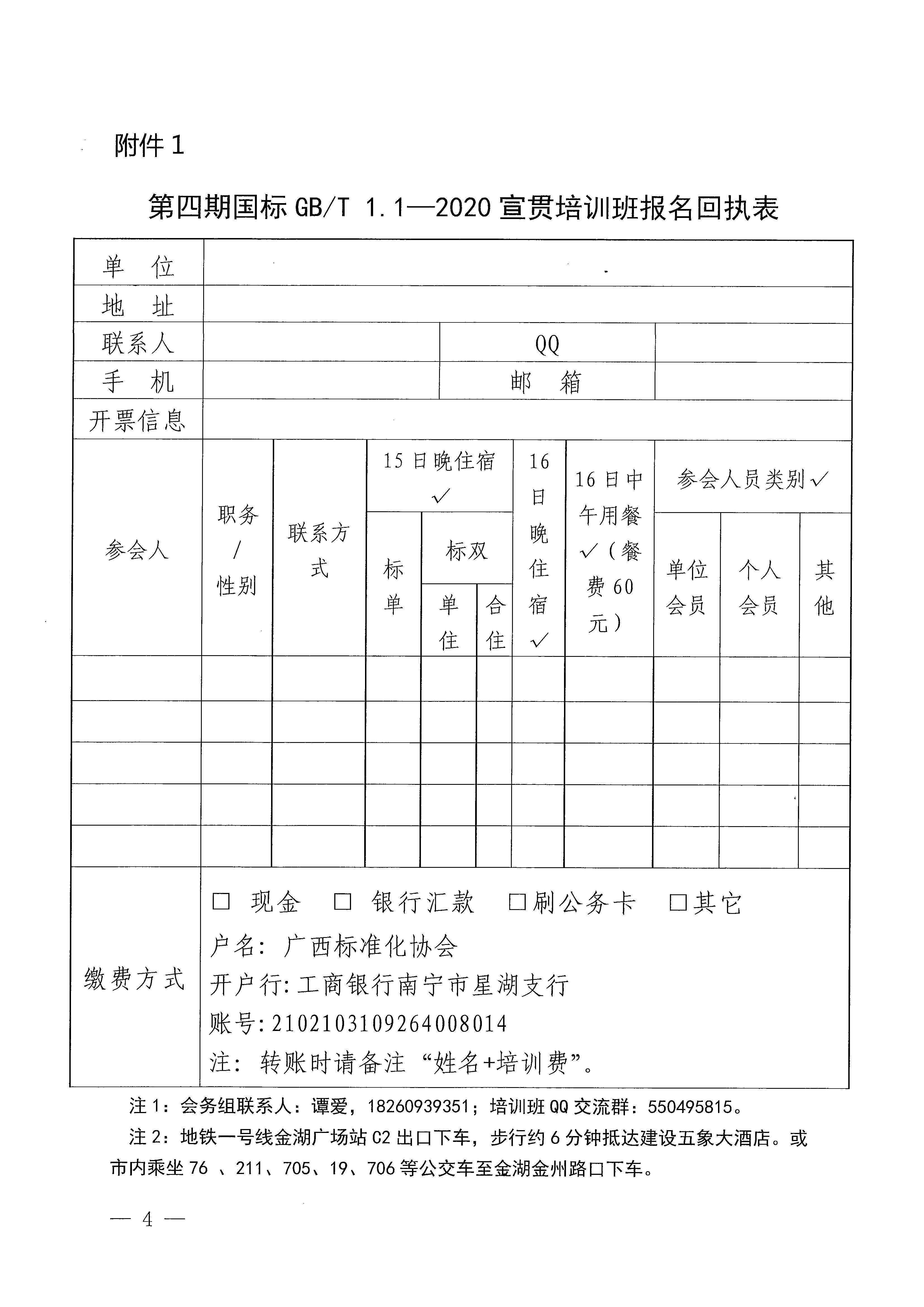 第四期国标GB/T 1.1—2020宣贯培训班报名回执表
