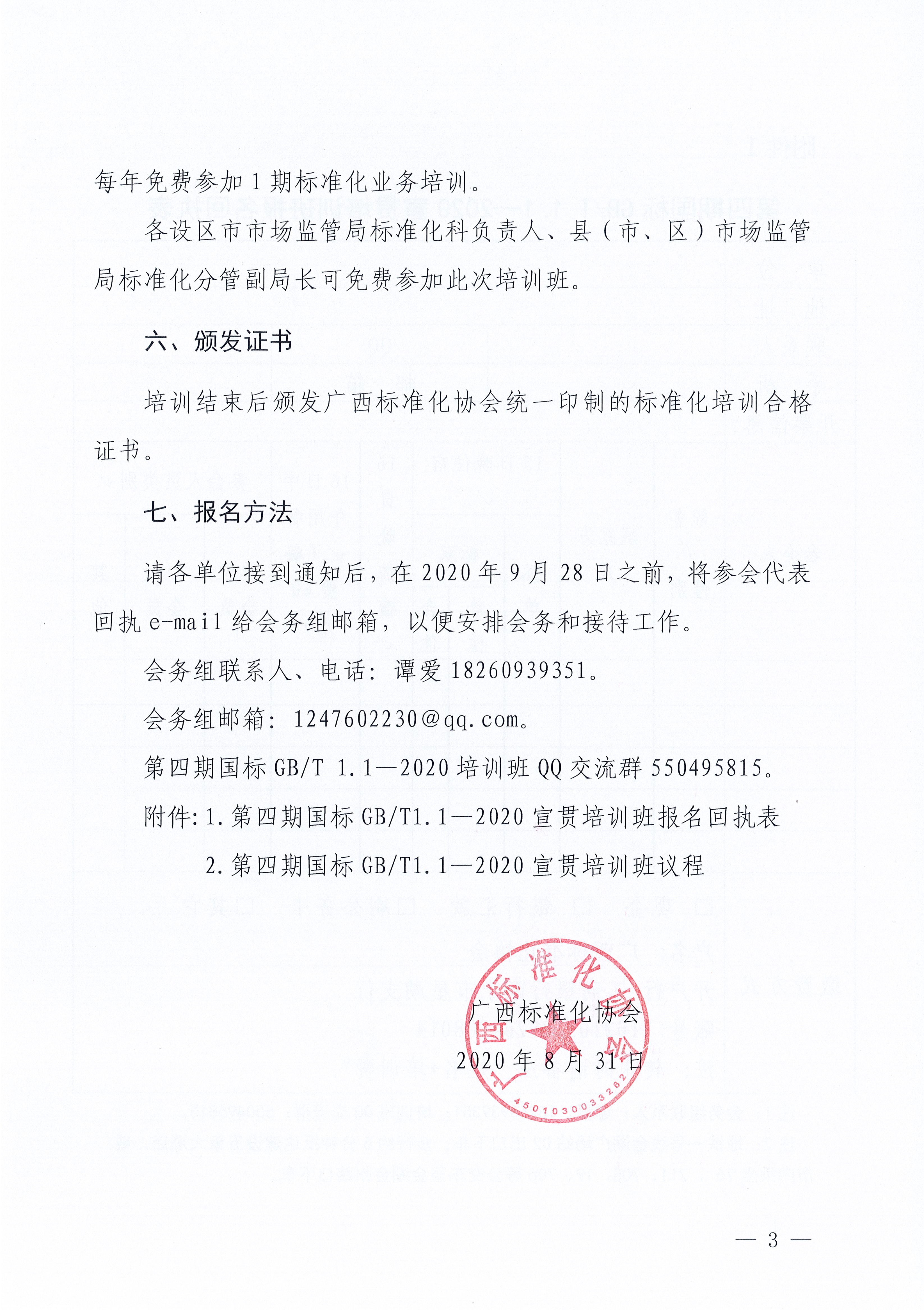广西标准化协会关于举办第四期国家标准《GB/T 1.1—2020 标准化工作导则 第1部分:标准化文件的结构和起草规则》宣贯培训班的通知