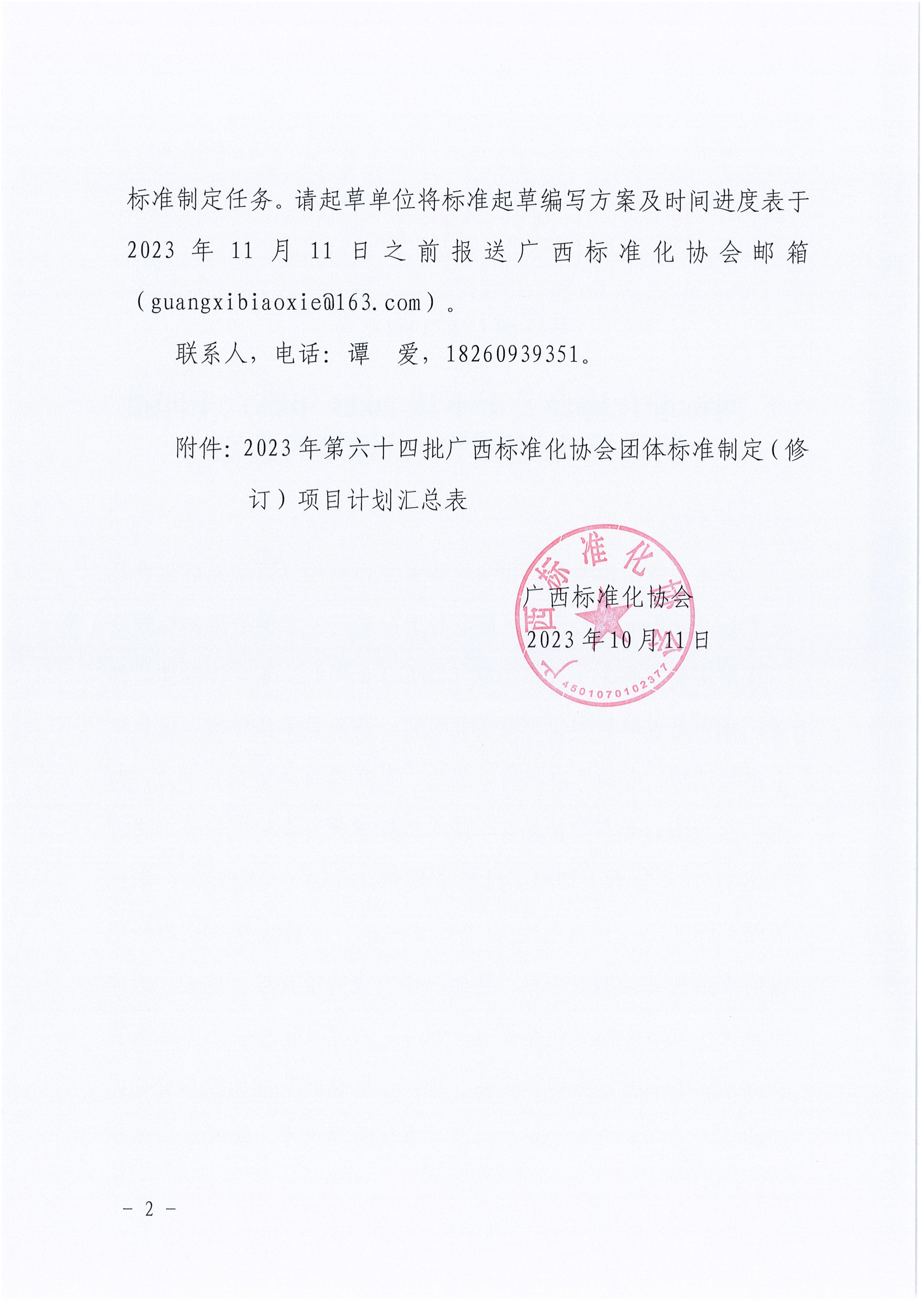 广西标准化协会关于下达2023年第六十四批团体标准制修订项目计划的通知