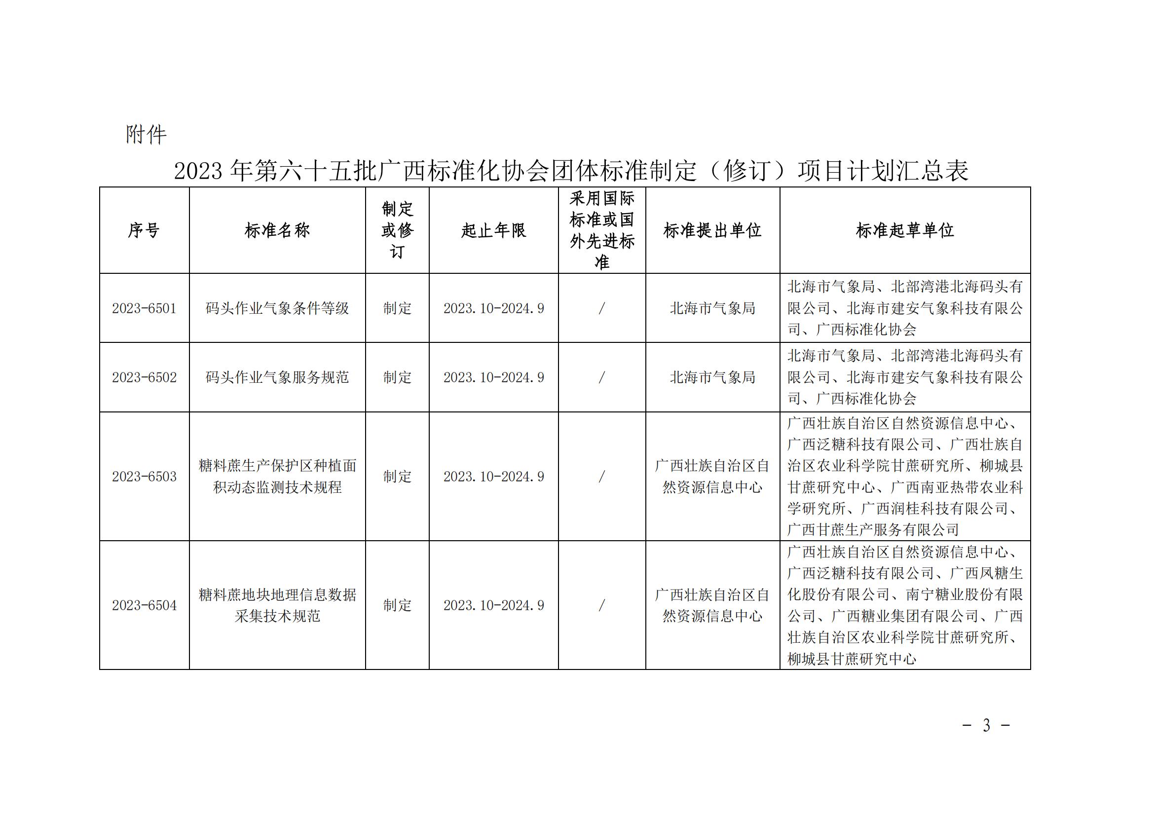 广西标准化协会关于下达2023年第六十五批团体标准制修订项目计划的通知