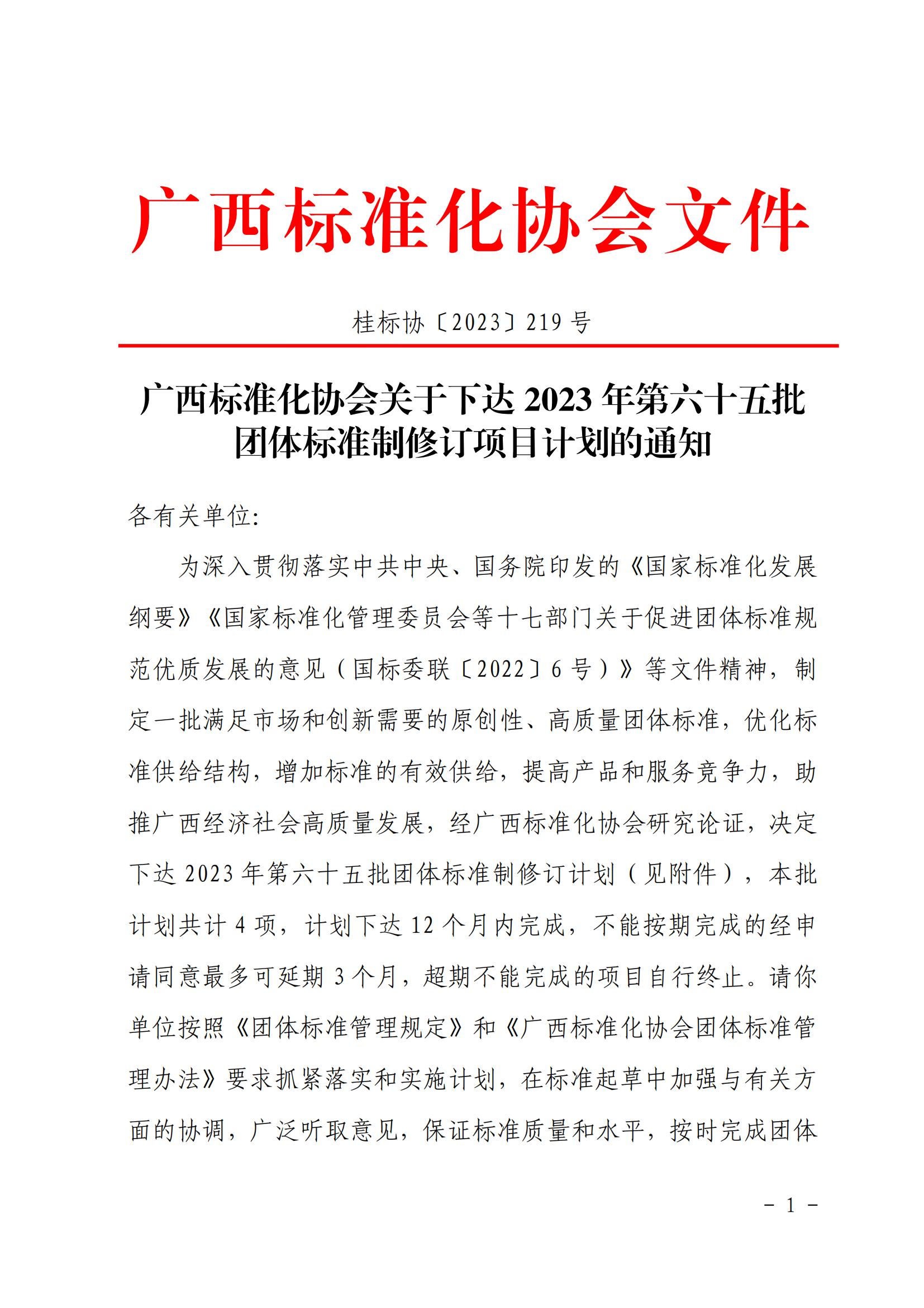 广西标准化协会关于下达 2023 年第六十五批 团体标准制修订项目计划的通知.pdf