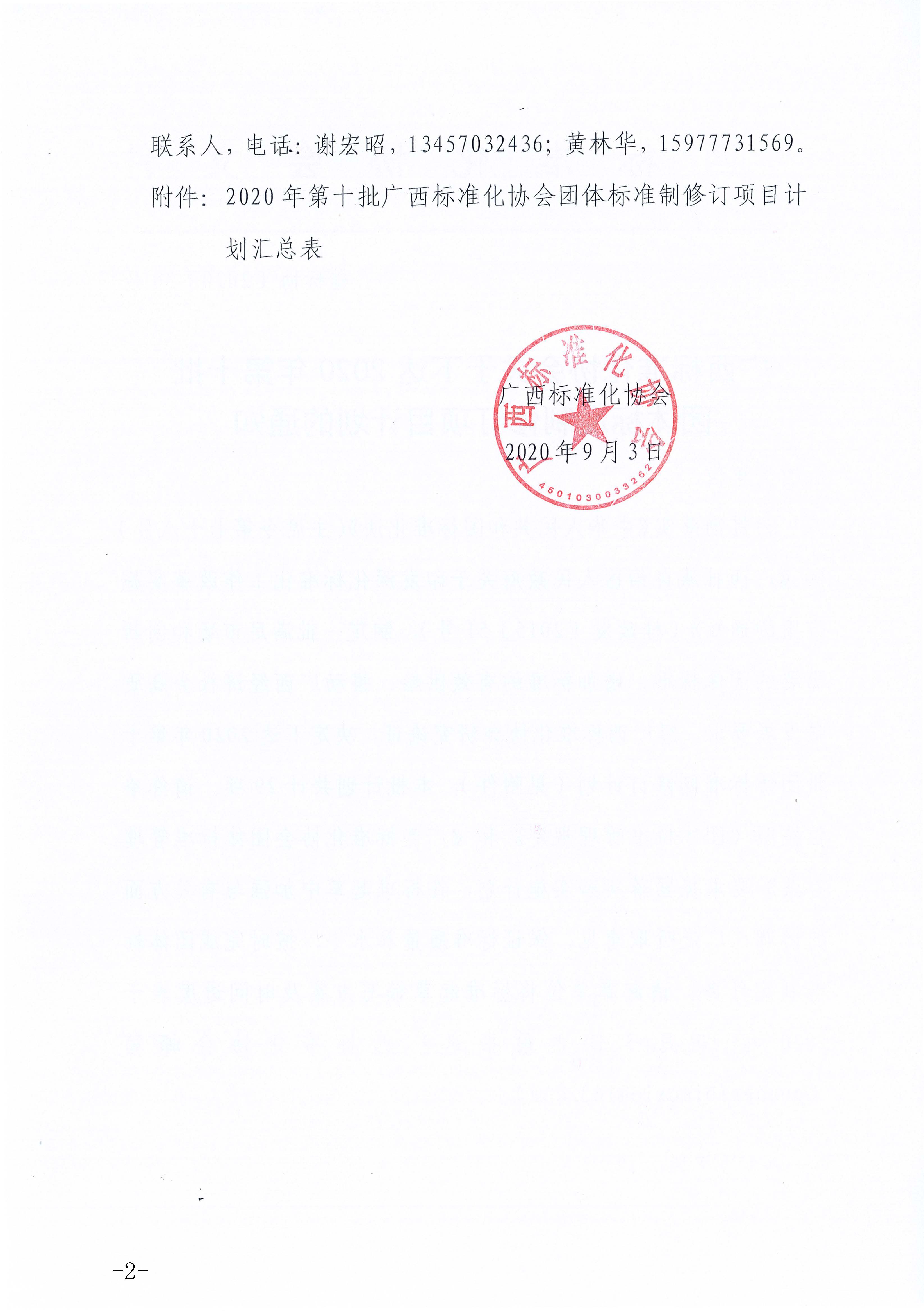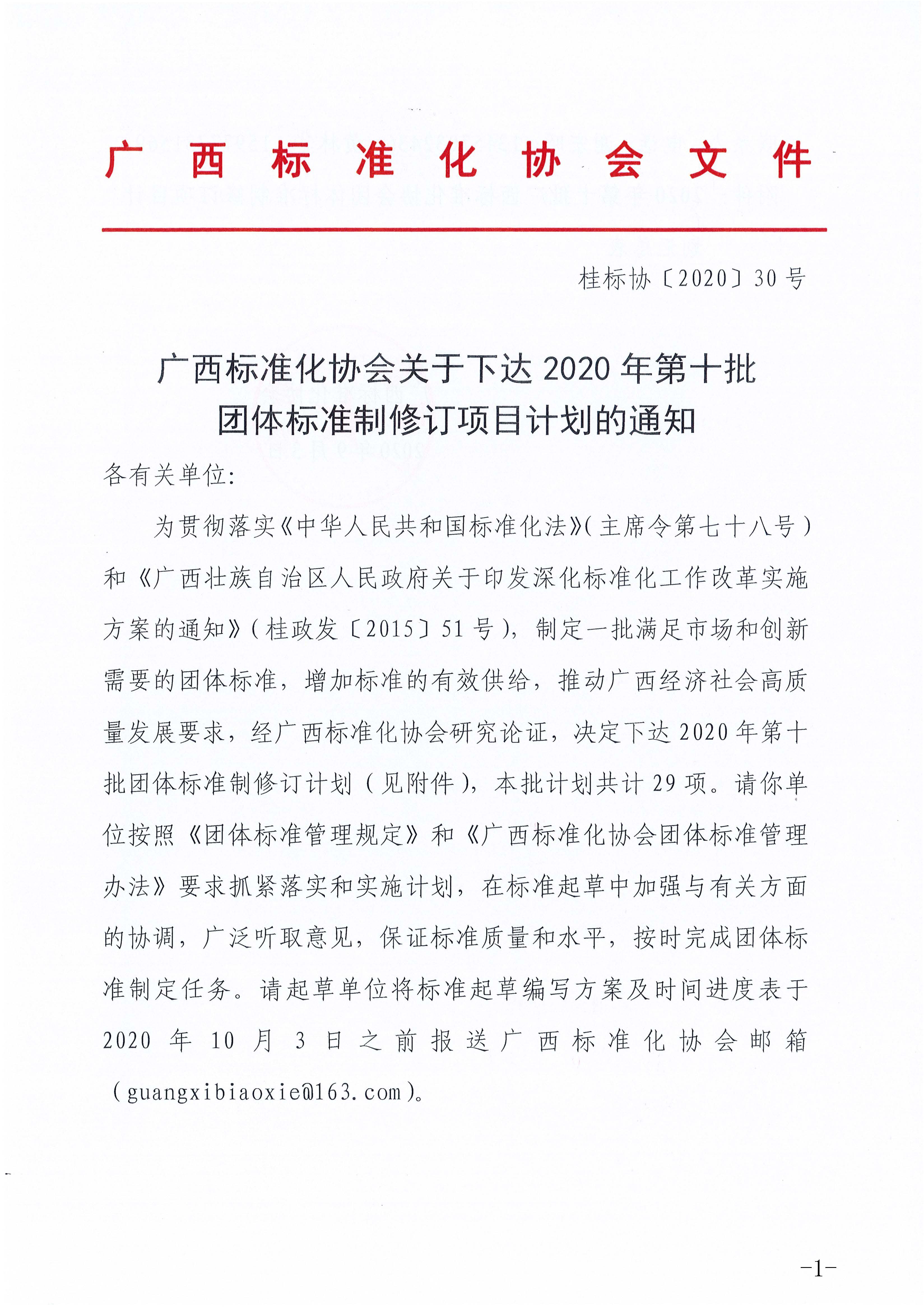 广西标准化协会关于下达2020年第十批团体标准制修订项目计划的通知
