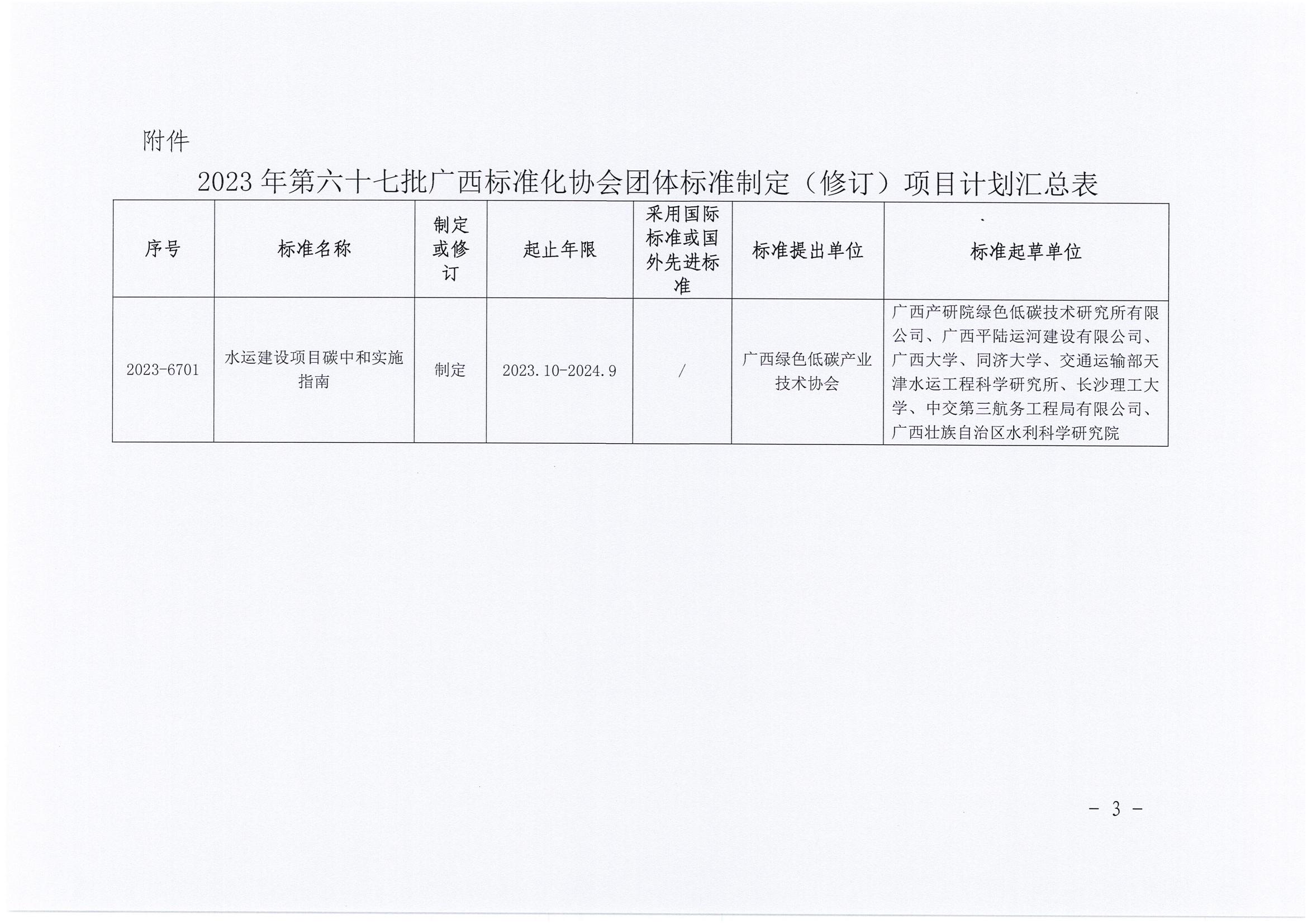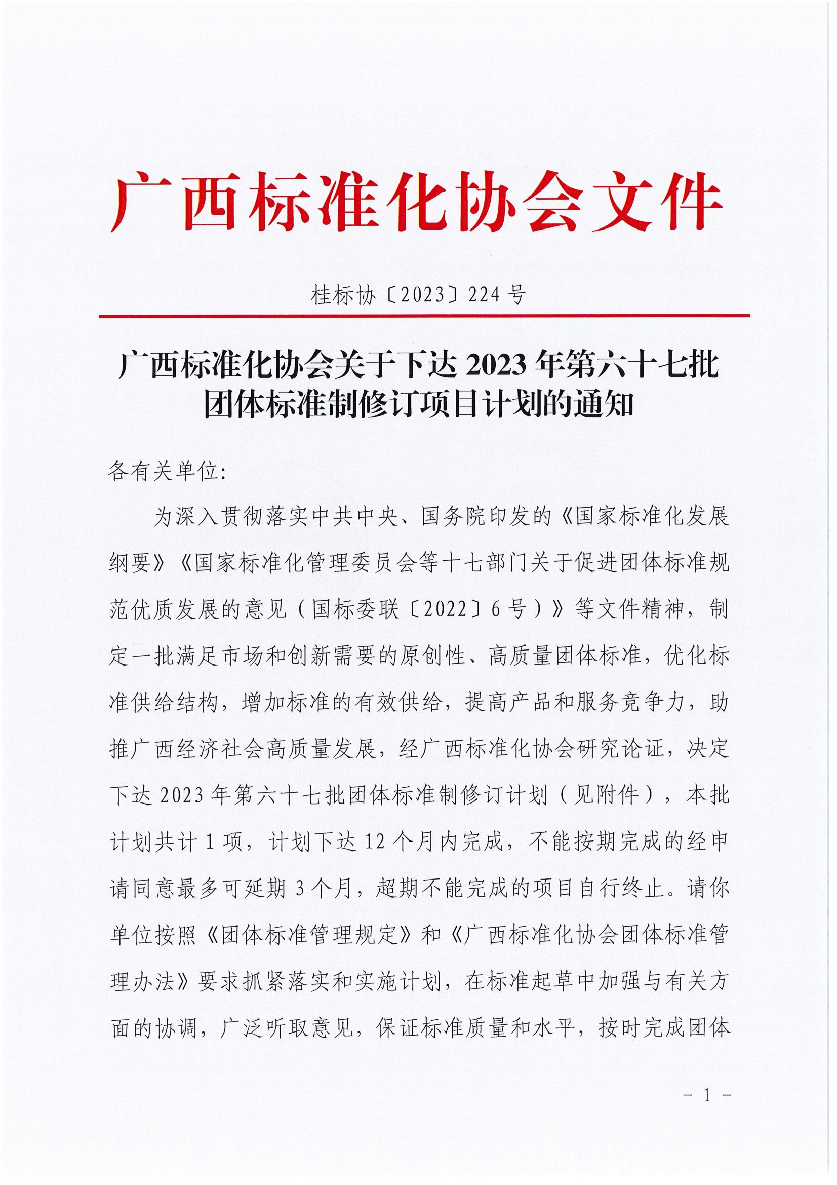 广西标准化协会关于下达2023年第六十七批团体标准制修订项目计划的通知
