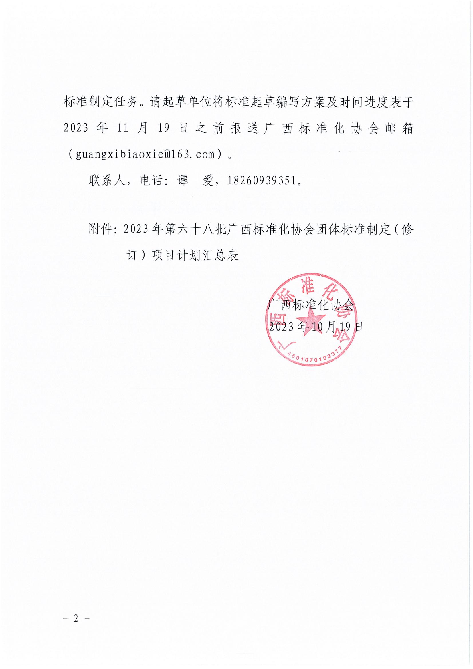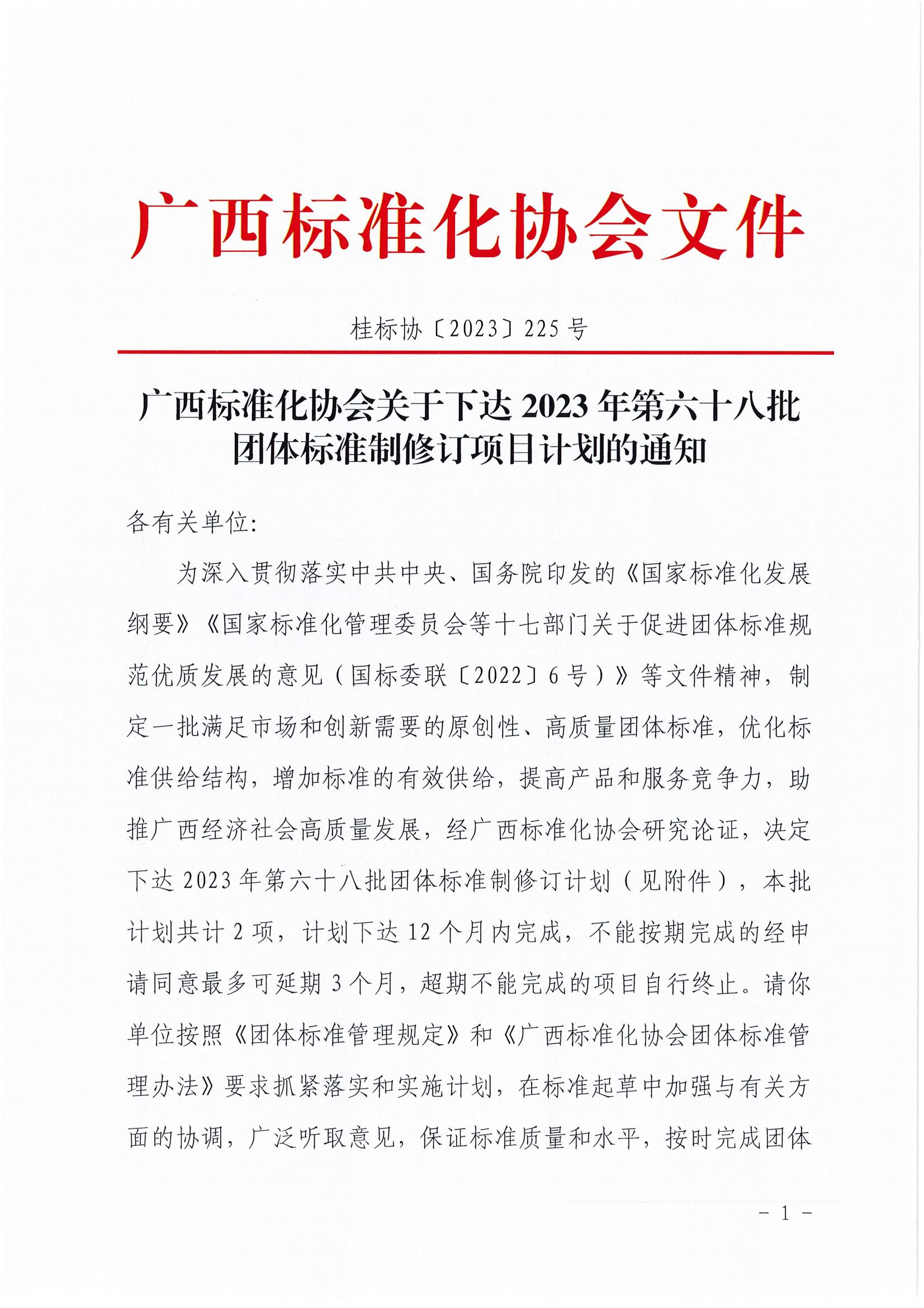 广西标准化协会关于下达2023年第六十八批团体标准制修订项目计划的通知