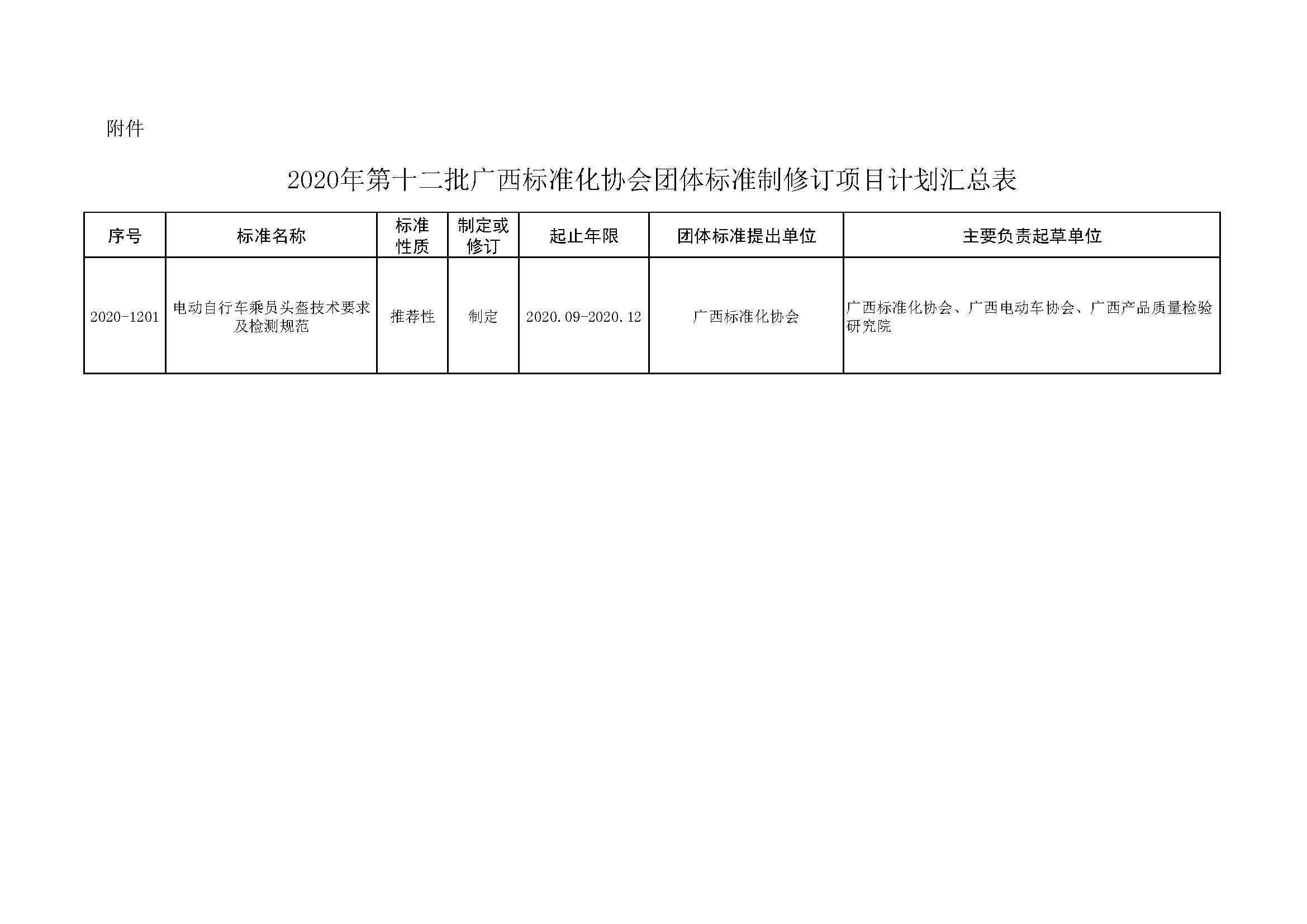 附件:2020年第十二批广西标准化协会团体标准制修订项目计划汇总表