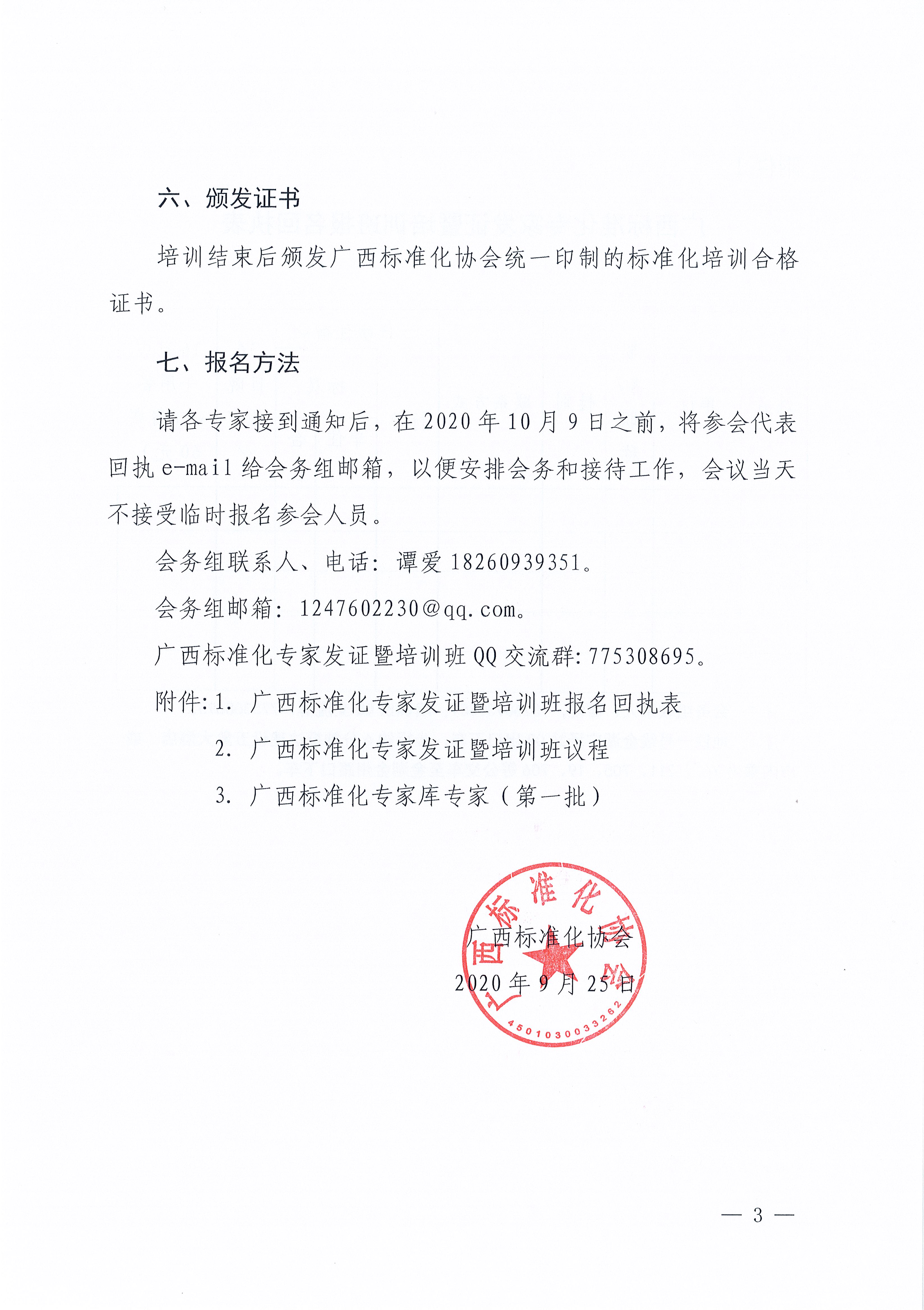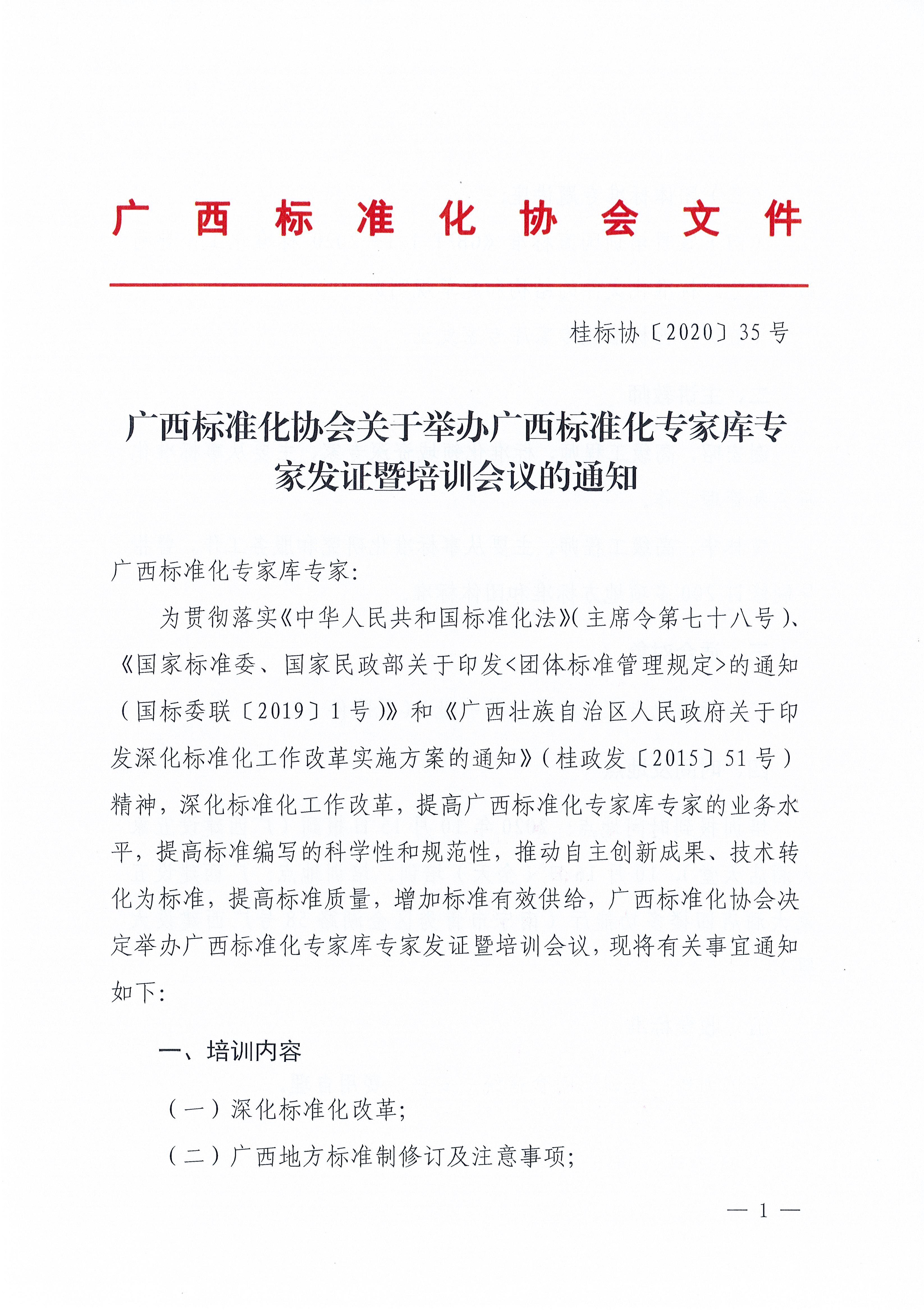 广西标准化协会关于举办广西标准化专家库专家发证暨培训会议的通知