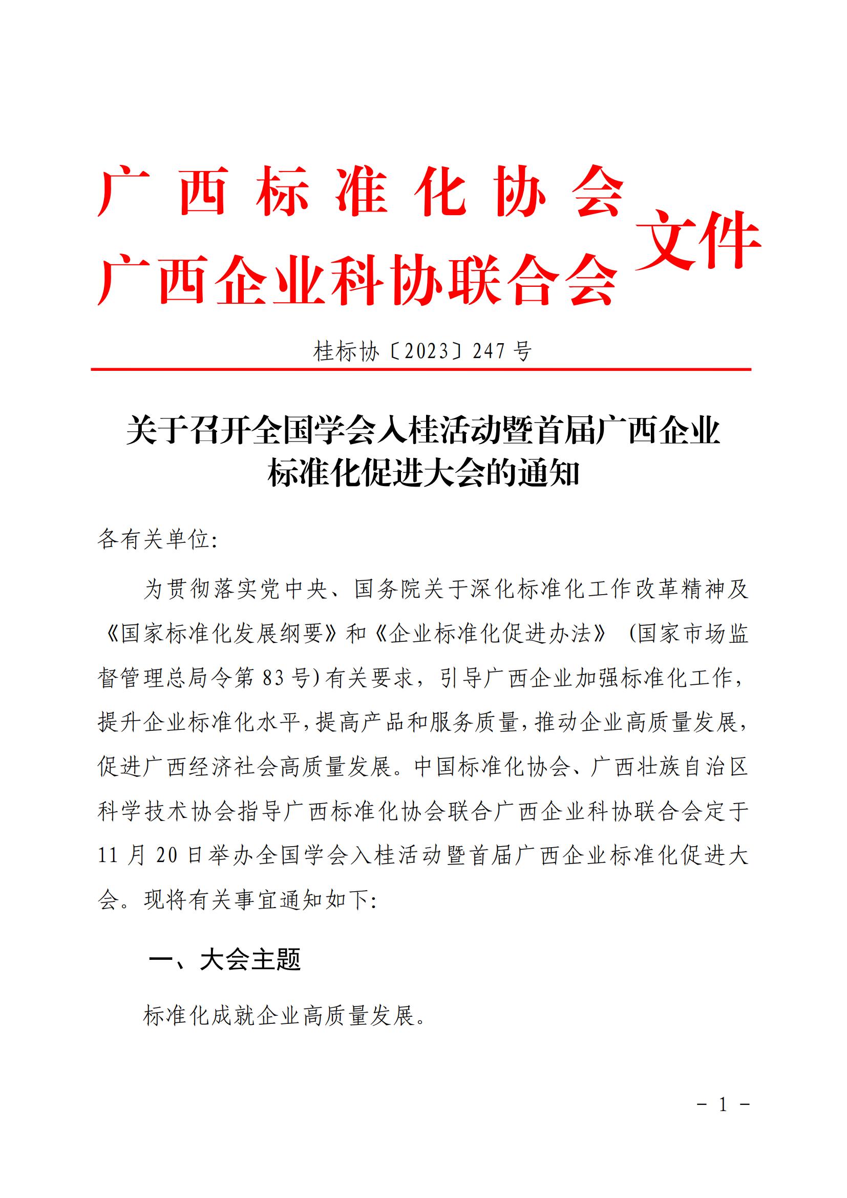 关于召开全国学会入桂活动暨首届广西企业标准化促进大会的通知