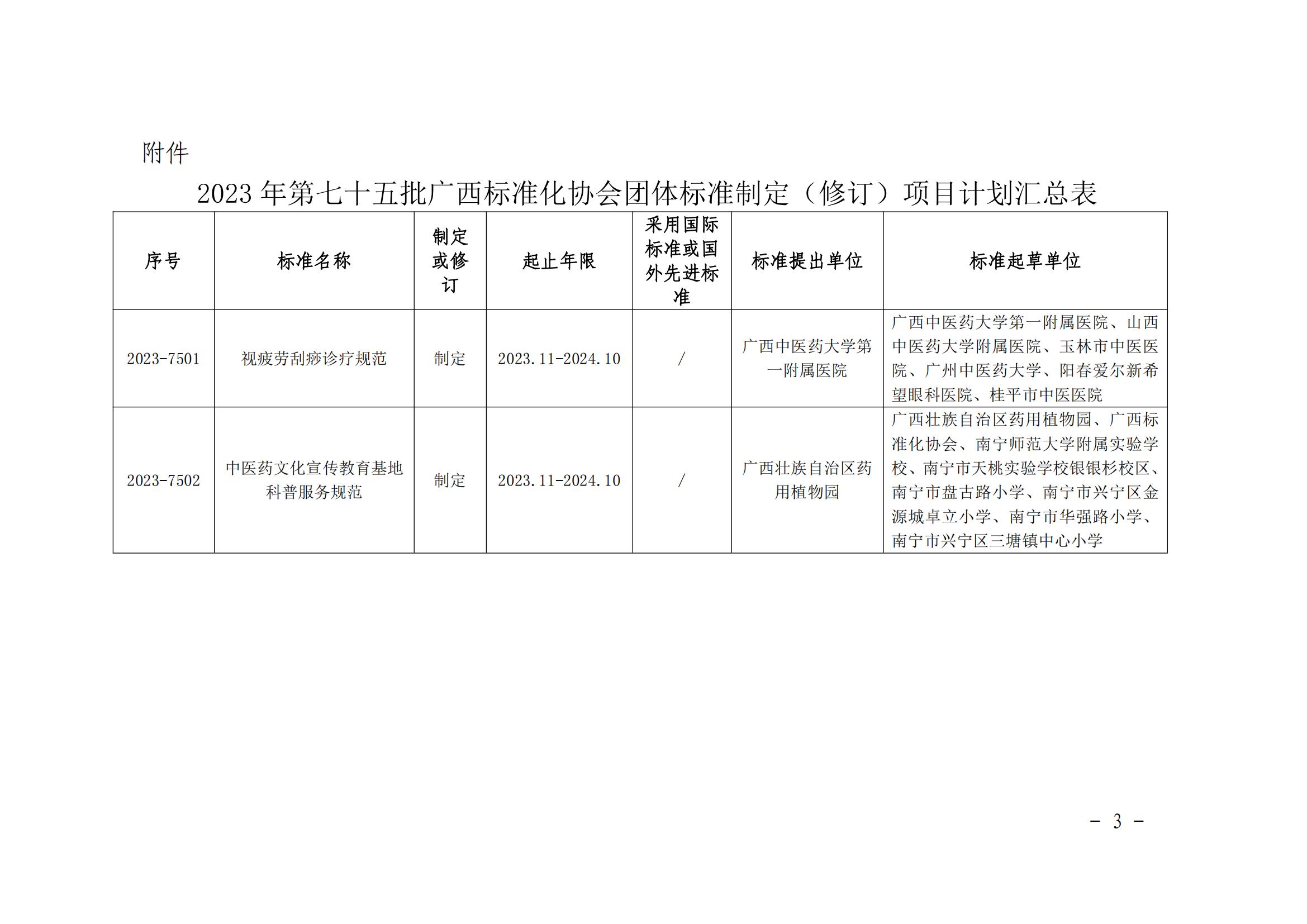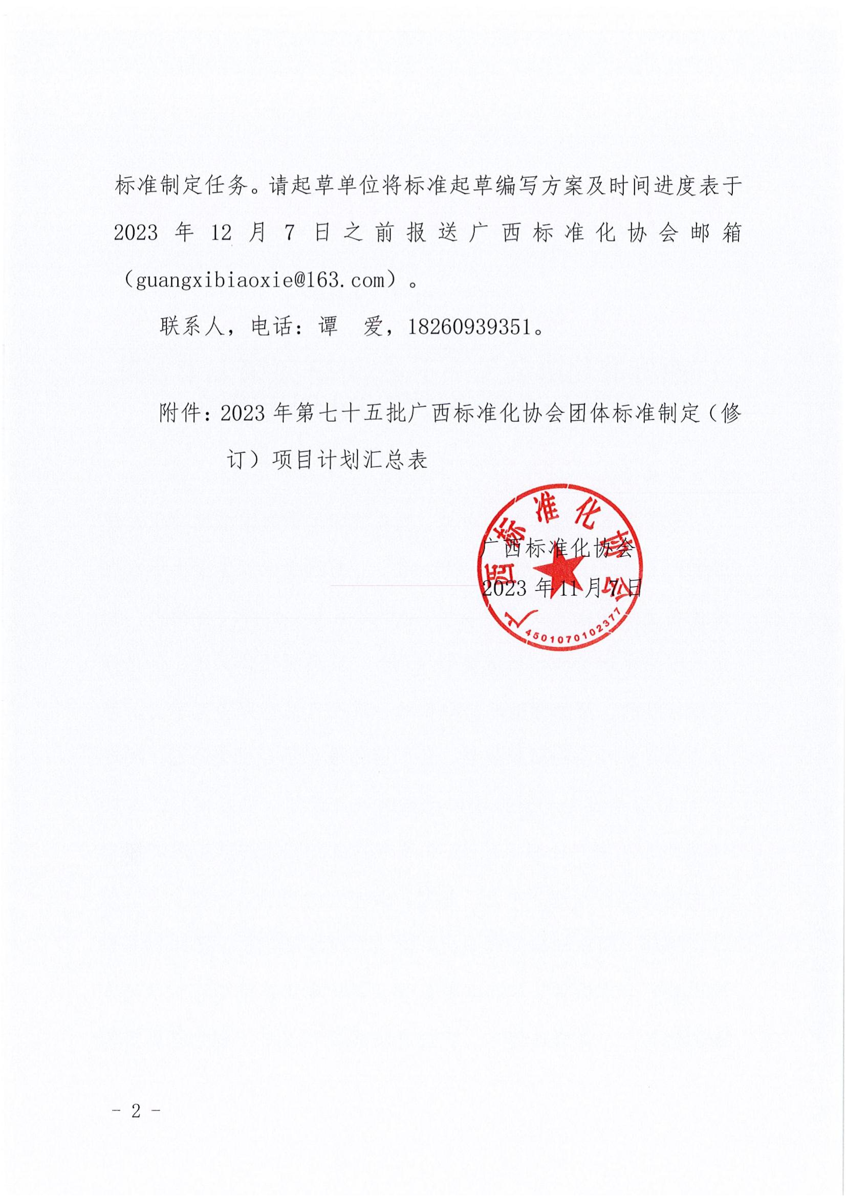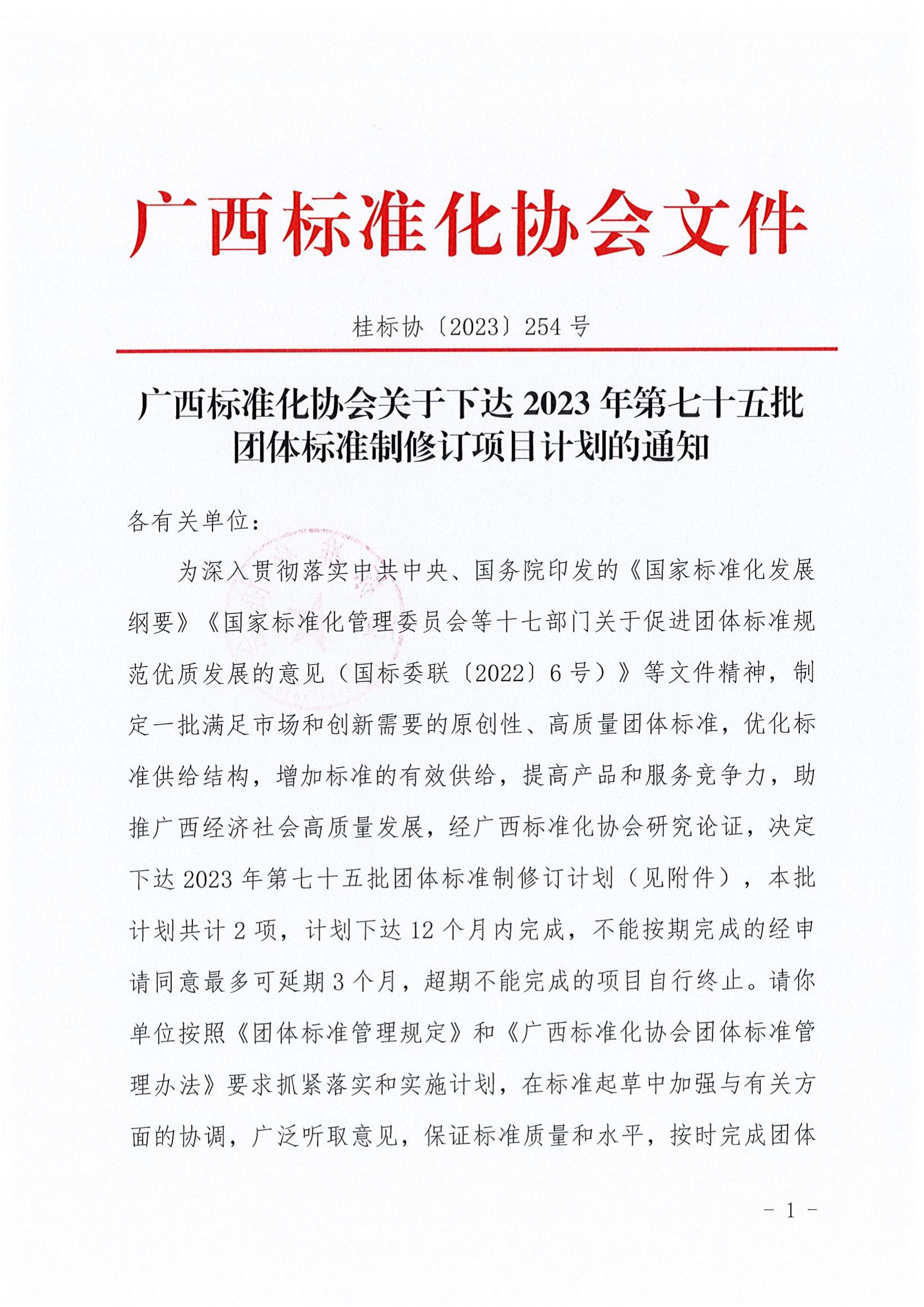广西标准化协会关于下达2023年第七十五批团体标准制修订项目计划的通知