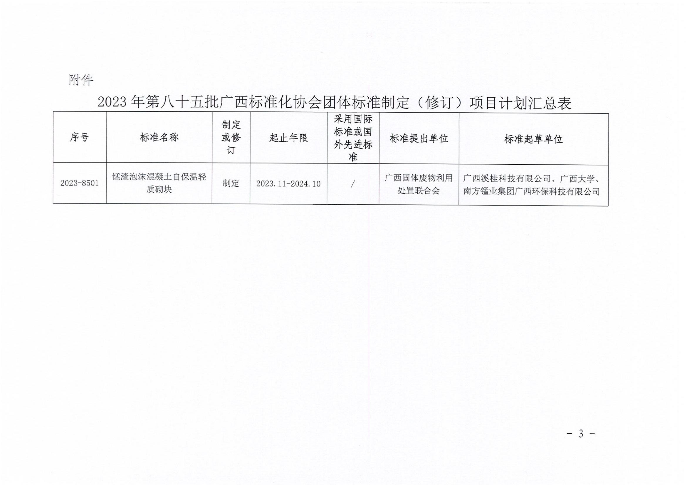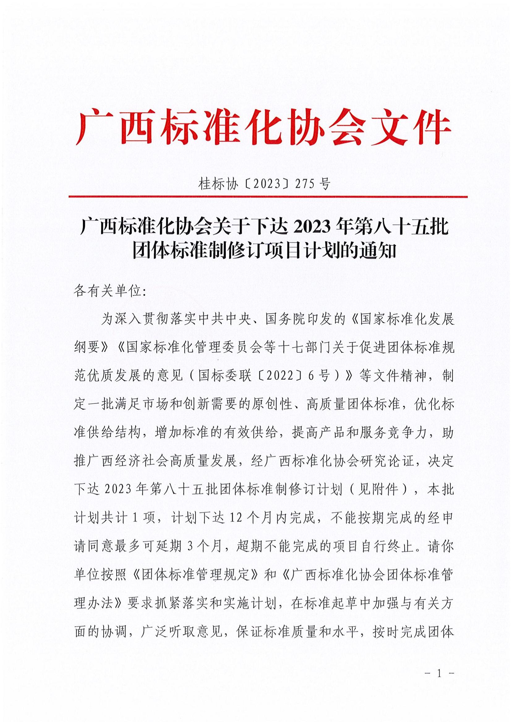 广西标准化协会关于下达2023年第八十五批团体标准制修订项目计划的通知
