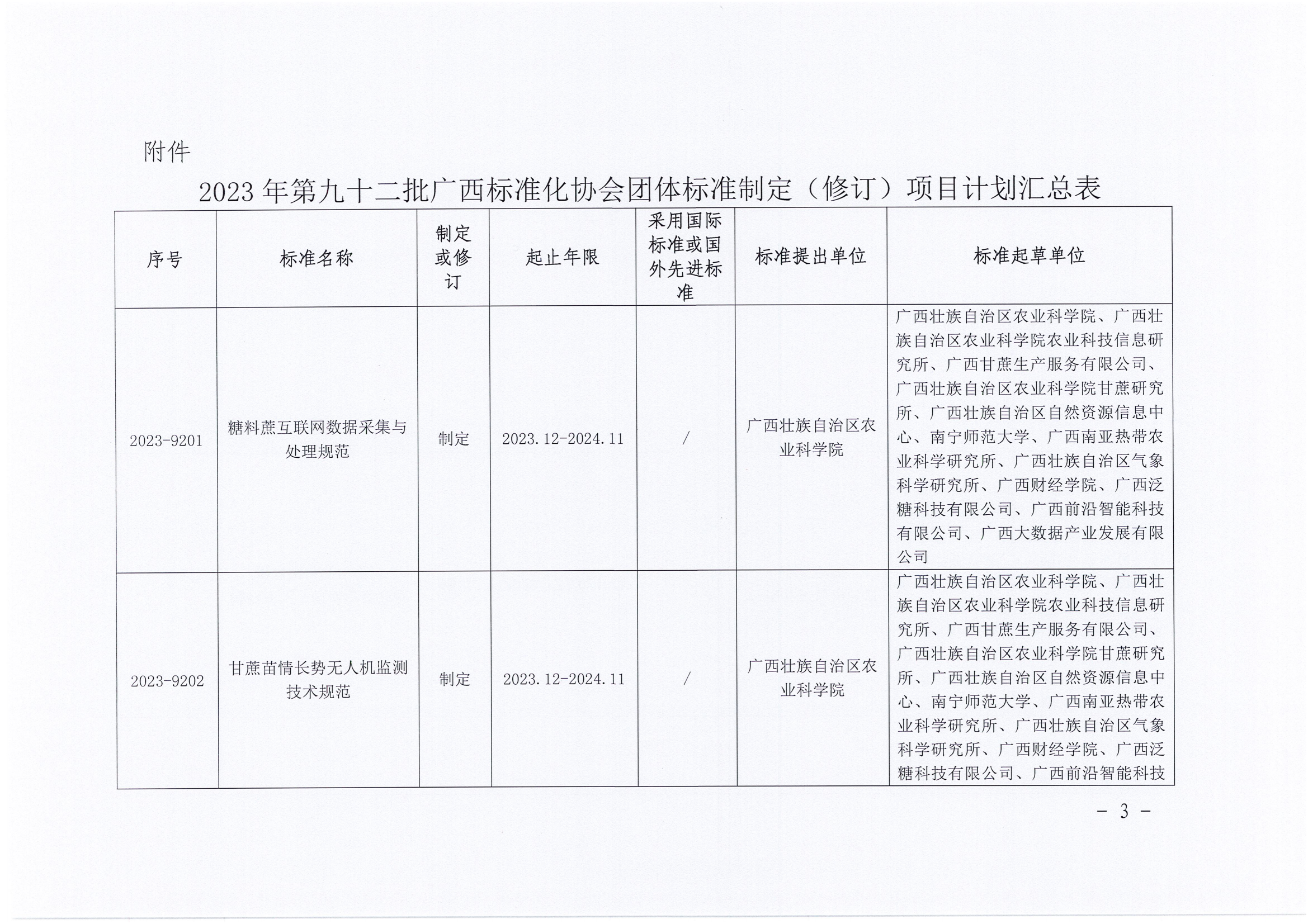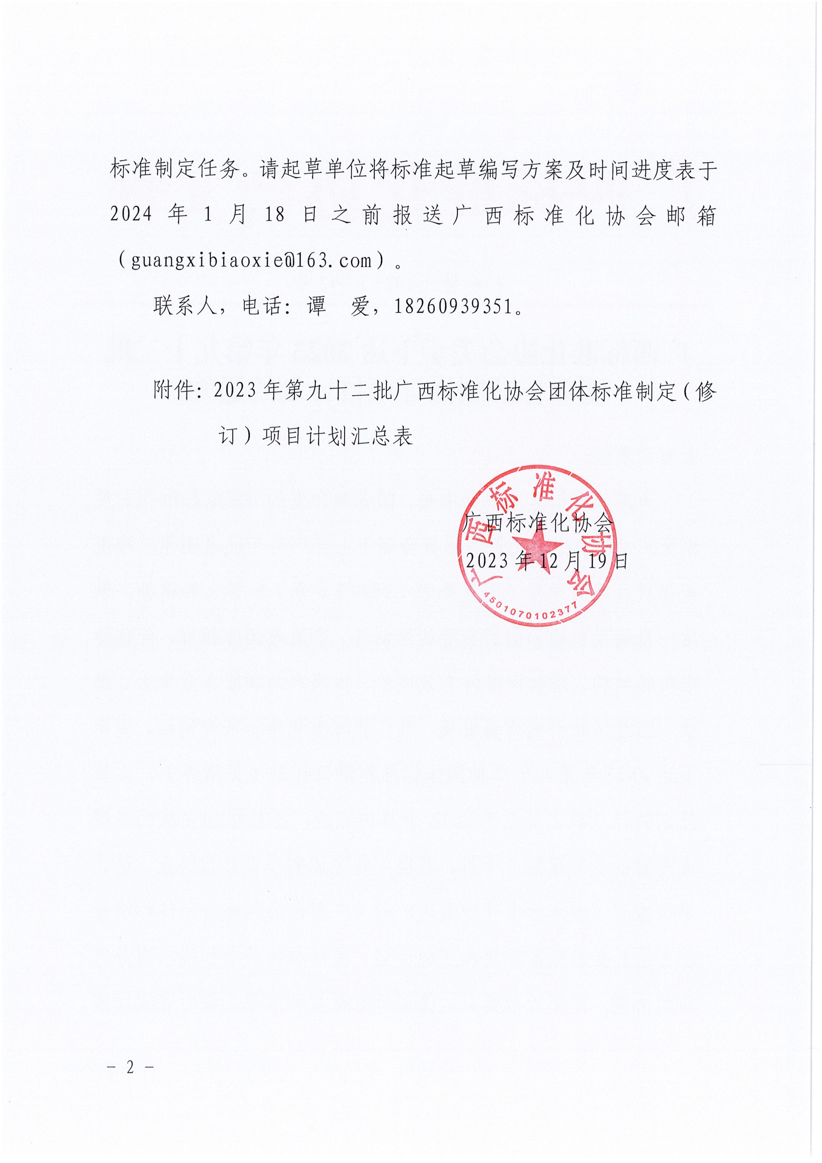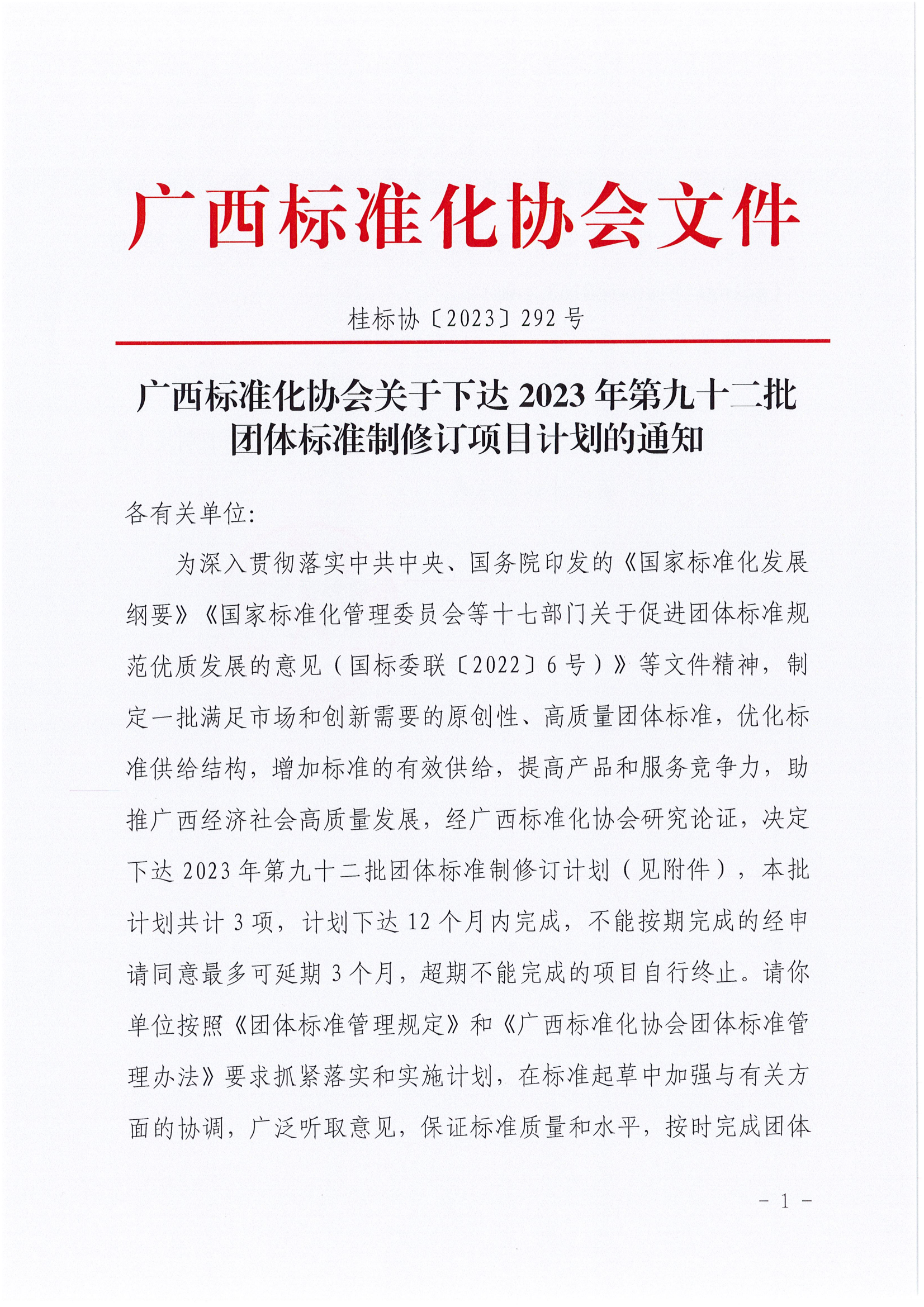 广西标准化协会关于下达2023年第九十二批团体标准制修订项目计划的通知