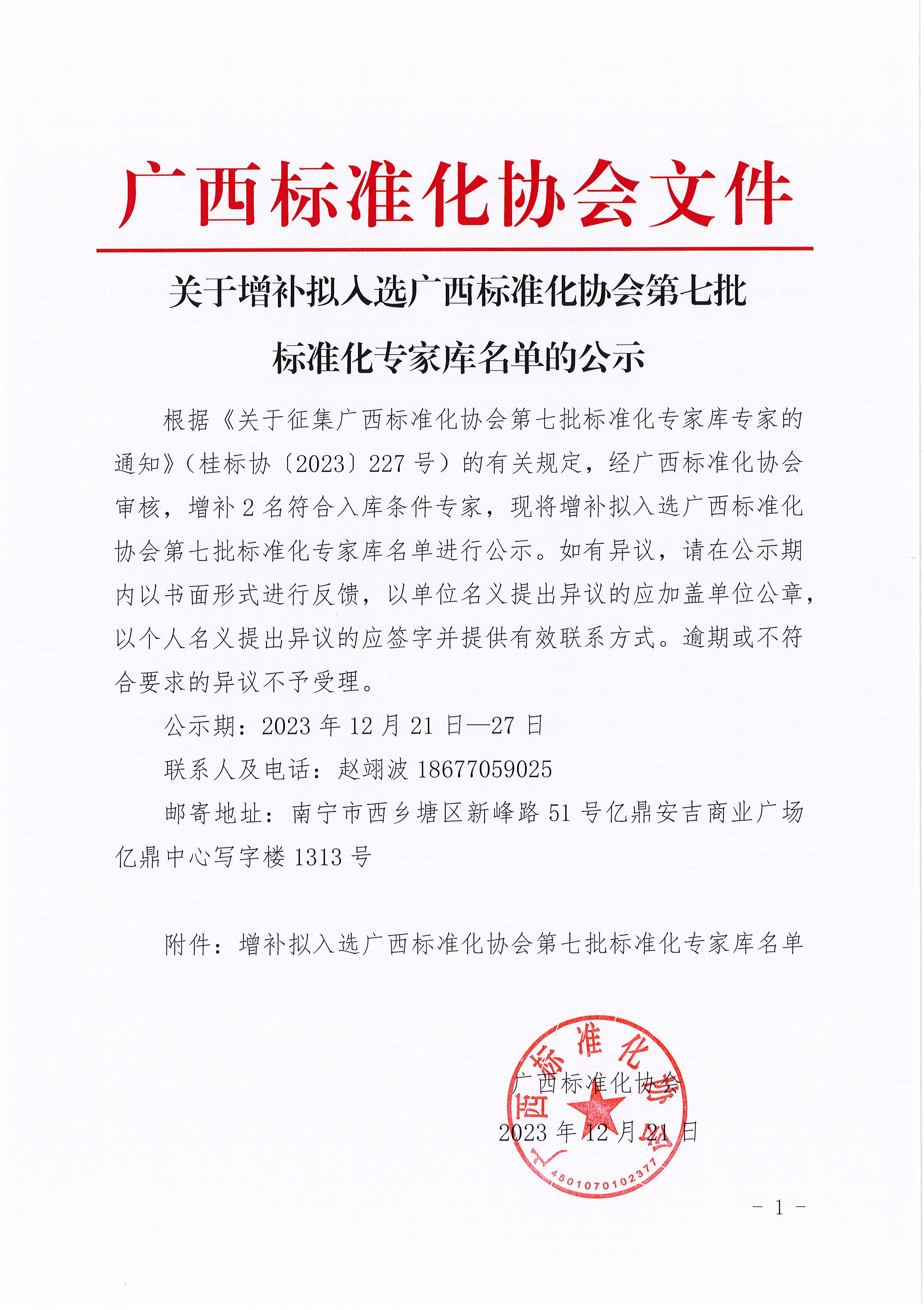 关于增补拟入选广西标准化协会第七批标准化专家库名单的公示