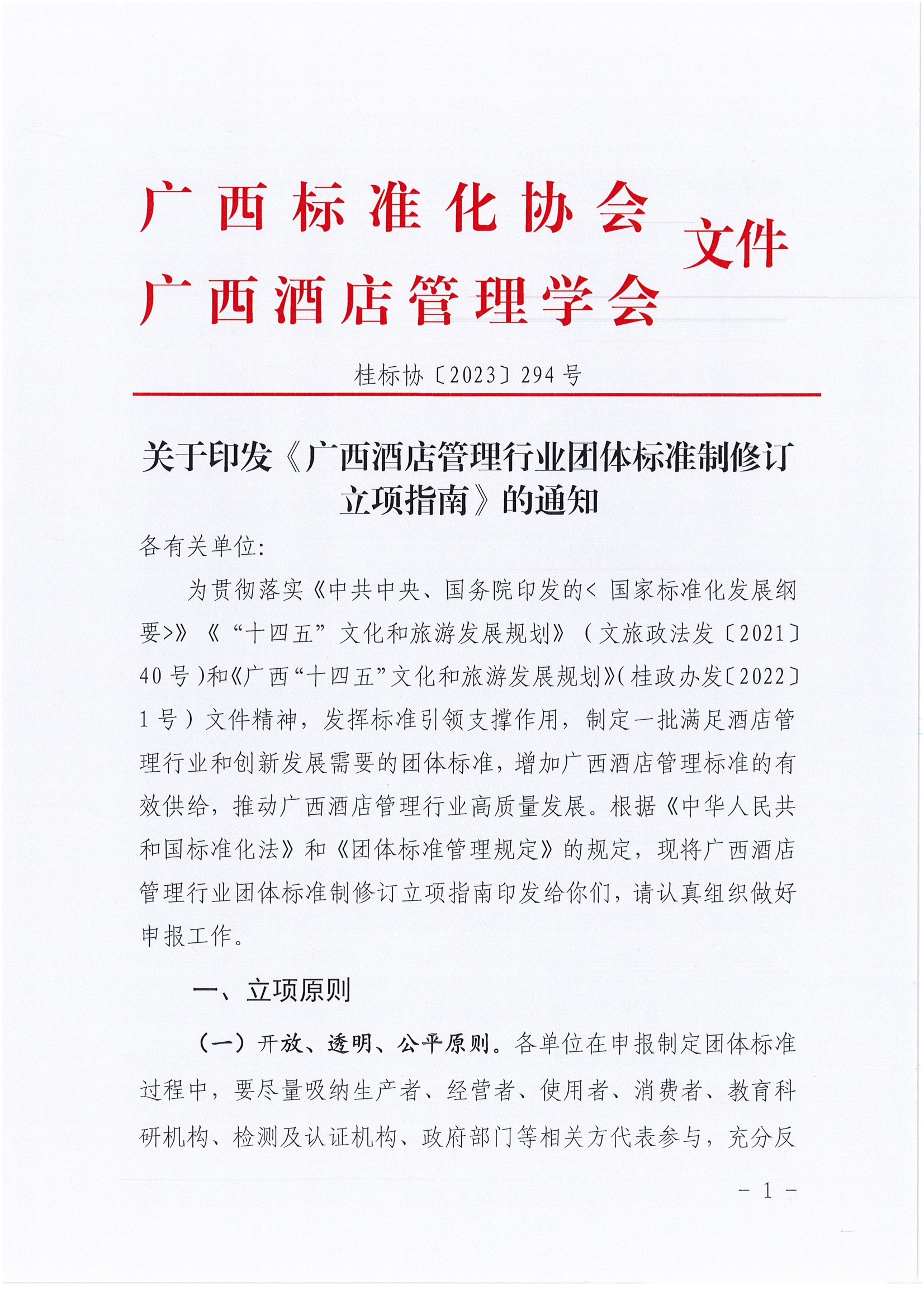 关于印发《广西酒店管理行业团体标准制修订立项指南》的通知