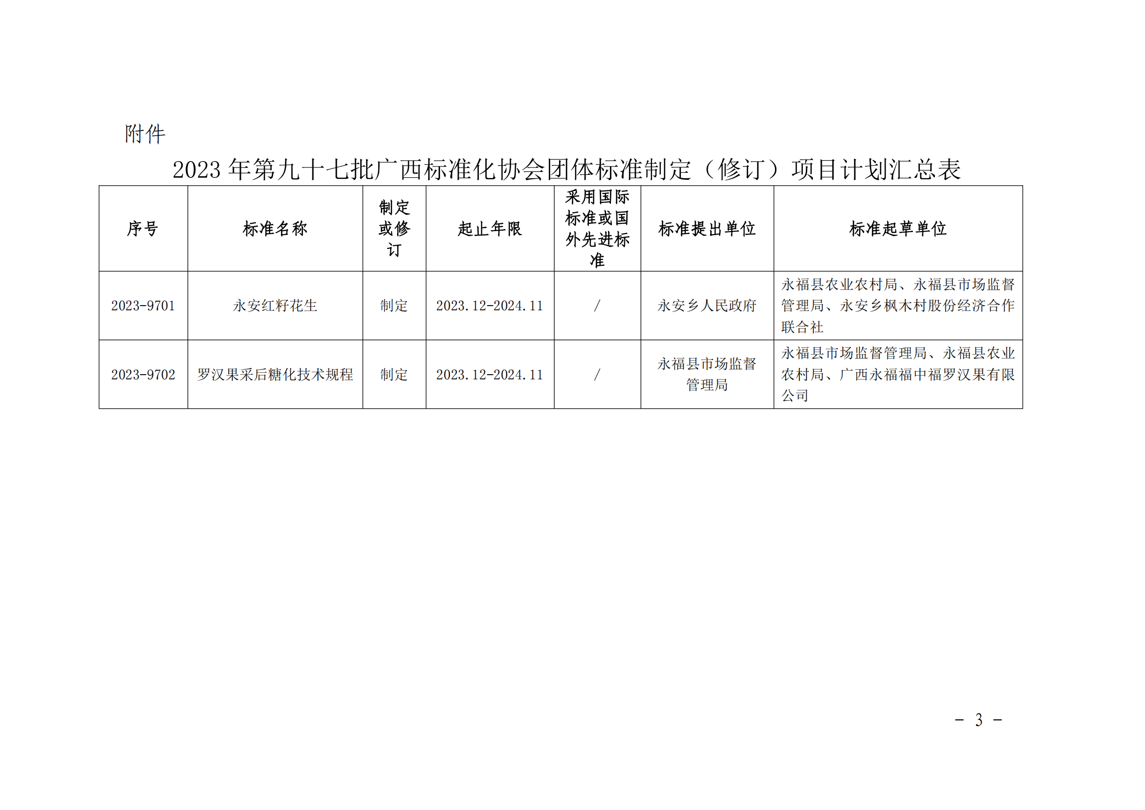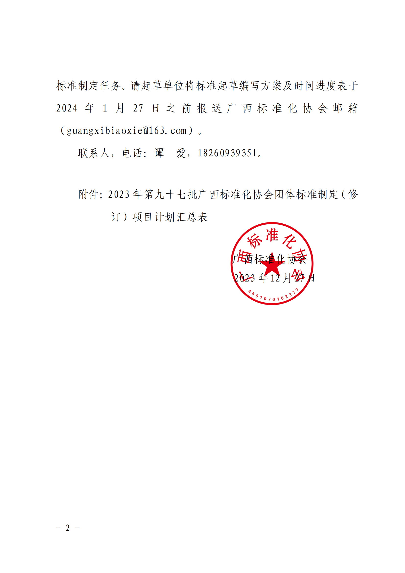 广西标准化协会关于下达2023年第九十七批团体标准制修订项目计划的通知