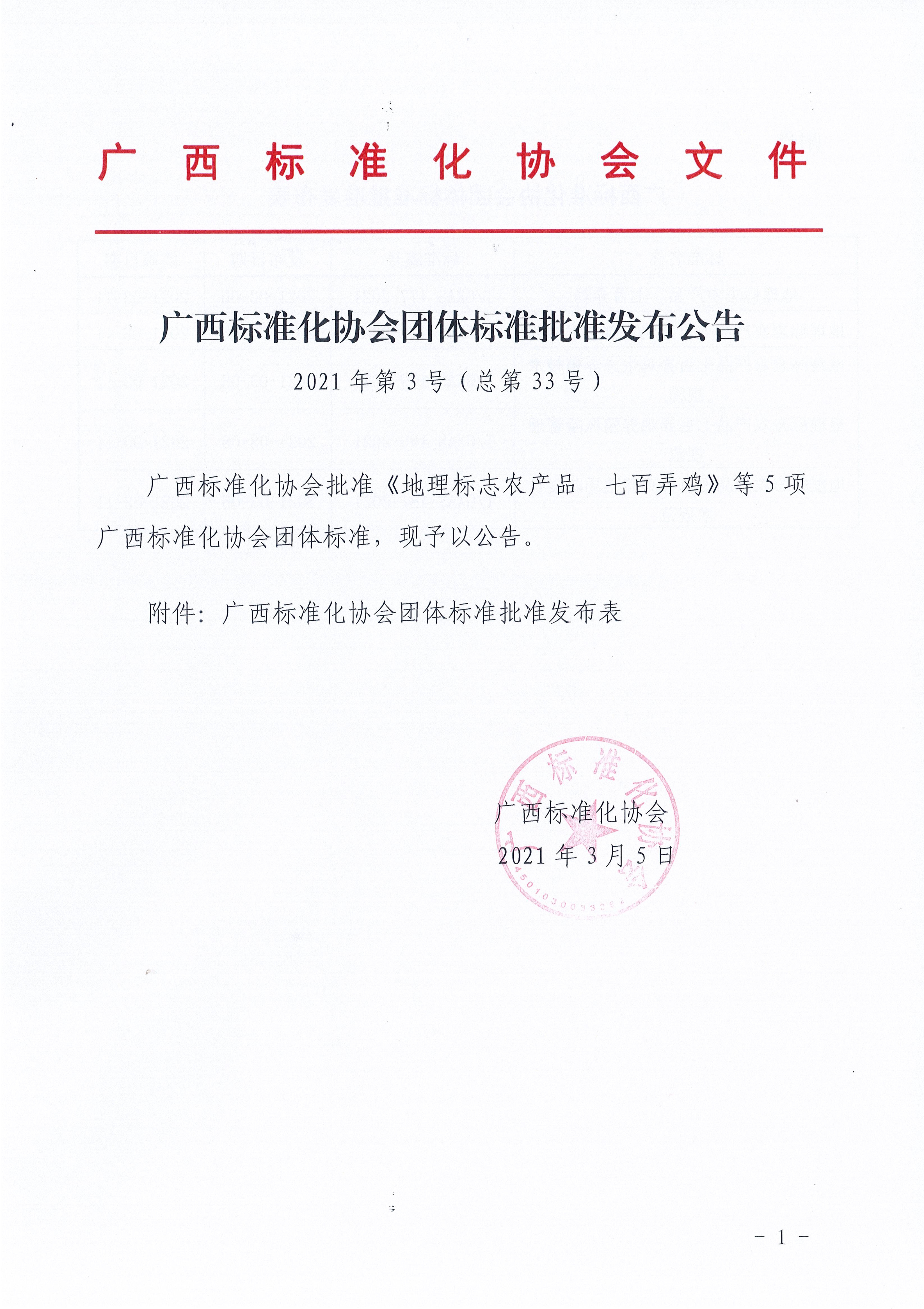 广西标准化协会团体标准批准发布公告《2021年第3号(总第33号)》