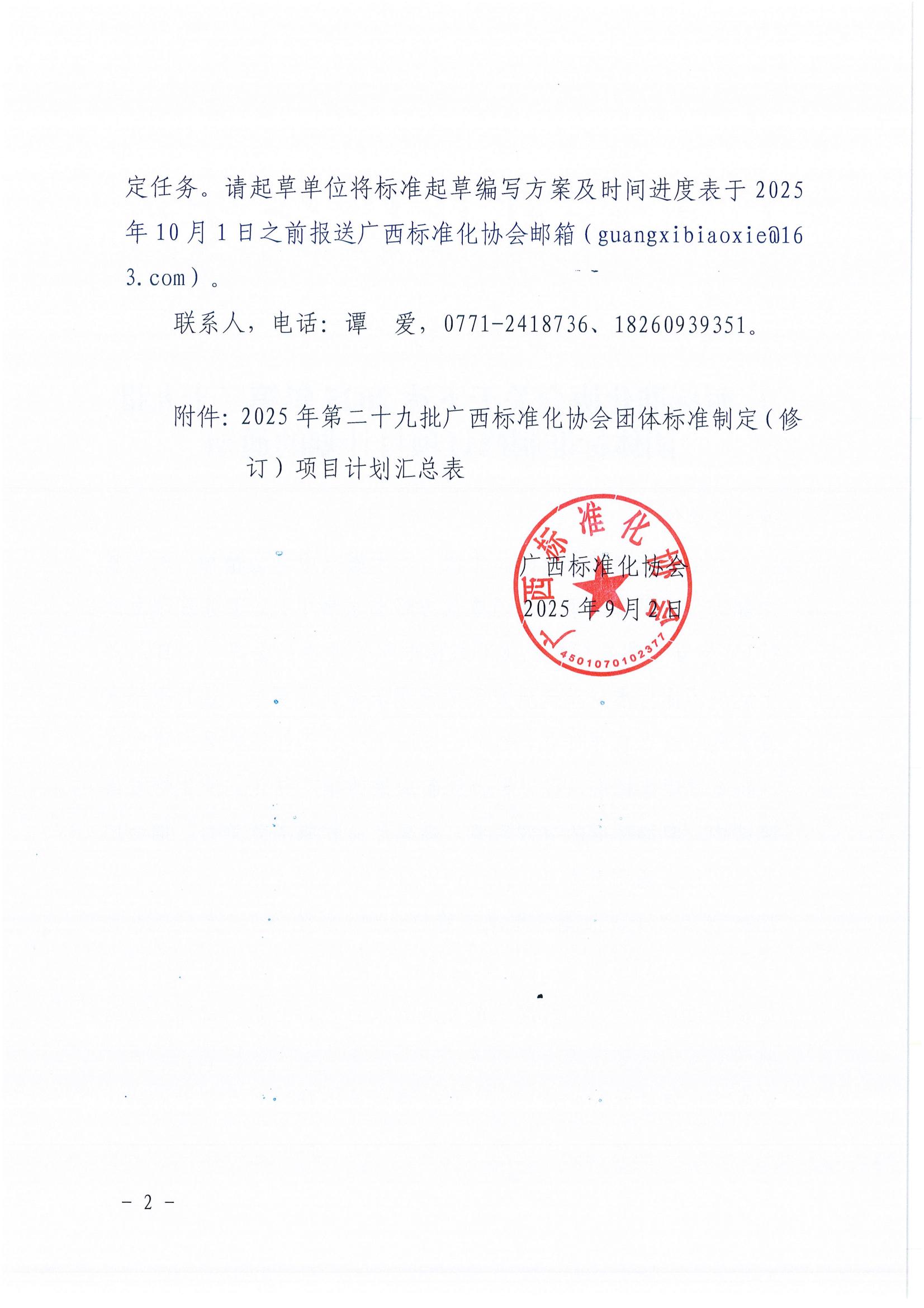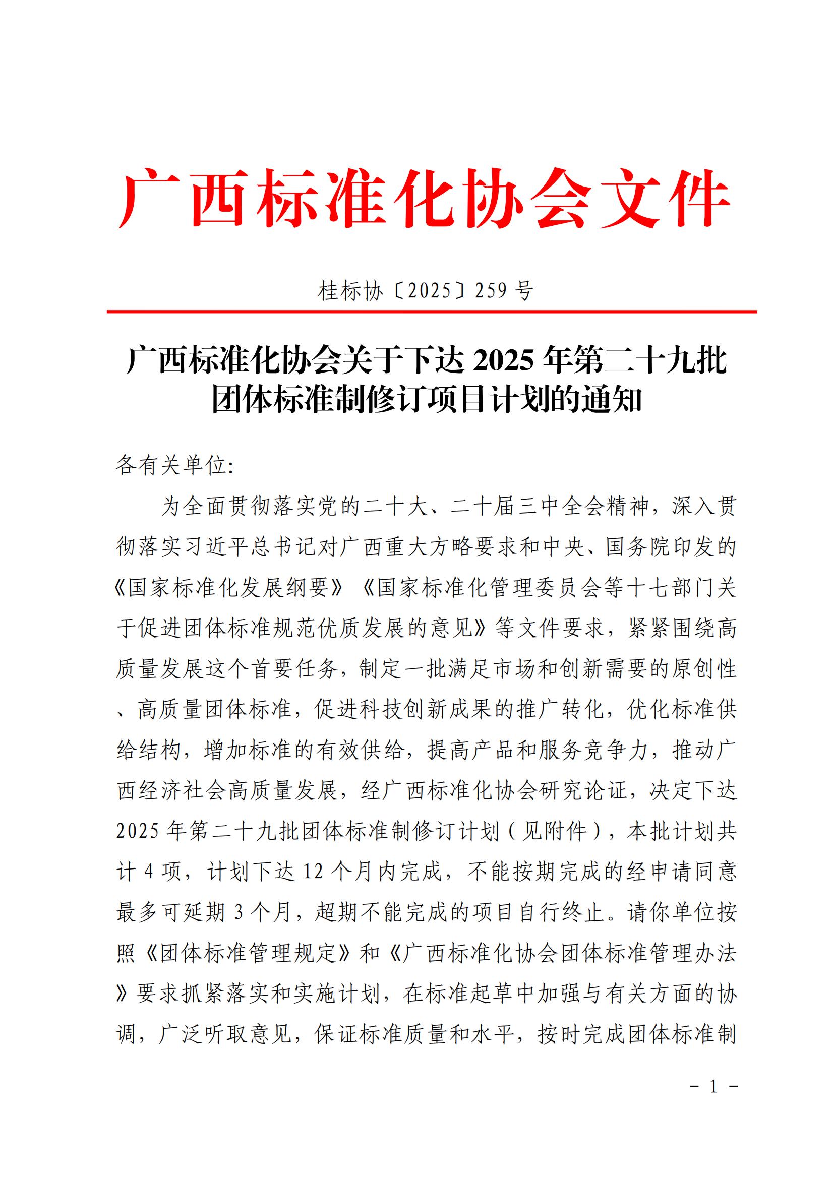 广西标准化协会关于下达2025年第二十九批团体标准制修订项目计划的通知