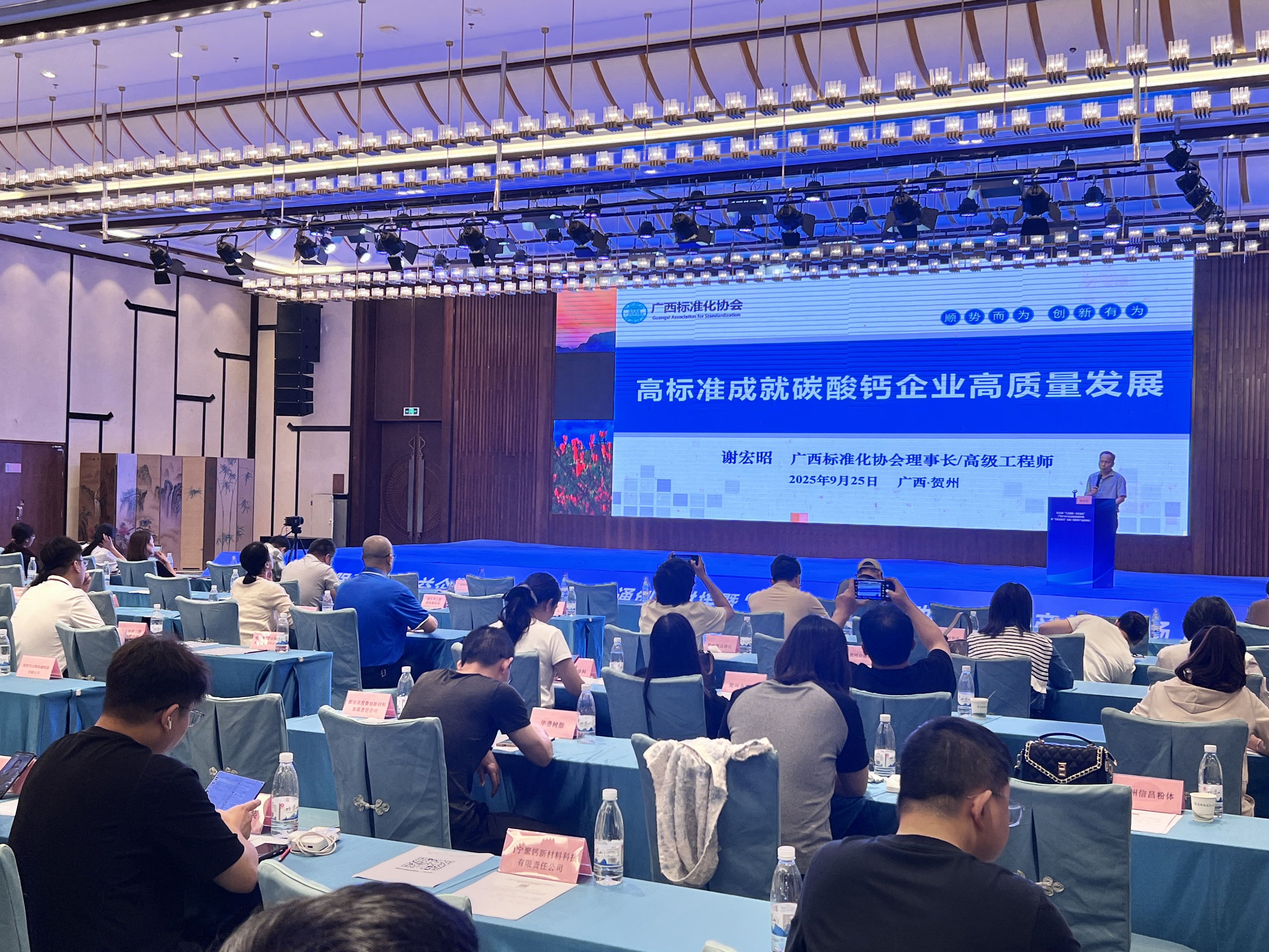 2025年9月25日,广西标准化协会理事长谢宏昭高级工程师为100余名企业代表作《高标准成就碳酸钙企业高质量发展》科普讲座。
