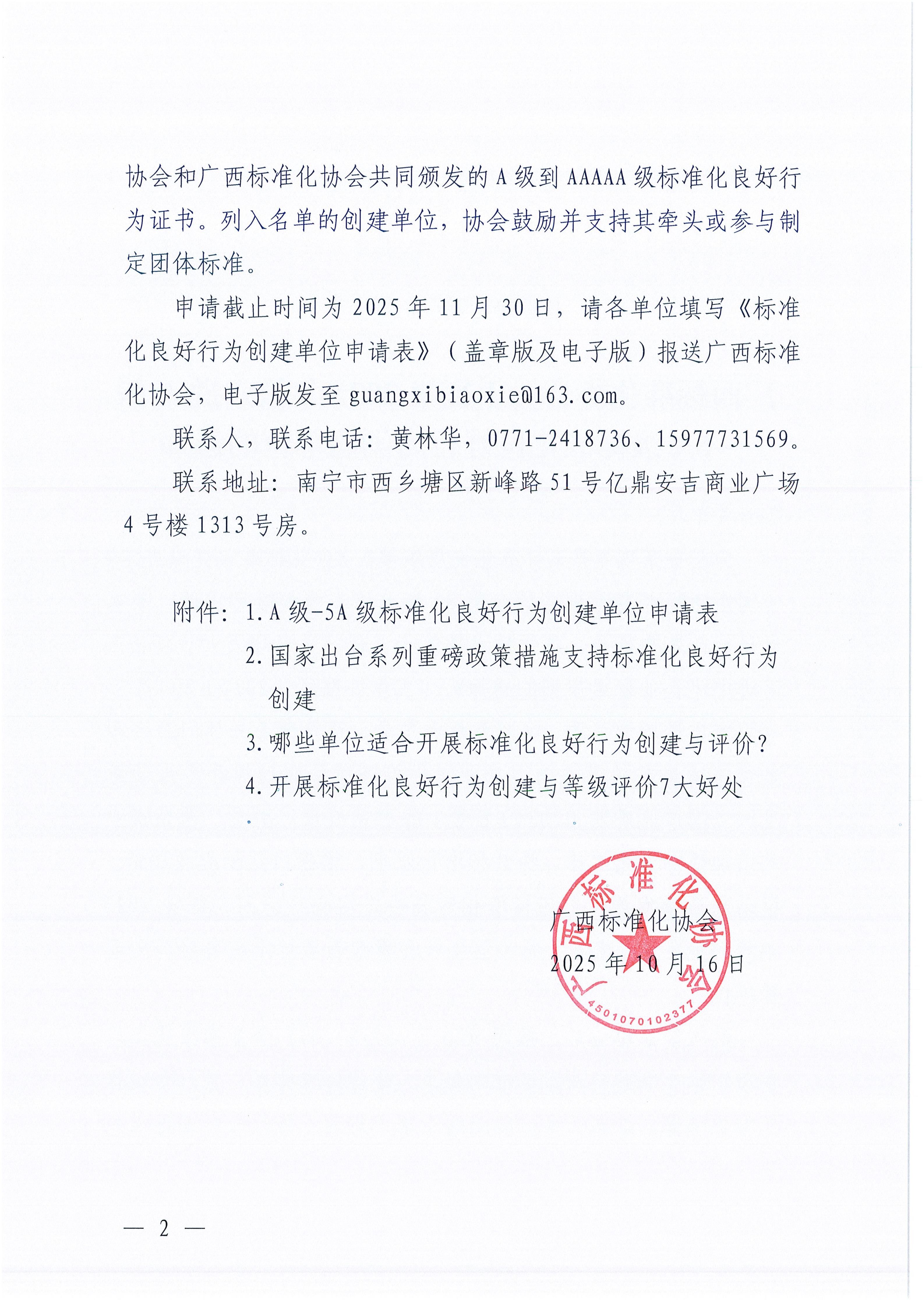 广西标准化协会关于征集2025年第六批A级-5A级标准化良好行为创建单位的通知