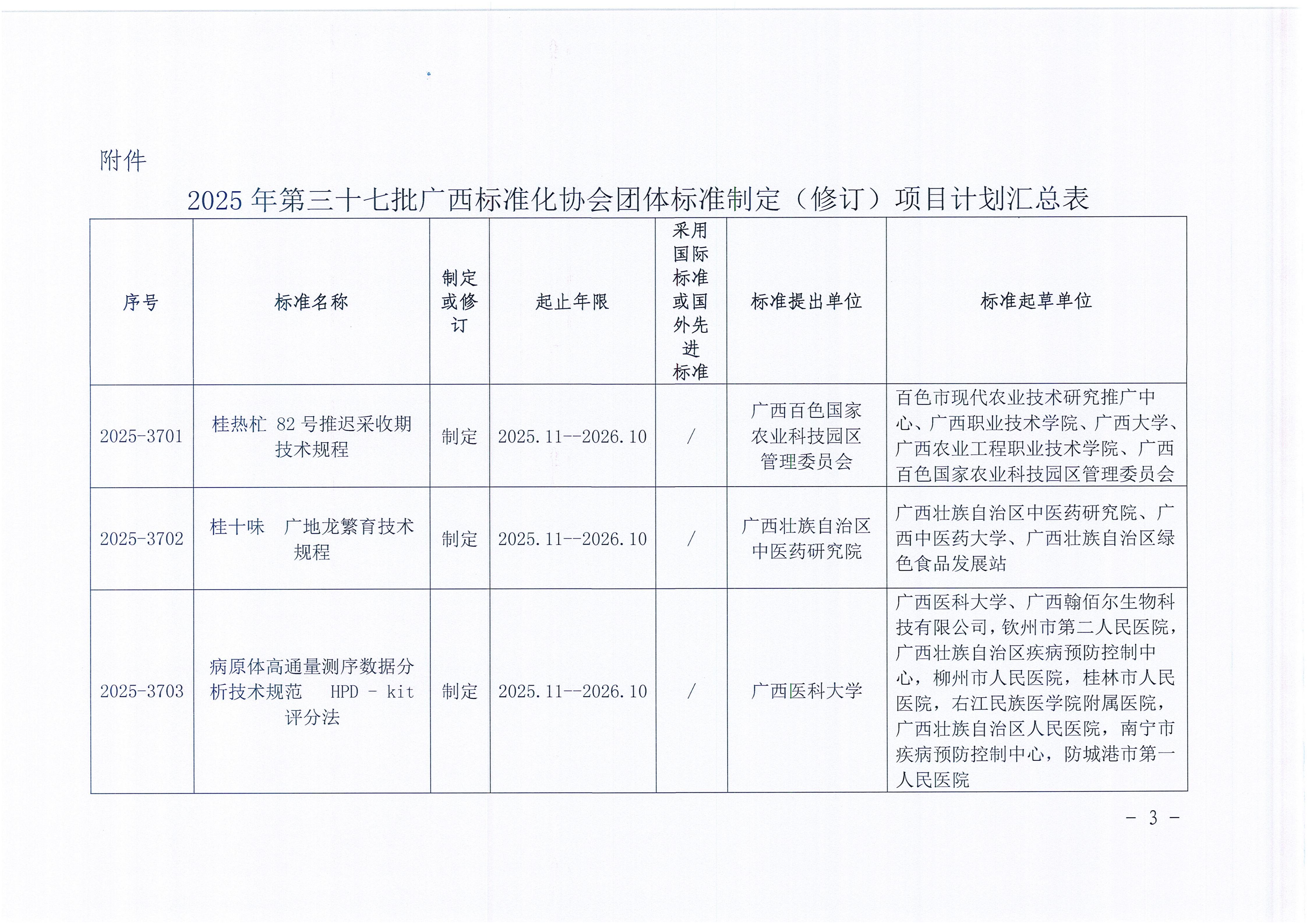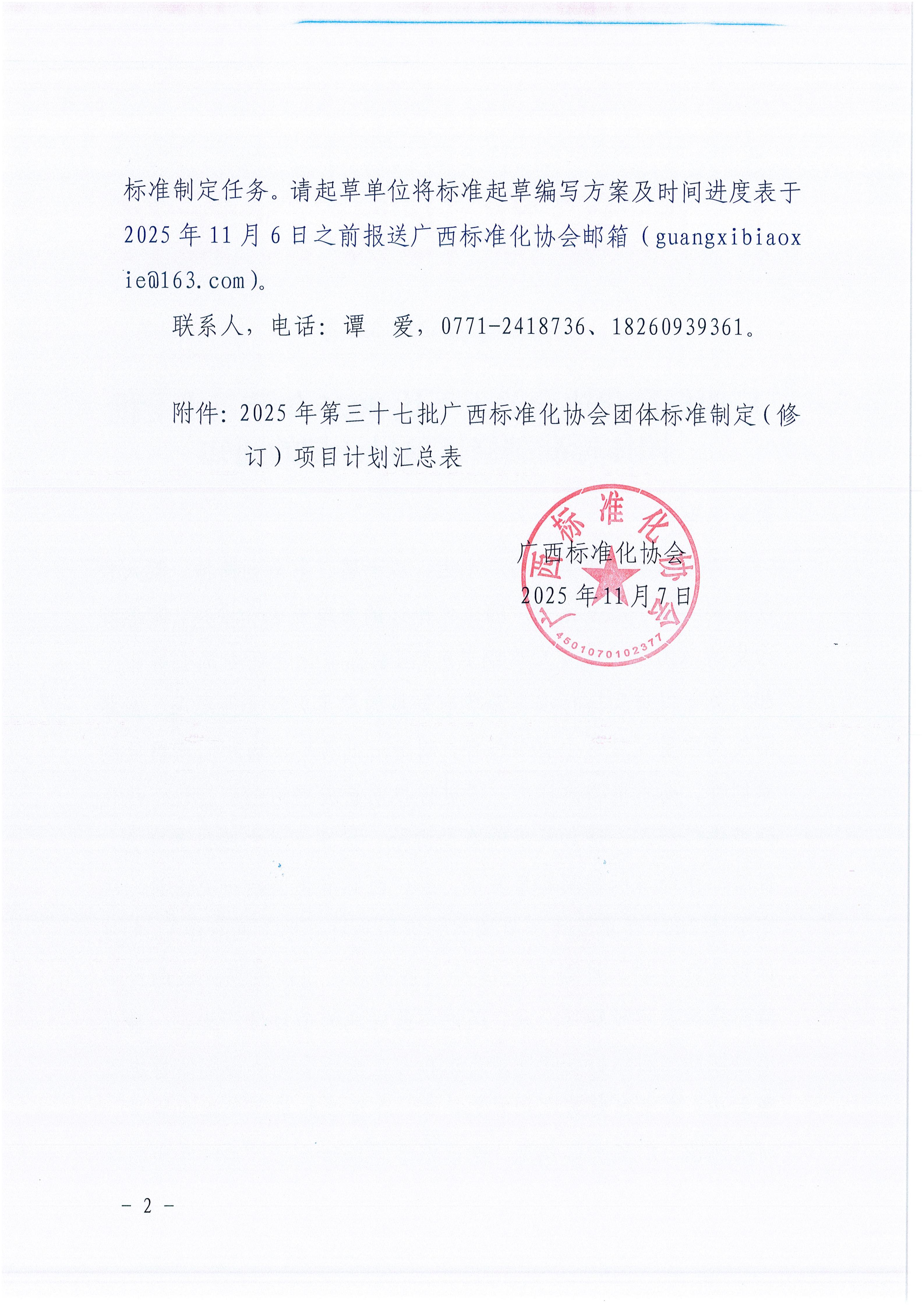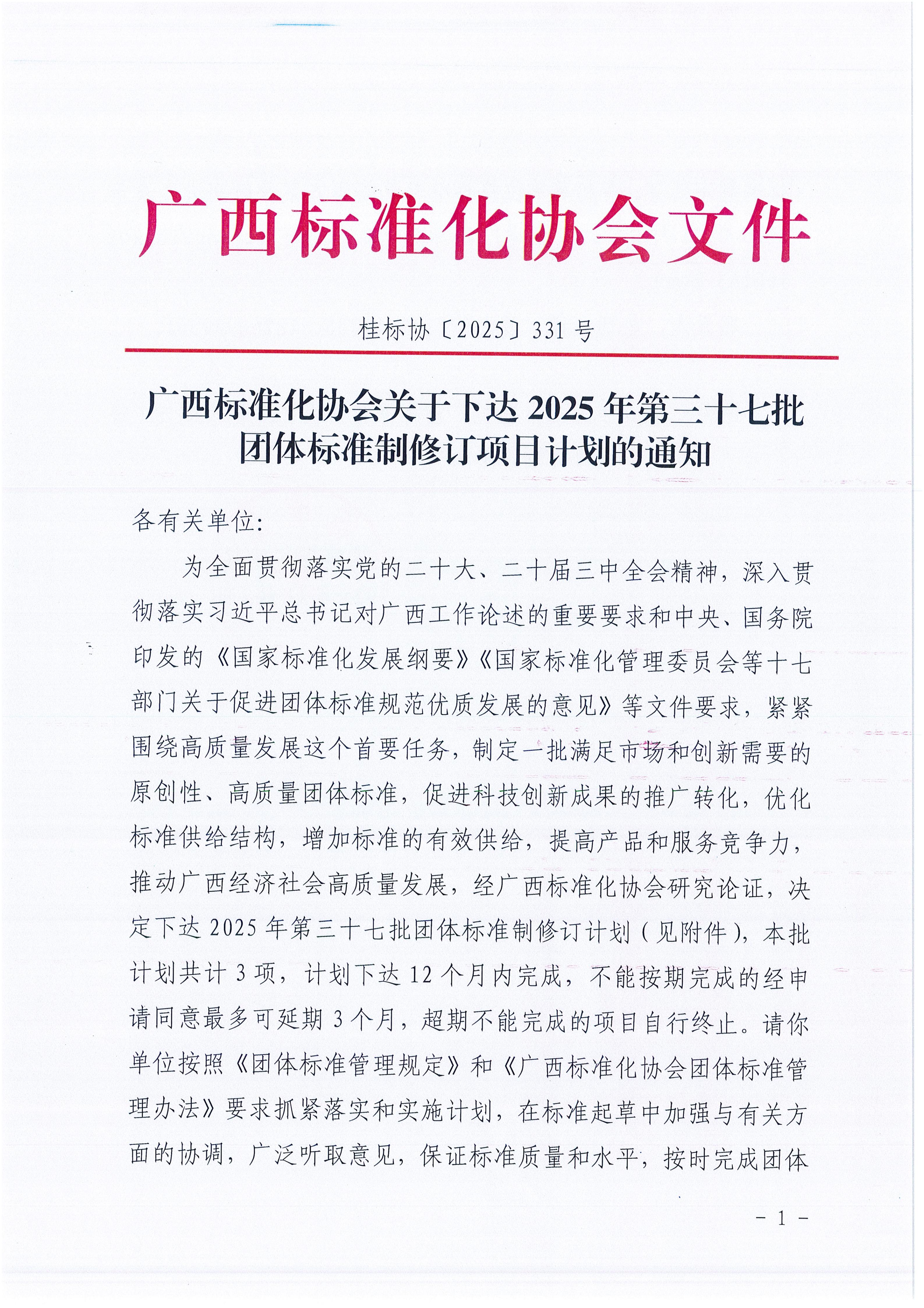 广西标准化协会关于下达2025年第三十七批团体标准制修订项目计划的通知