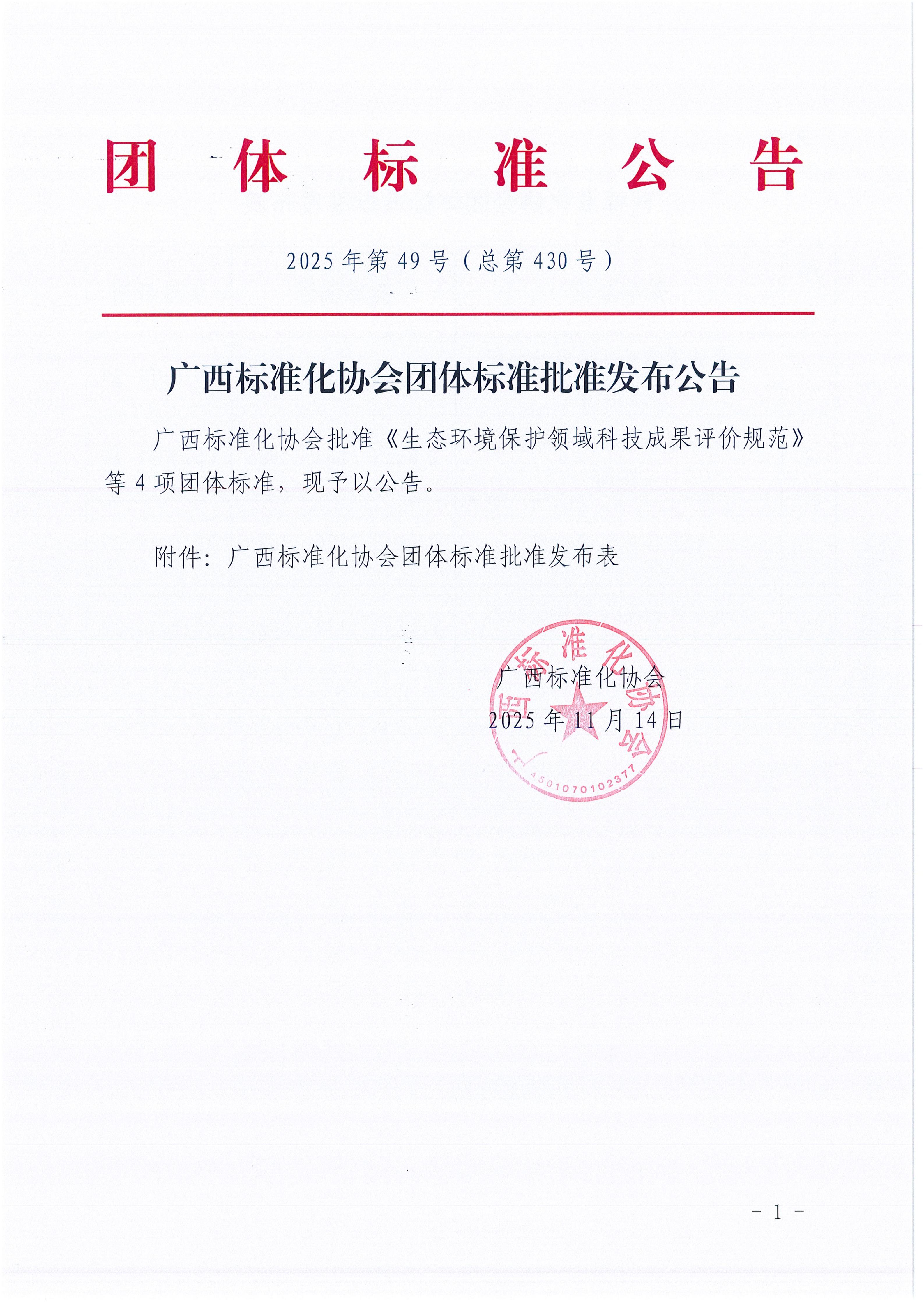 广西标准化协会团体标准批准发布公告《2025年第49号(总第430号)》