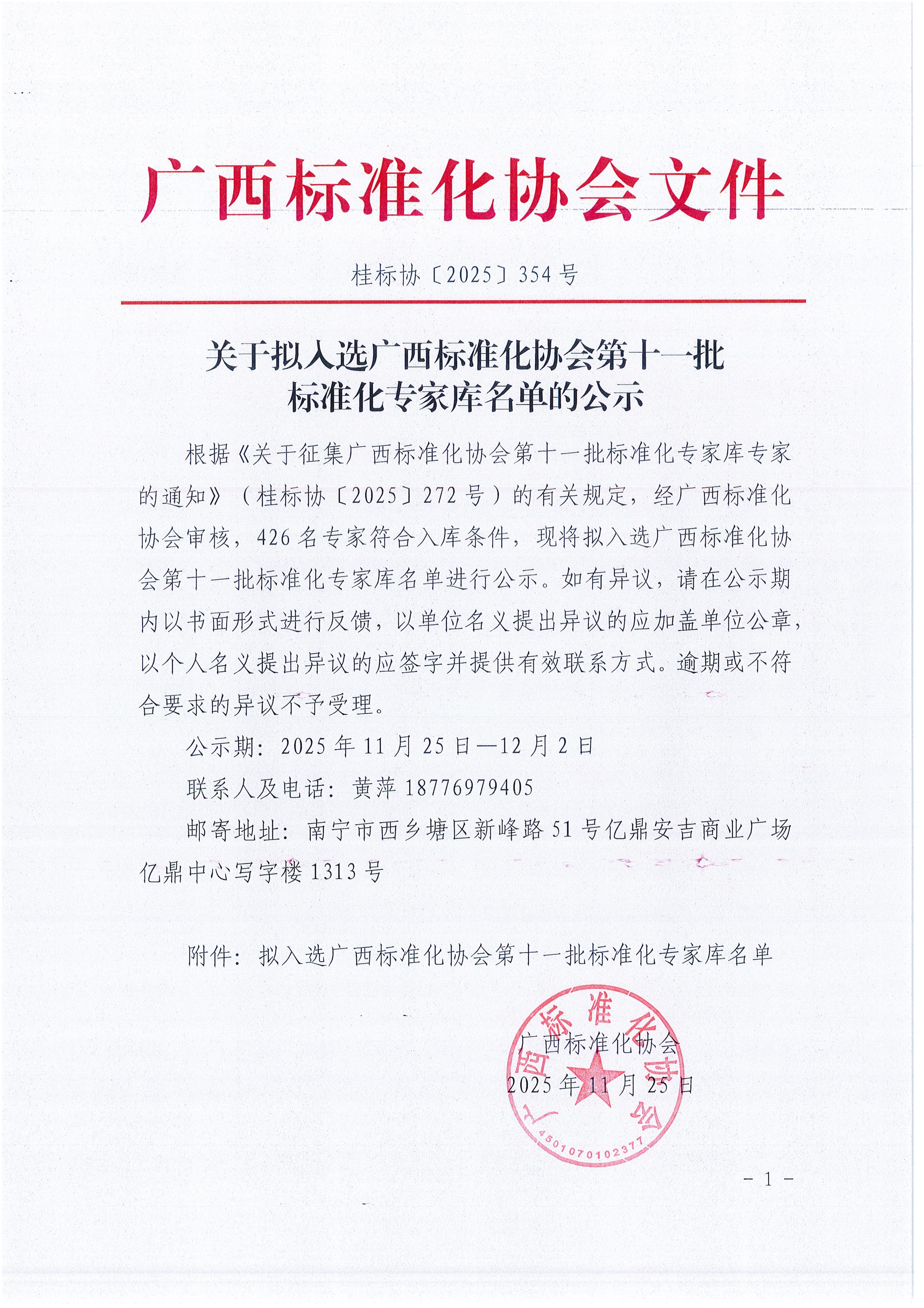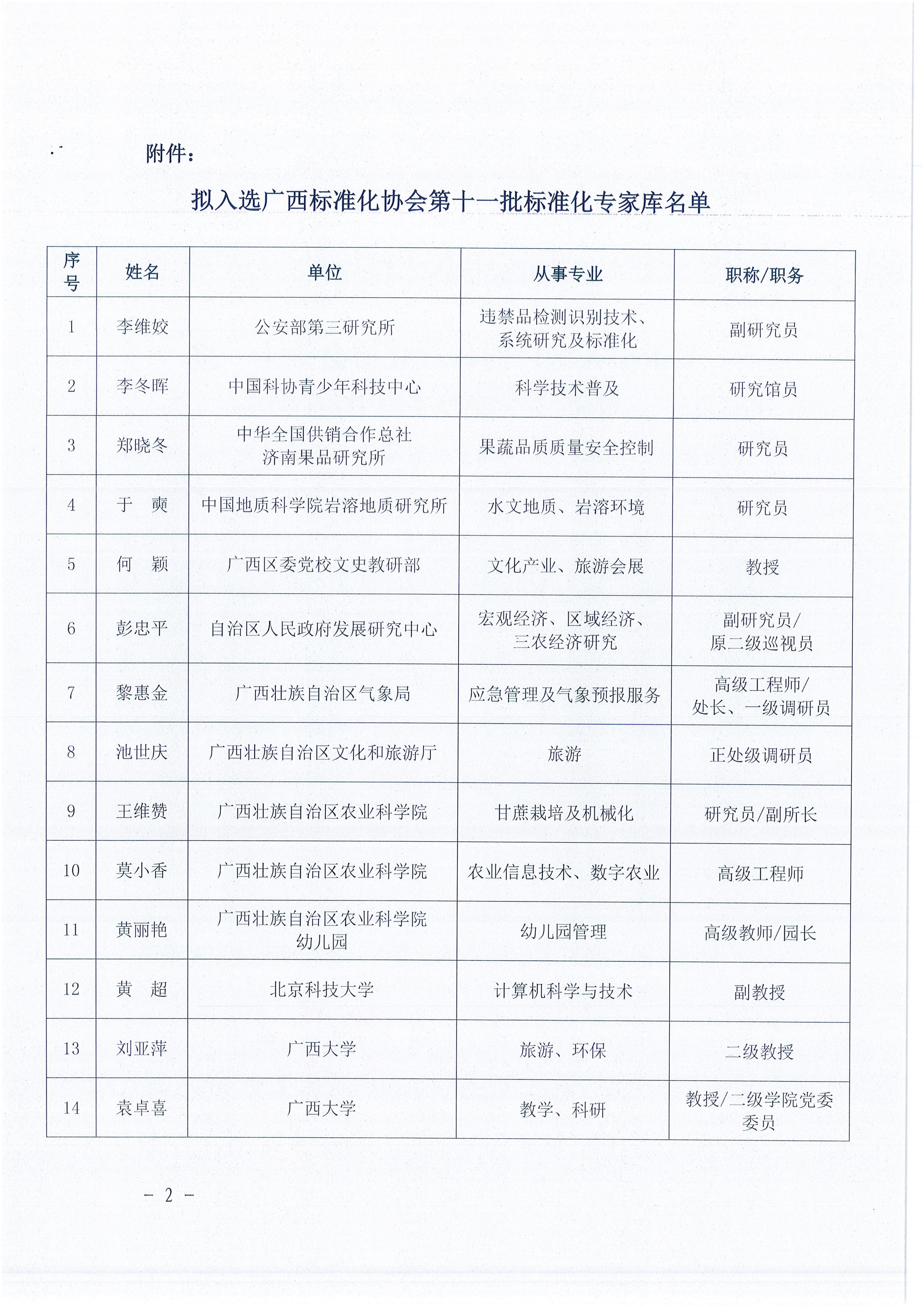 关于拟入选广西标准化协会第十一批标准化专家库名单的公示